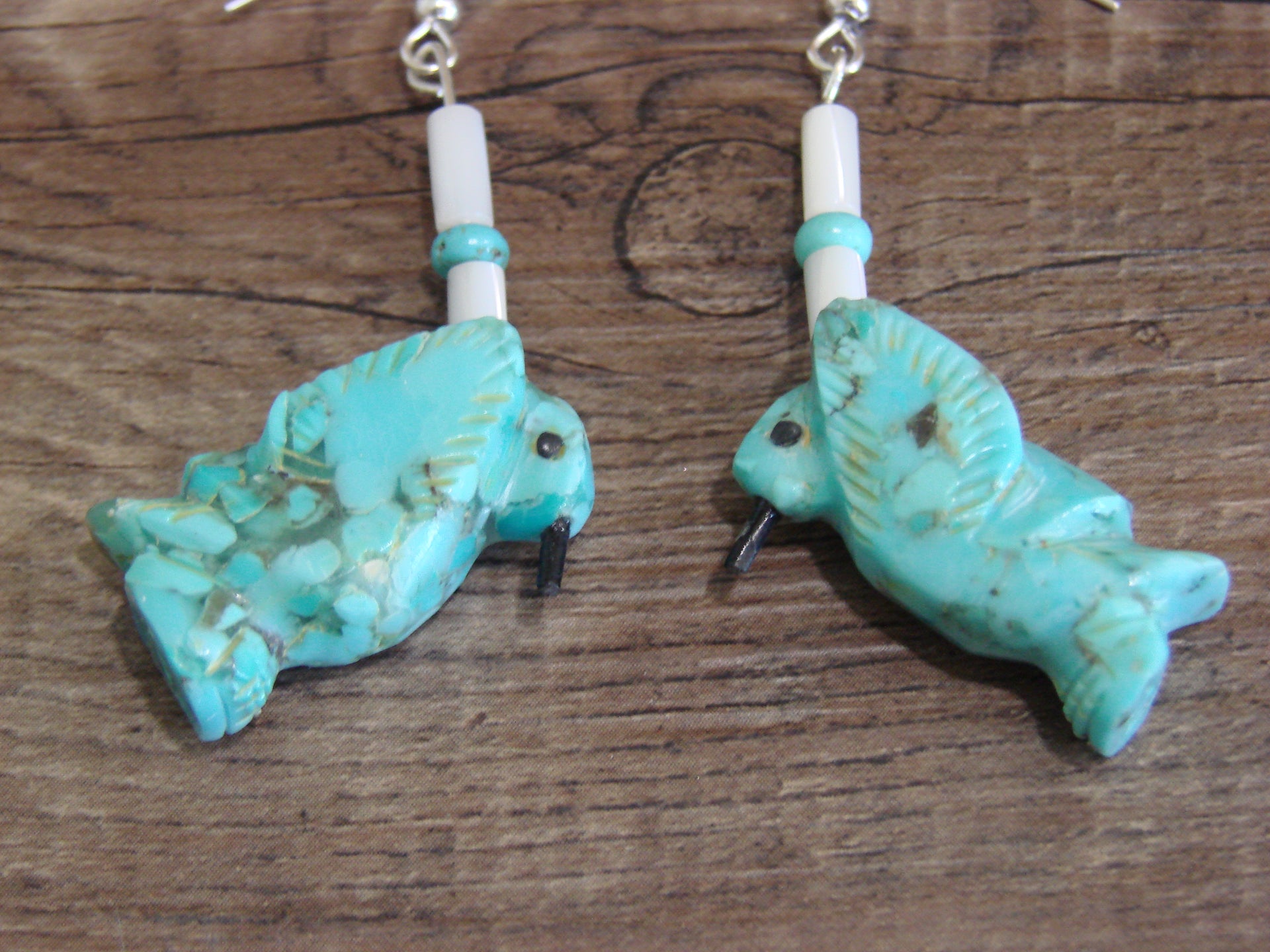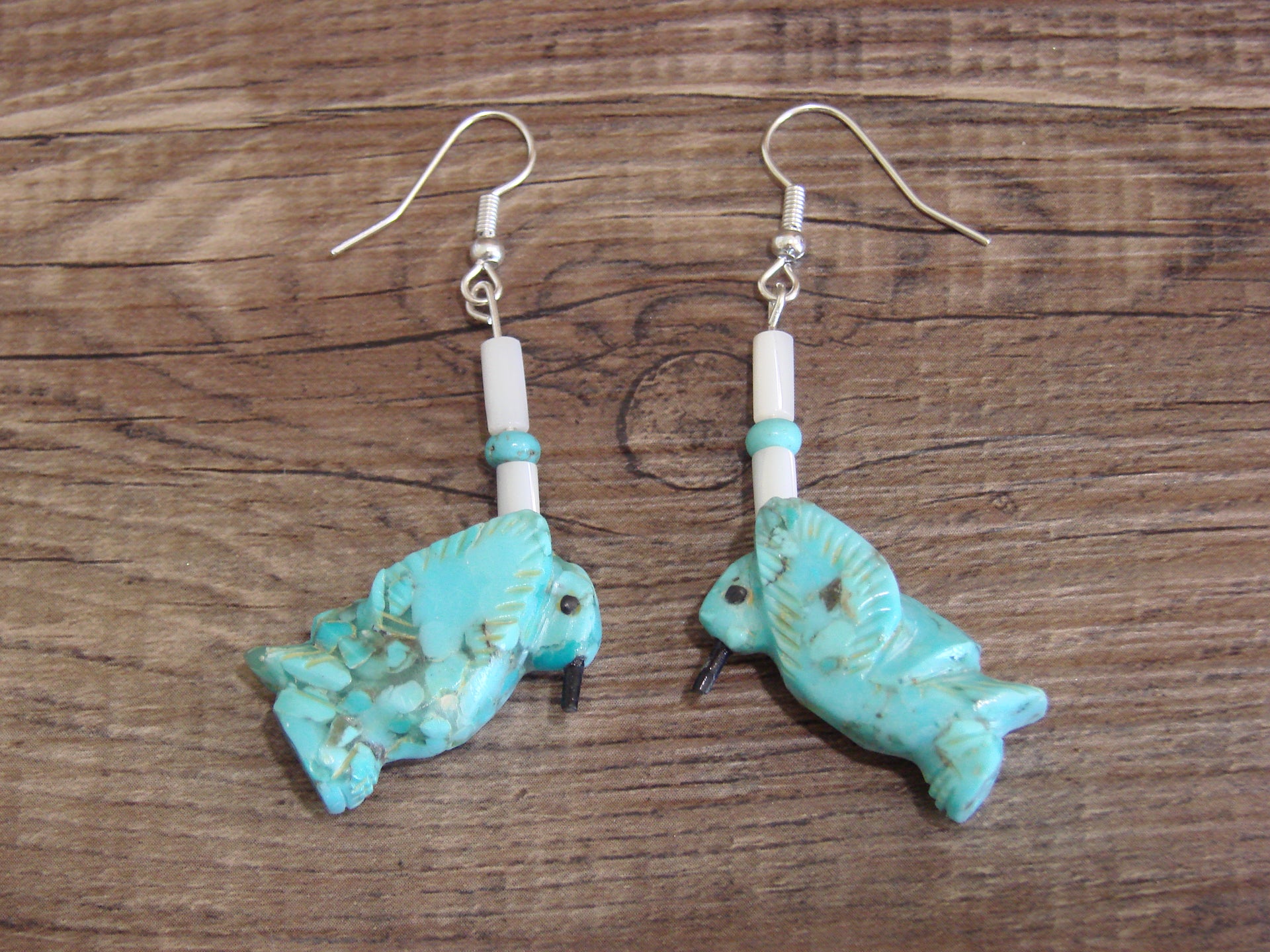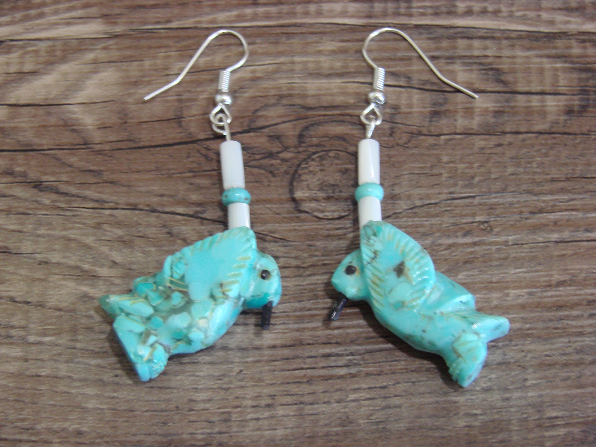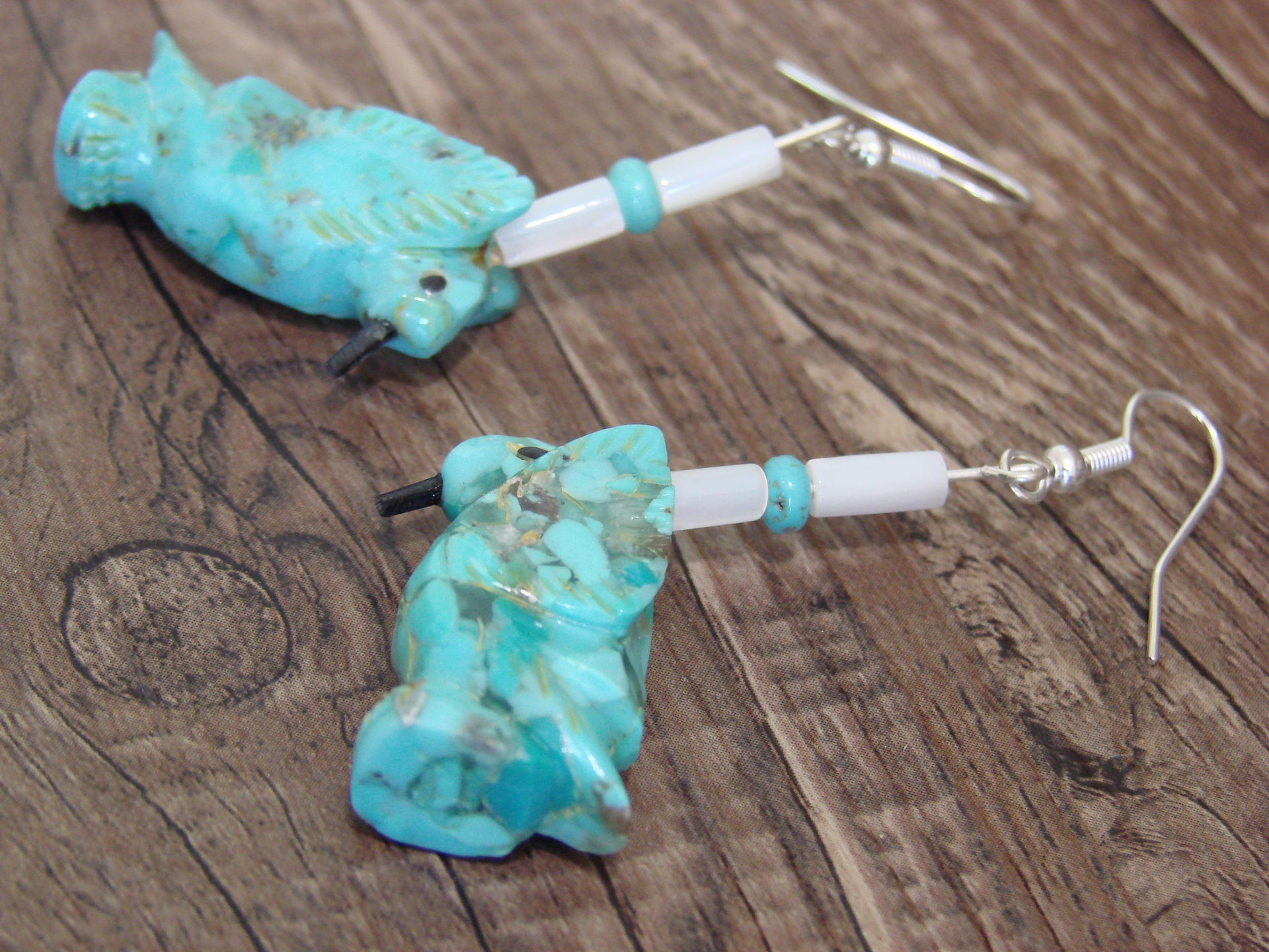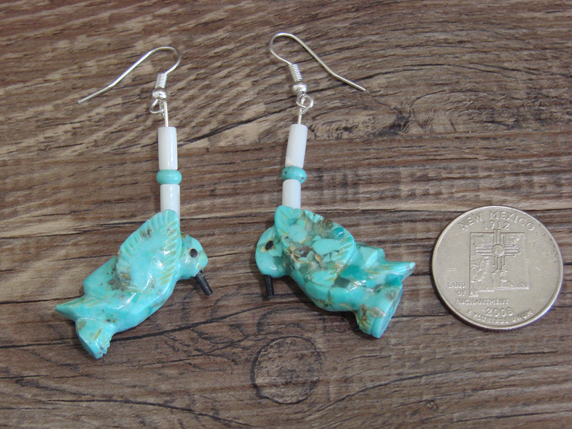 Native American Hand Carved Hummingbird Fetish Dangle Earrings - Laate