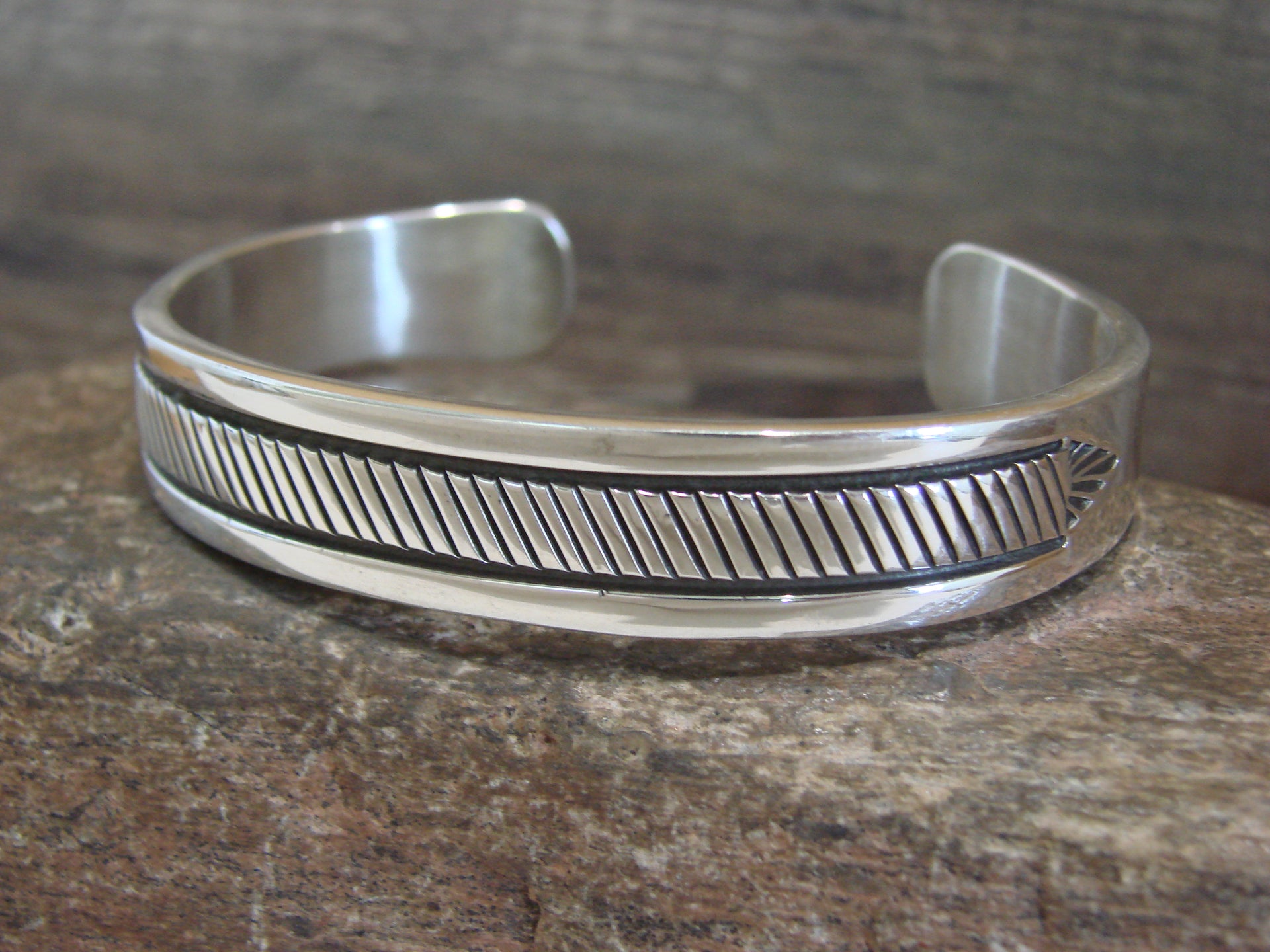 Native American Indian Hand Stamped Sterling Silver Bracelet Signed B Morgan