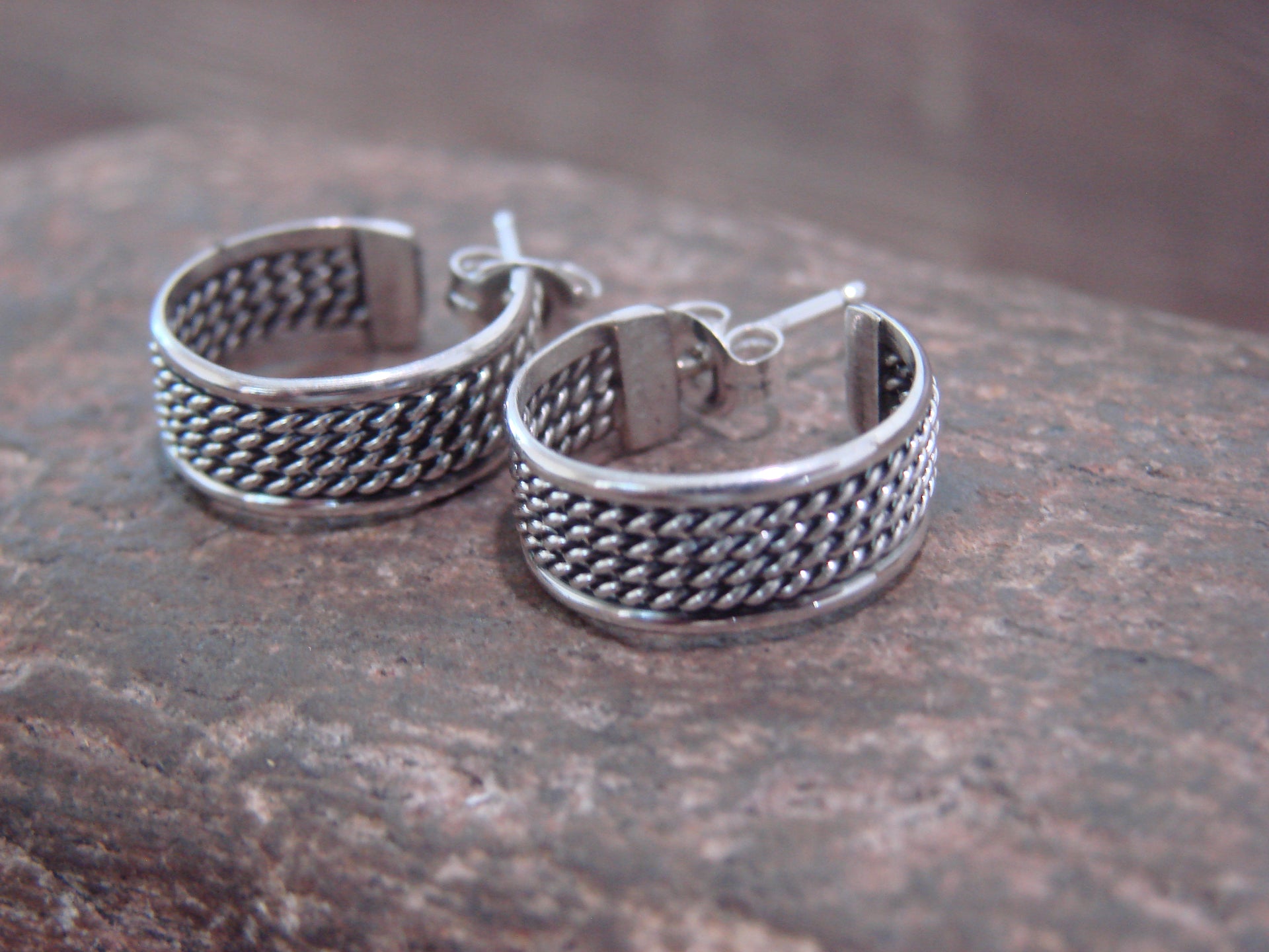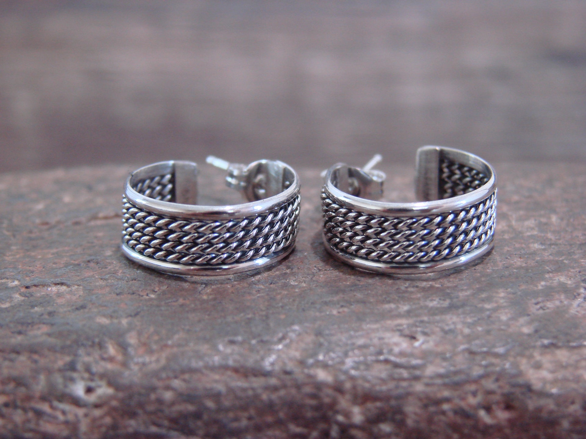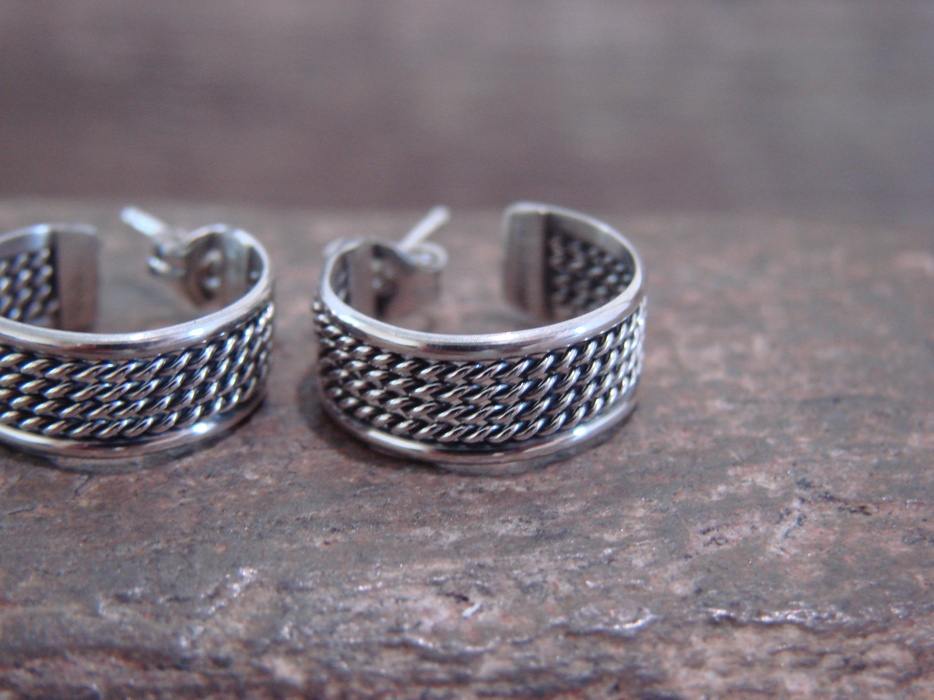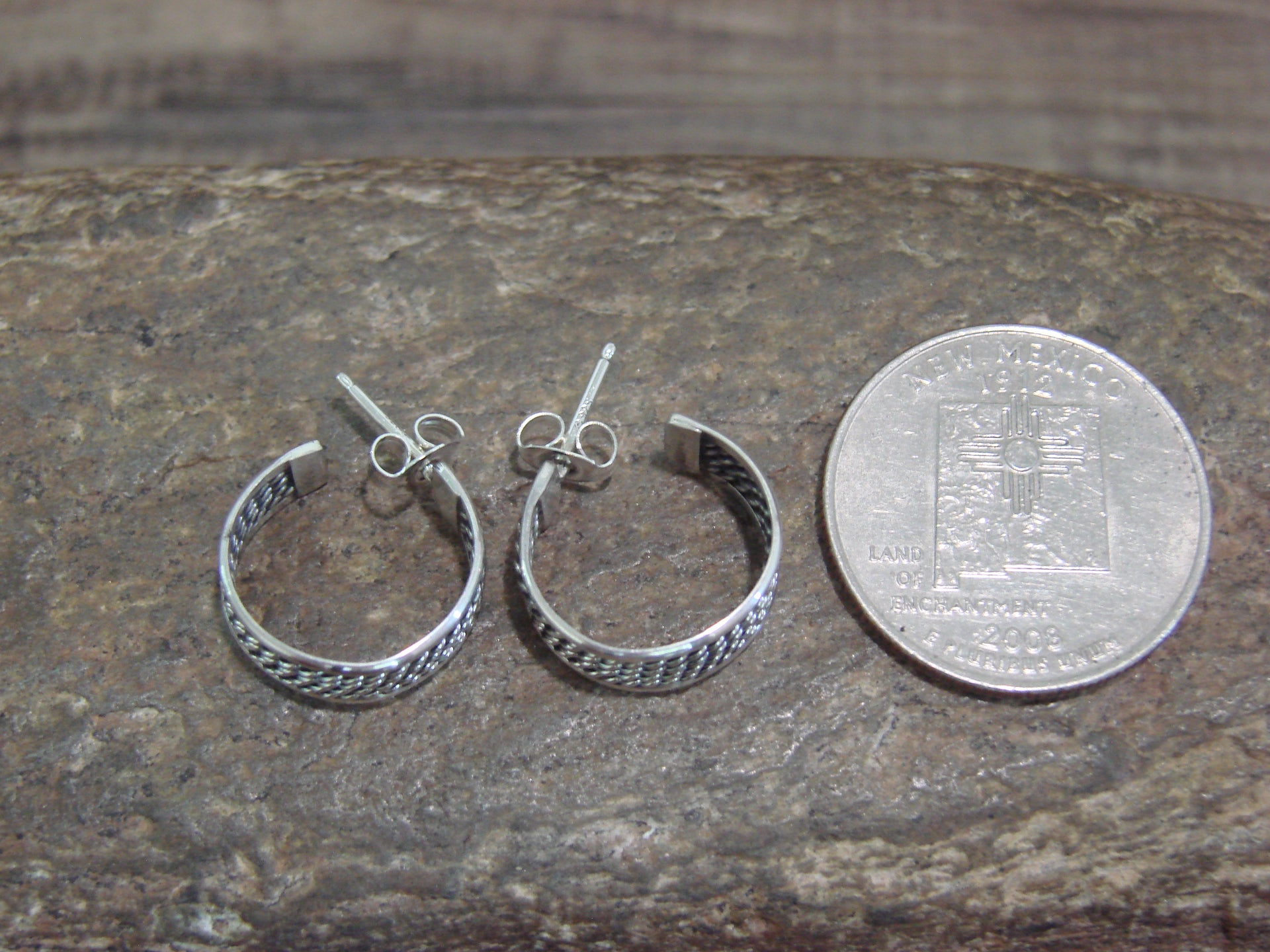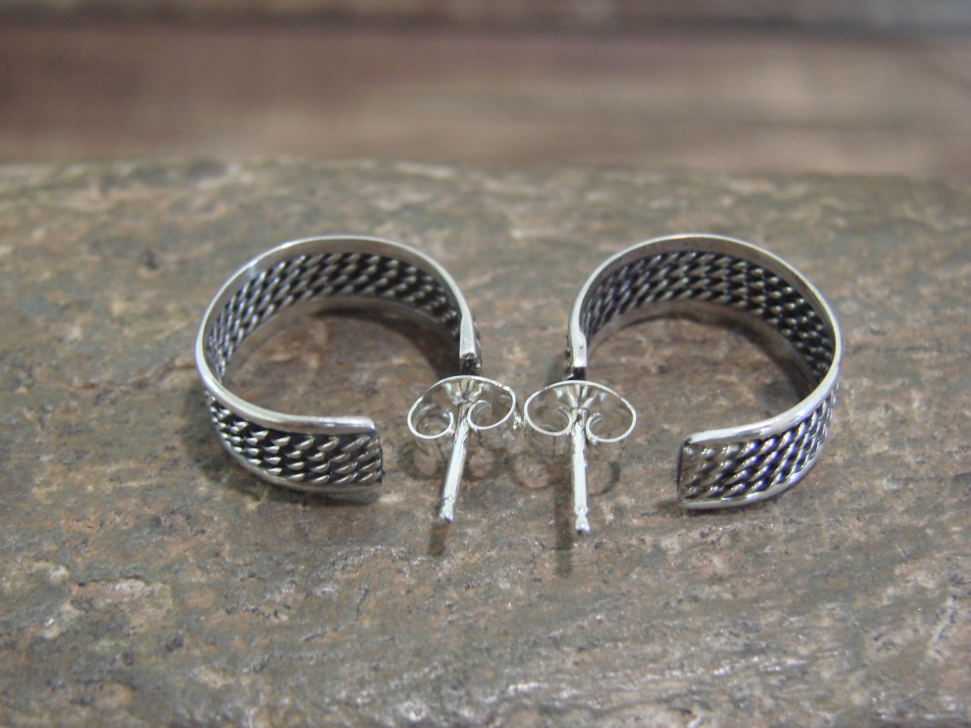 Native American Indian Sterling Silver 5/8" Twisted Hoop Earrings by Tahe