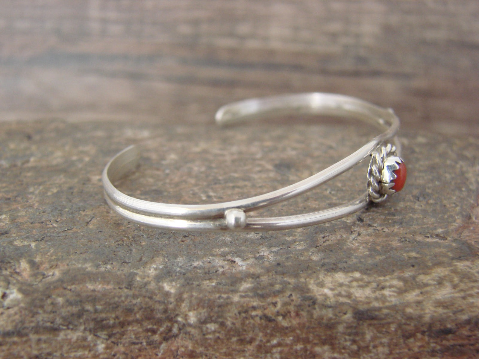 Native American Sterling Silver Coral Baby / Child Bracelet - Cadman
