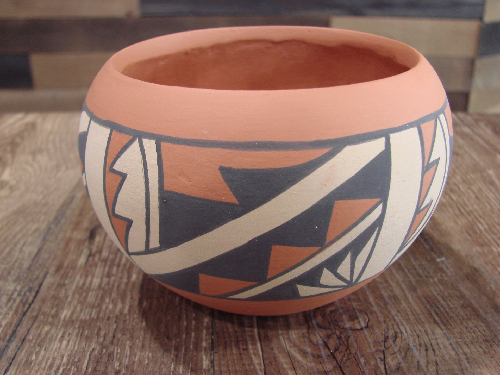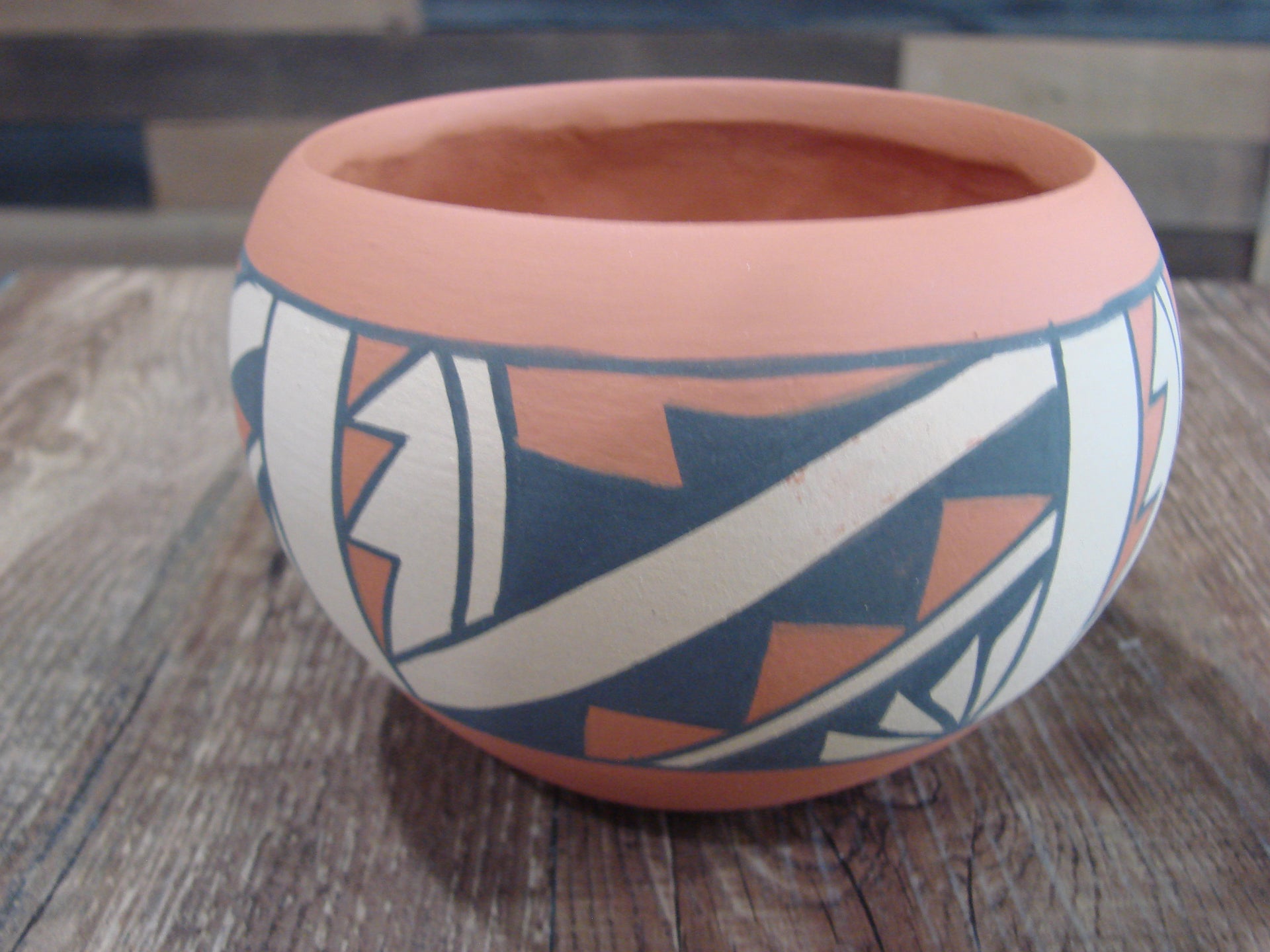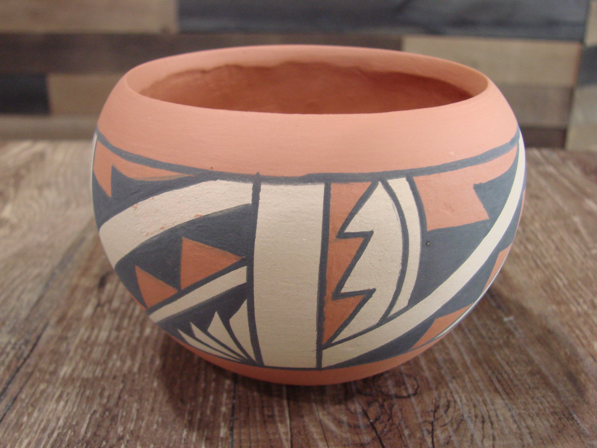 Genuine Native American Jemez Indian Hand Coiled and Hand Painted Clay Pottery from Northern New Mexico. This Stunning Pottery is beautifully Hand Coiled and Hand Made to perfection! This piece is handmade with Jemez Clay. Handmade by KM. Signed "K.M. Jemez N.M." on the bottom. Free shipping included!