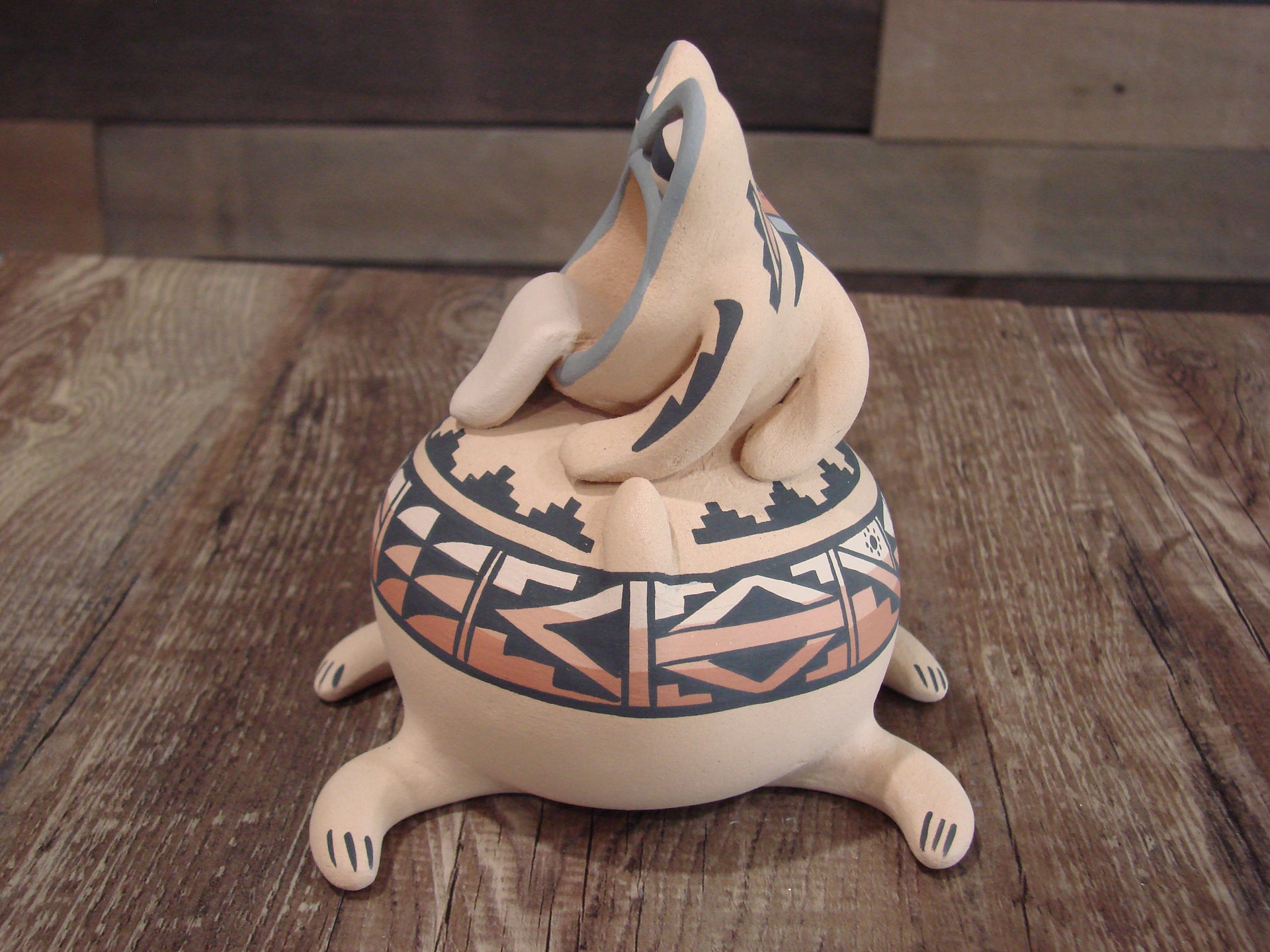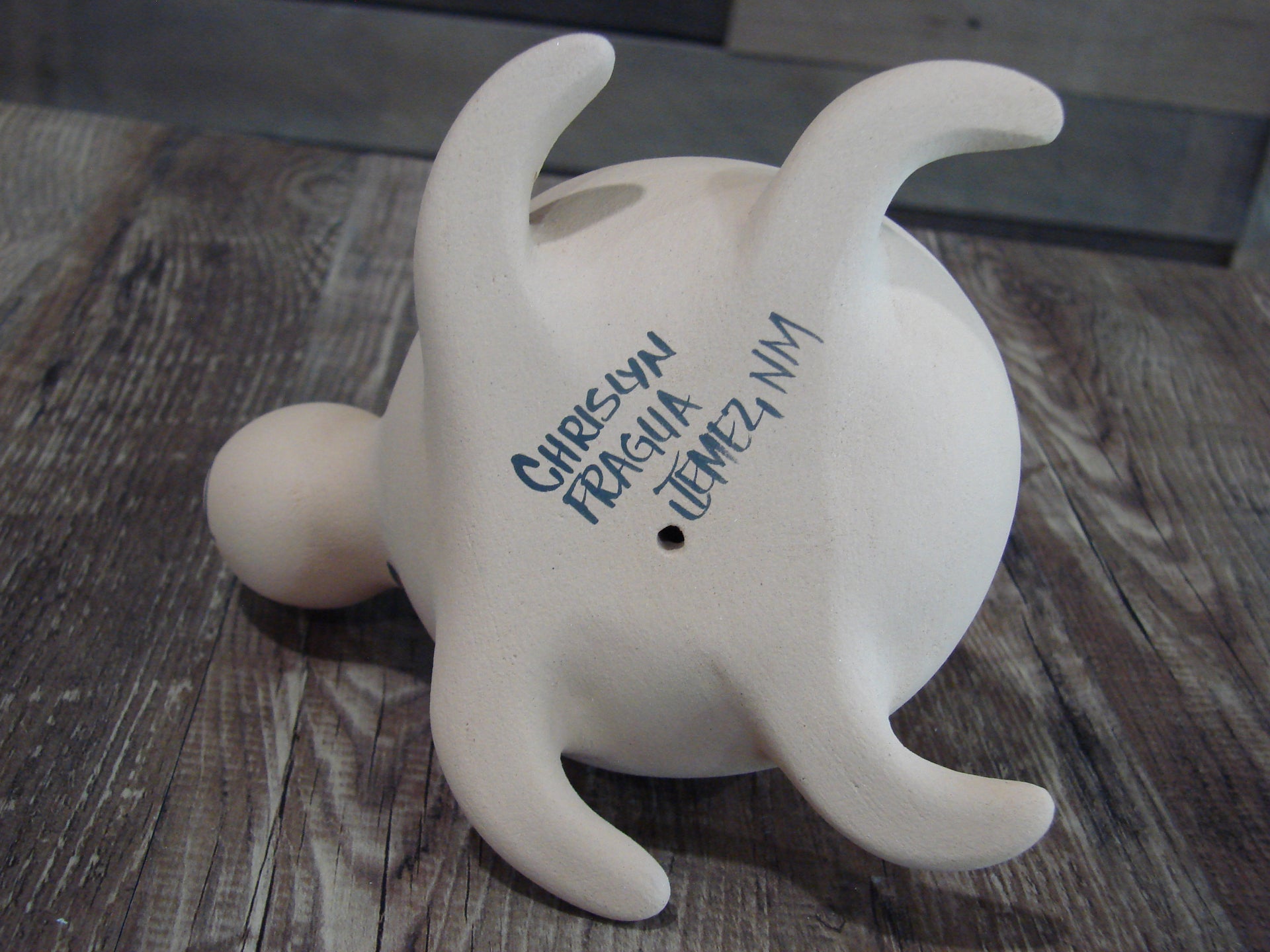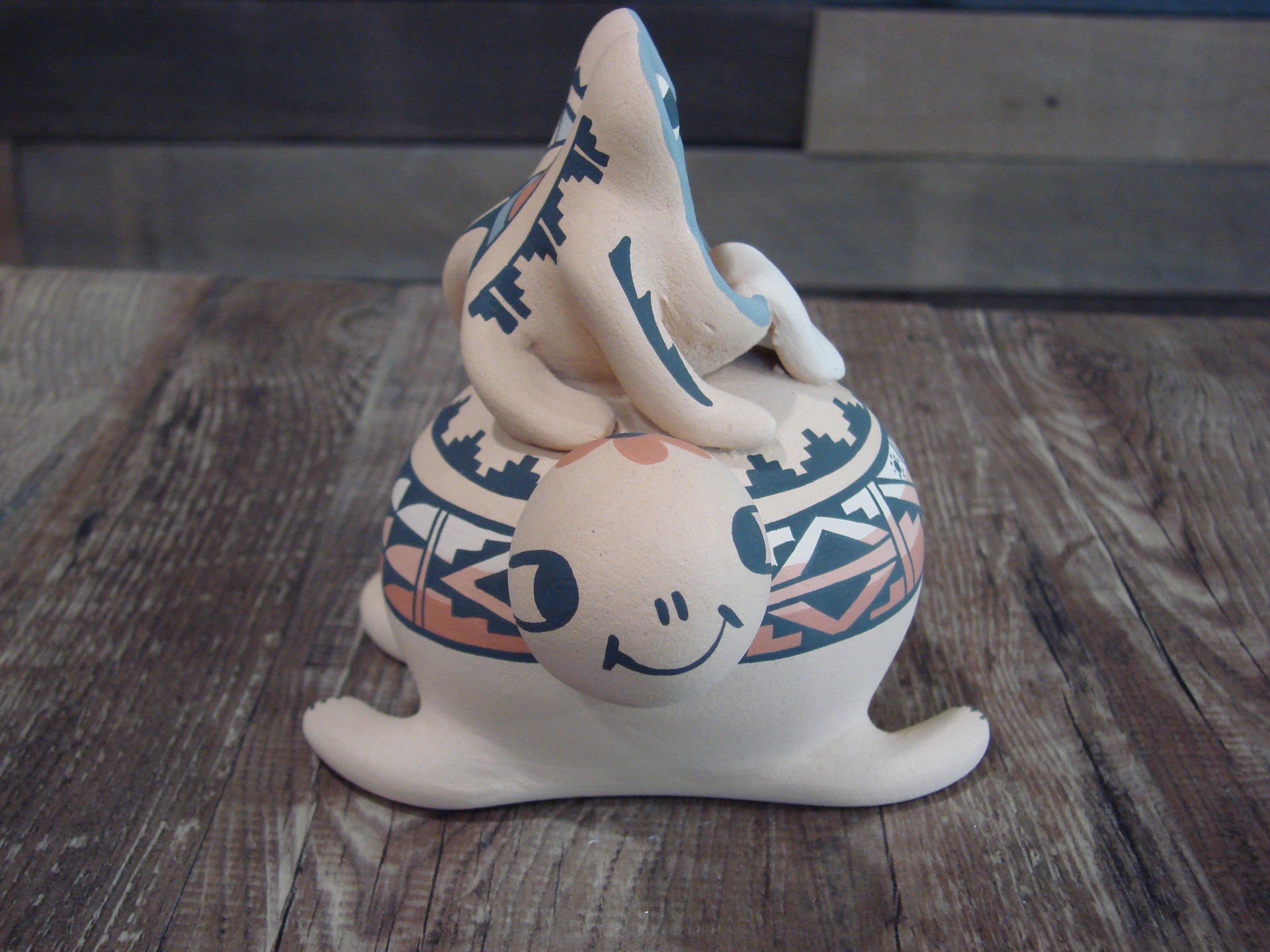 Genuine Native American Jemez Indian Hand Made Clay Frog & Turtle from Northern New Mexico. This Unique Piece features a beautifully Hand Painted Turtle Host with Frog on back. This piece is handmade with Jemez Mountain Clay. Handmade by Chrislyn Fragua. Signed on the bottom. Free shipping included!