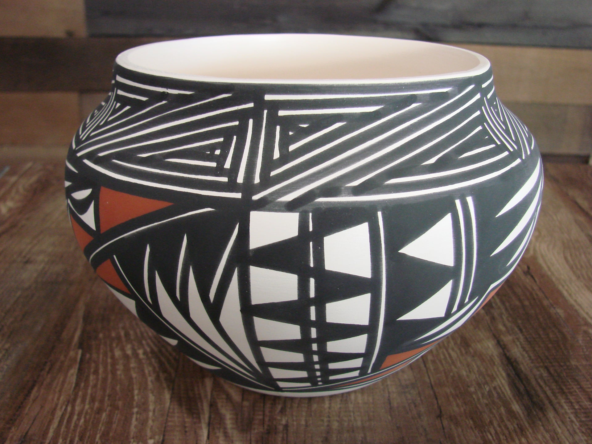 Native American Laguna Fine Line Hand Painted Pottery by B. Ortiz