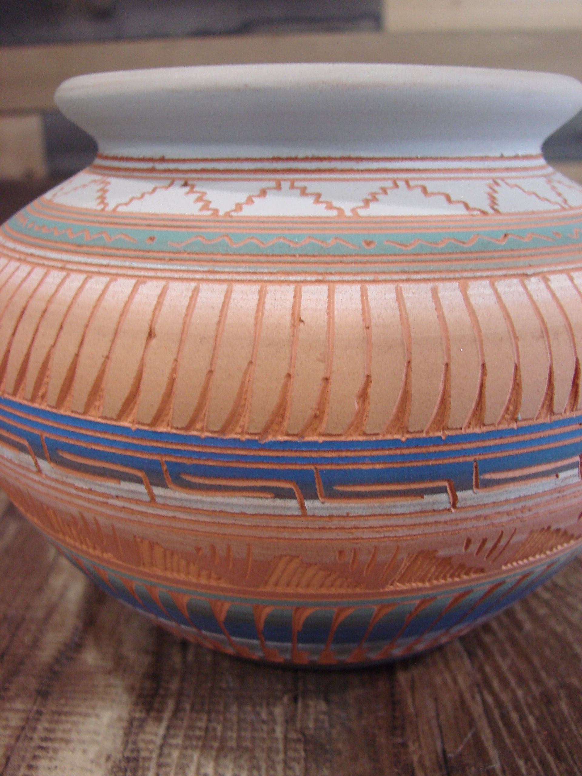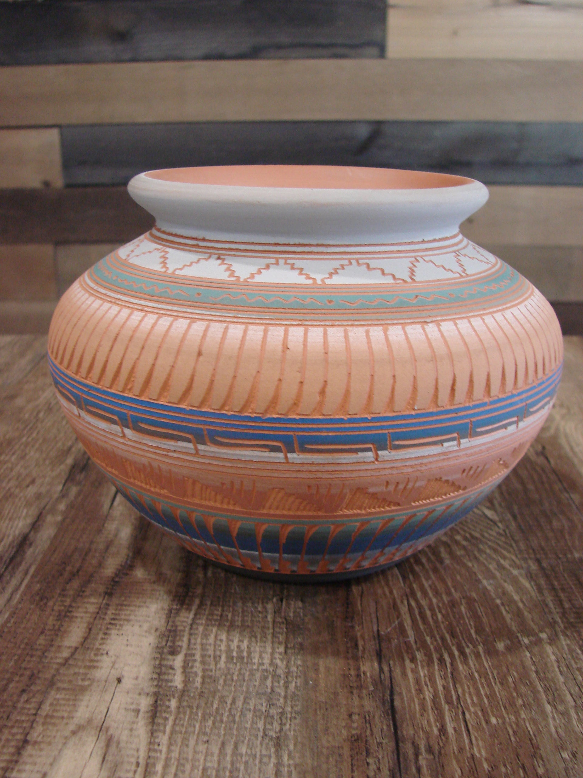 Native American Navajo Hand Etched & Hand Painted Pottery - Charlie