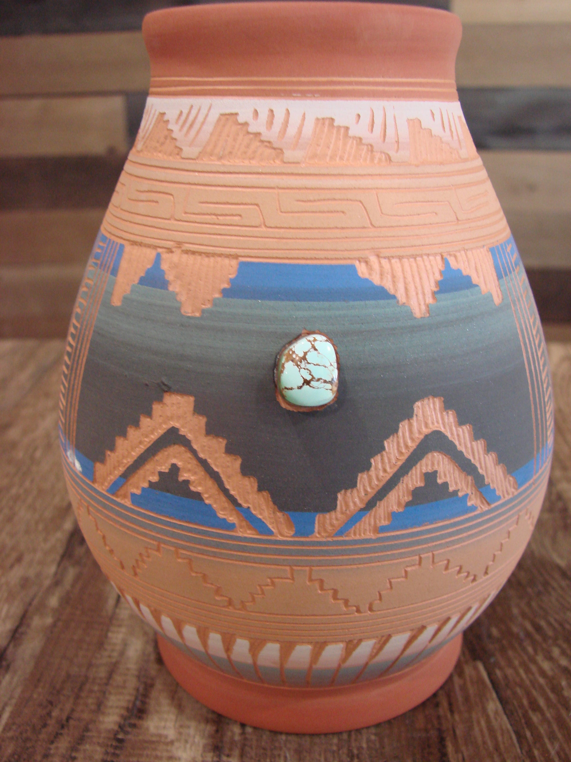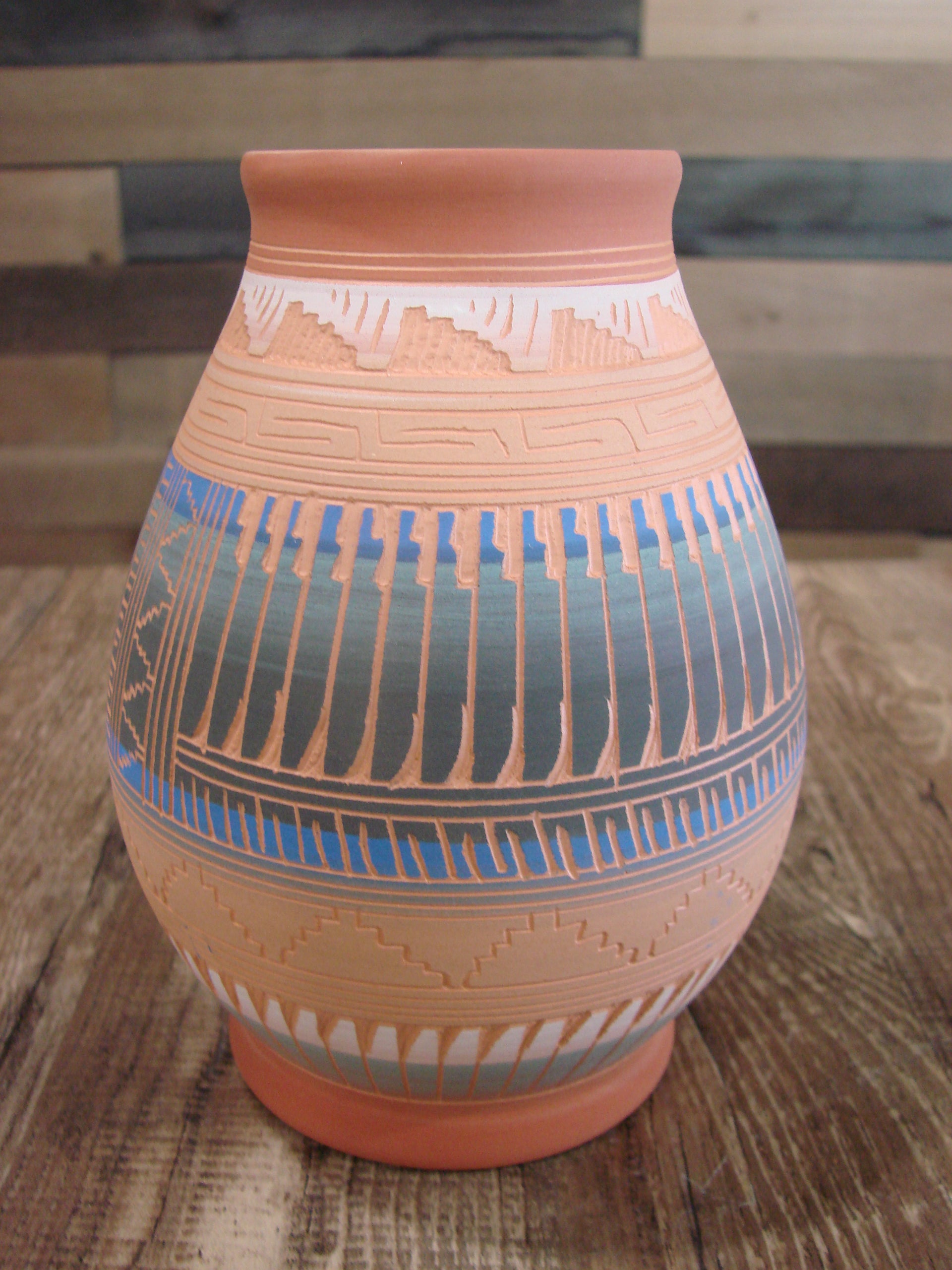 Native American Navajo Hand Etched & Hand Painted Pottery - Charlie