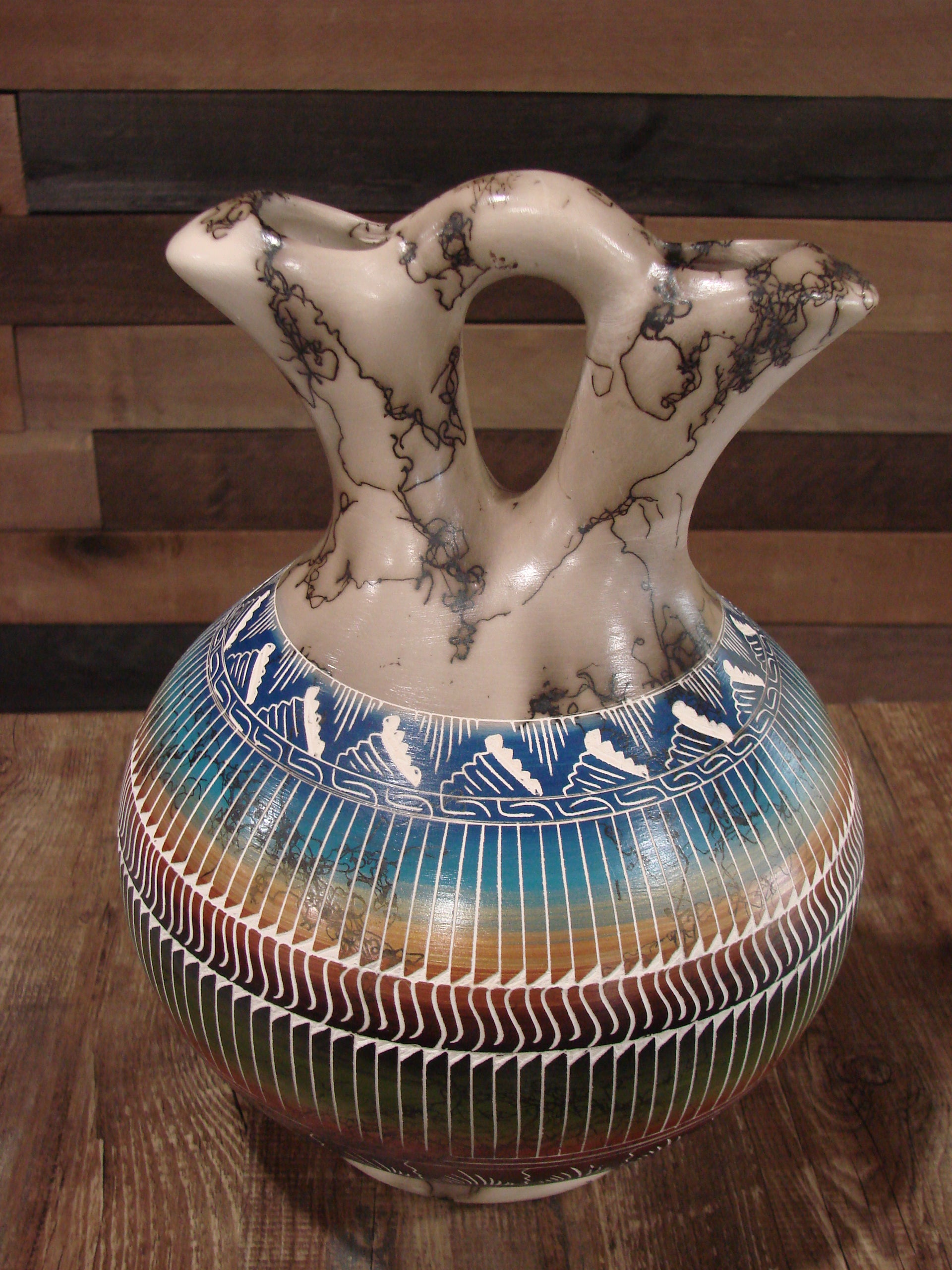 Native American Navajo Hand Etched Horse Hair Wedding Vase - Benally