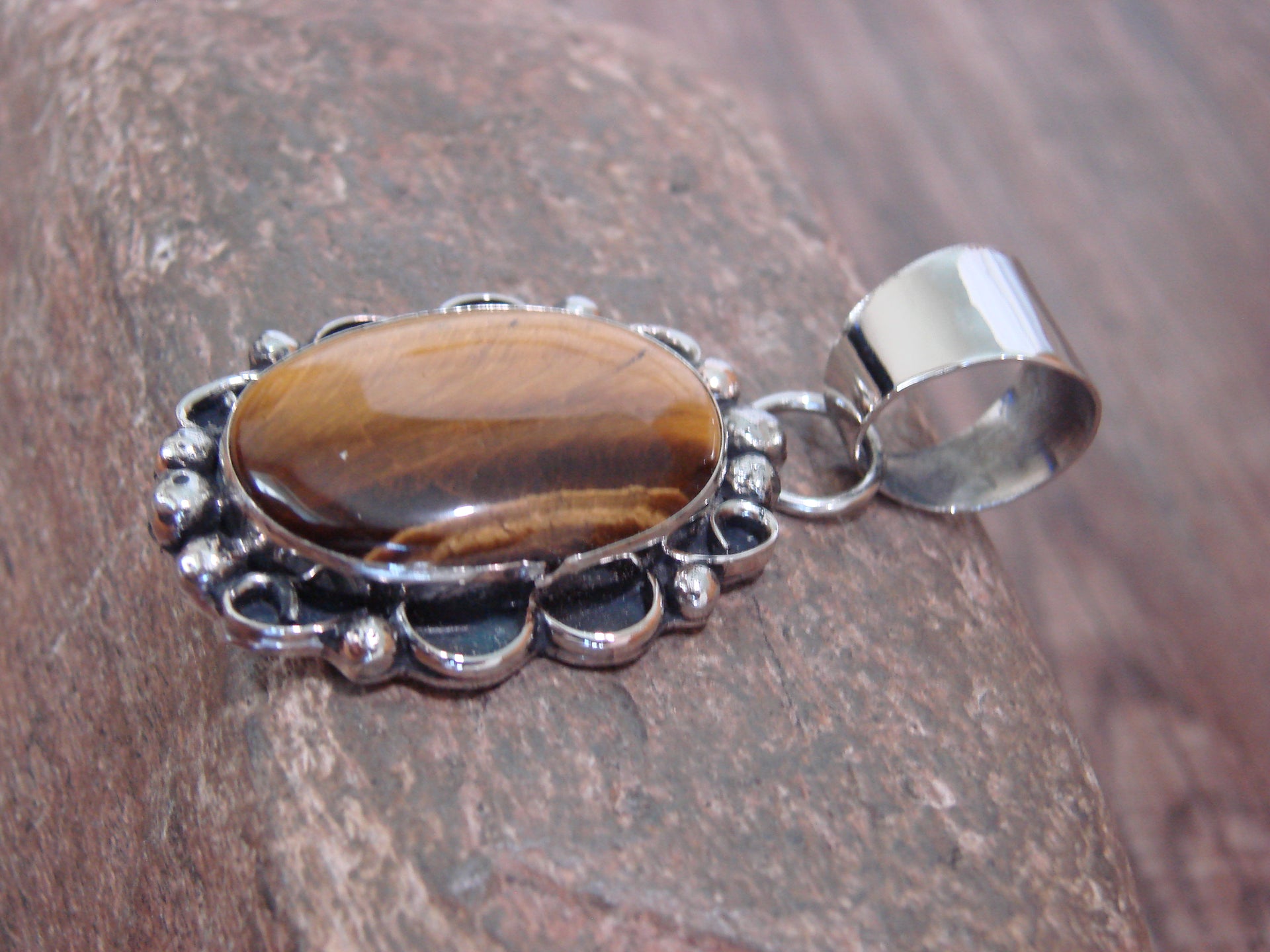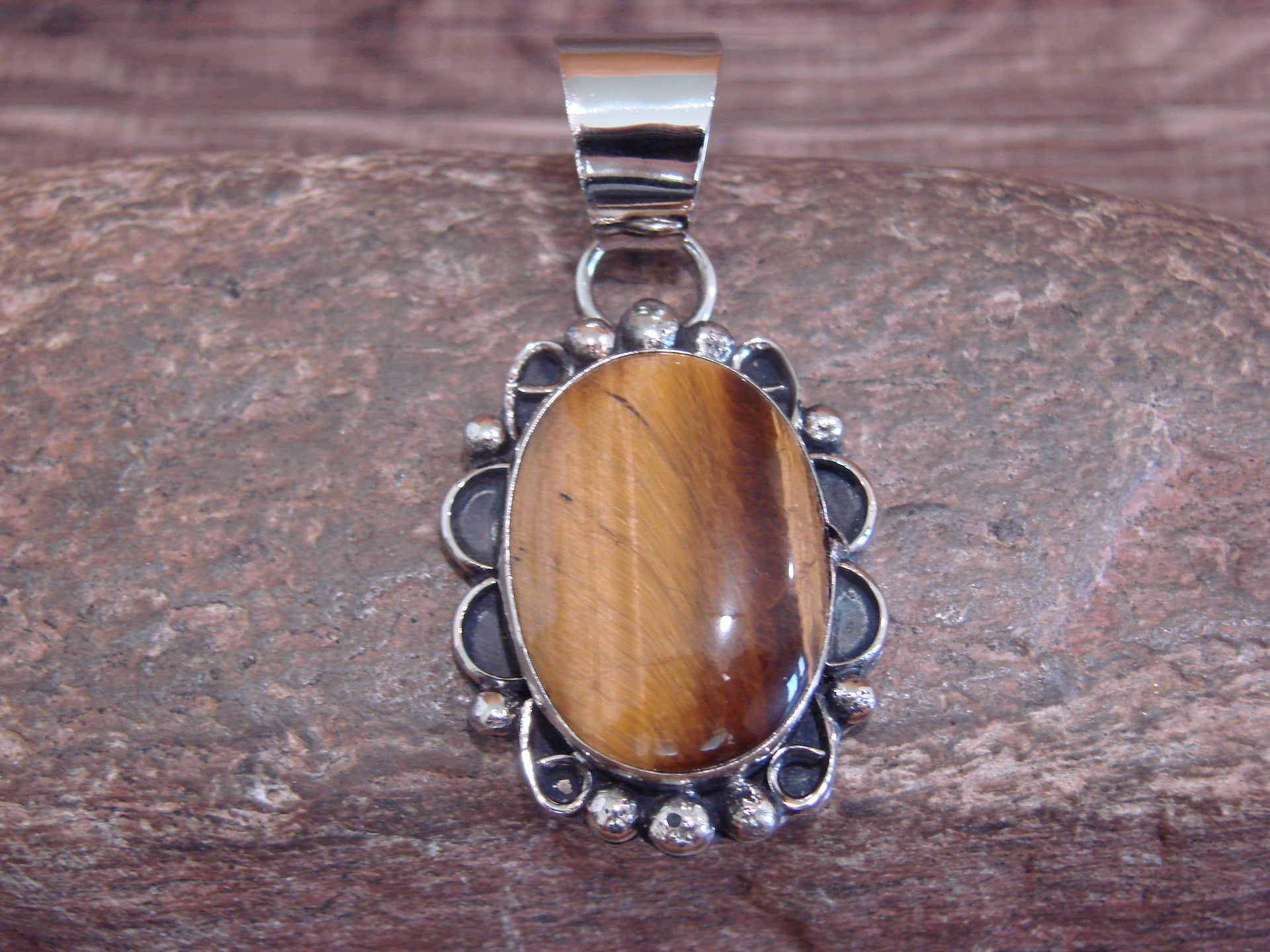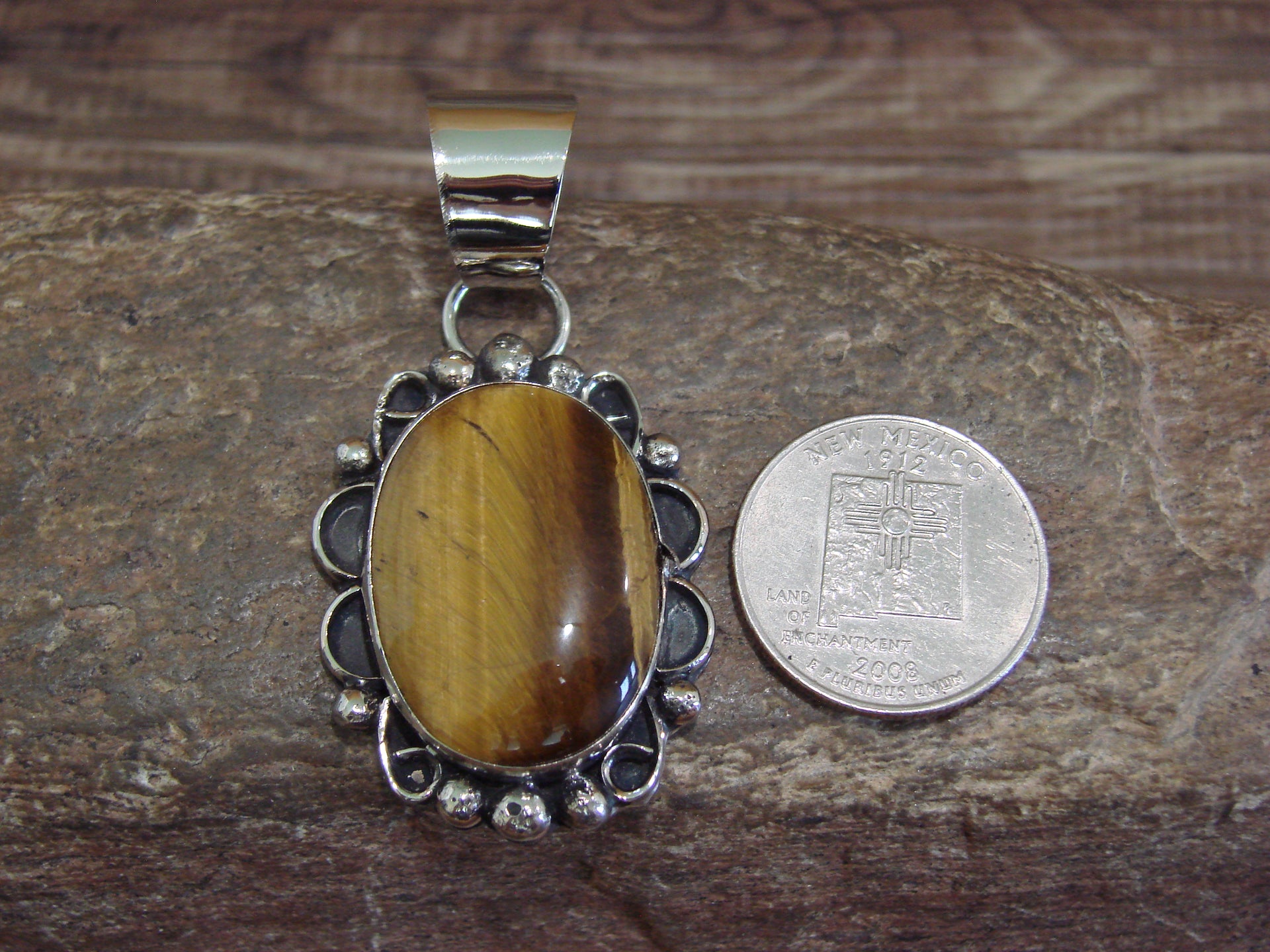 Native American Navajo Nickel Silver & Tiger Eye Pendant - Cleveland