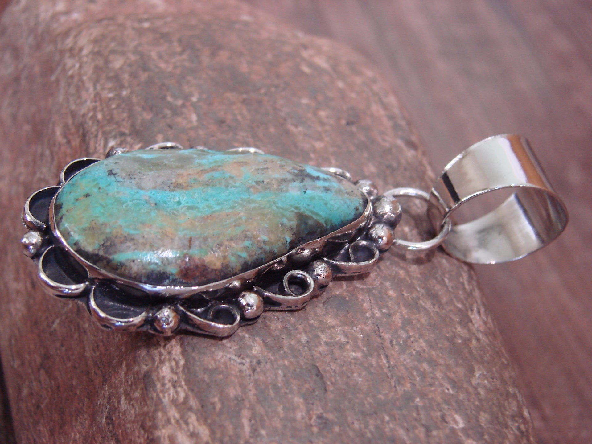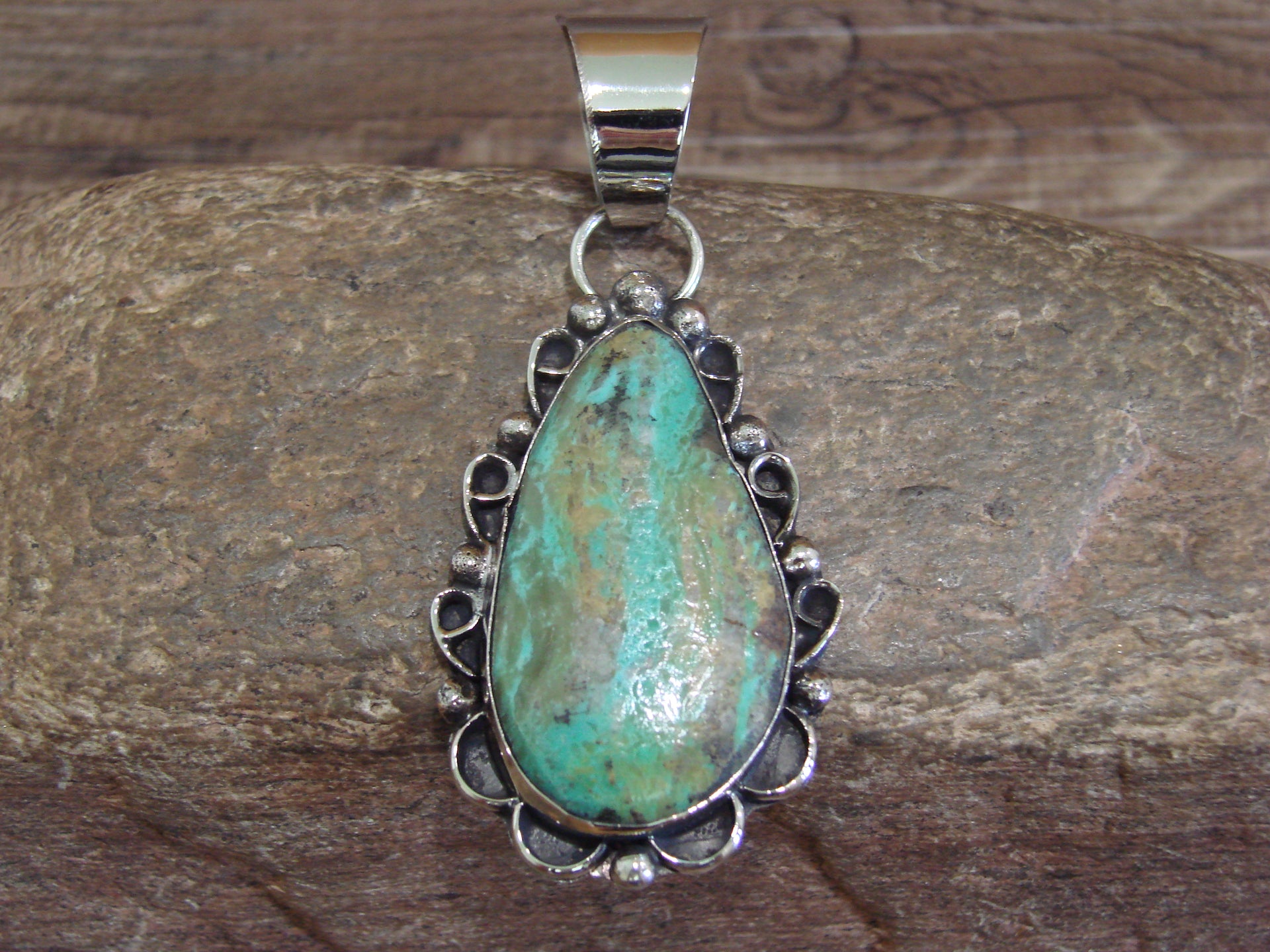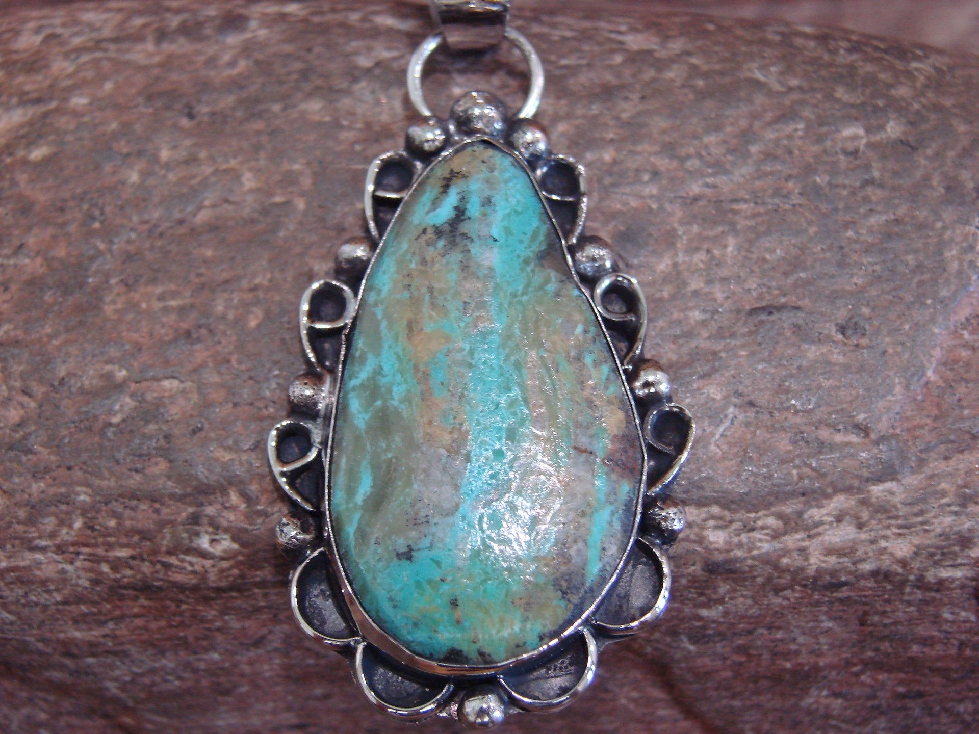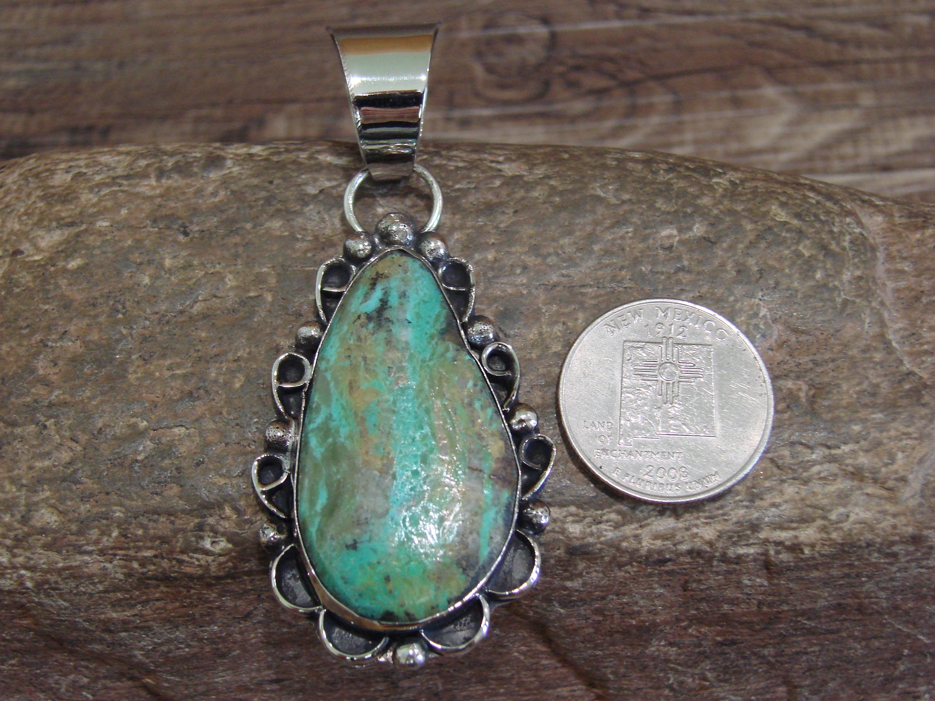 Native American Navajo Nickel Silver & Turquoise Pendant - Cleveland