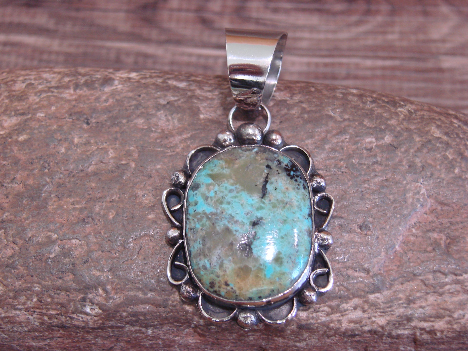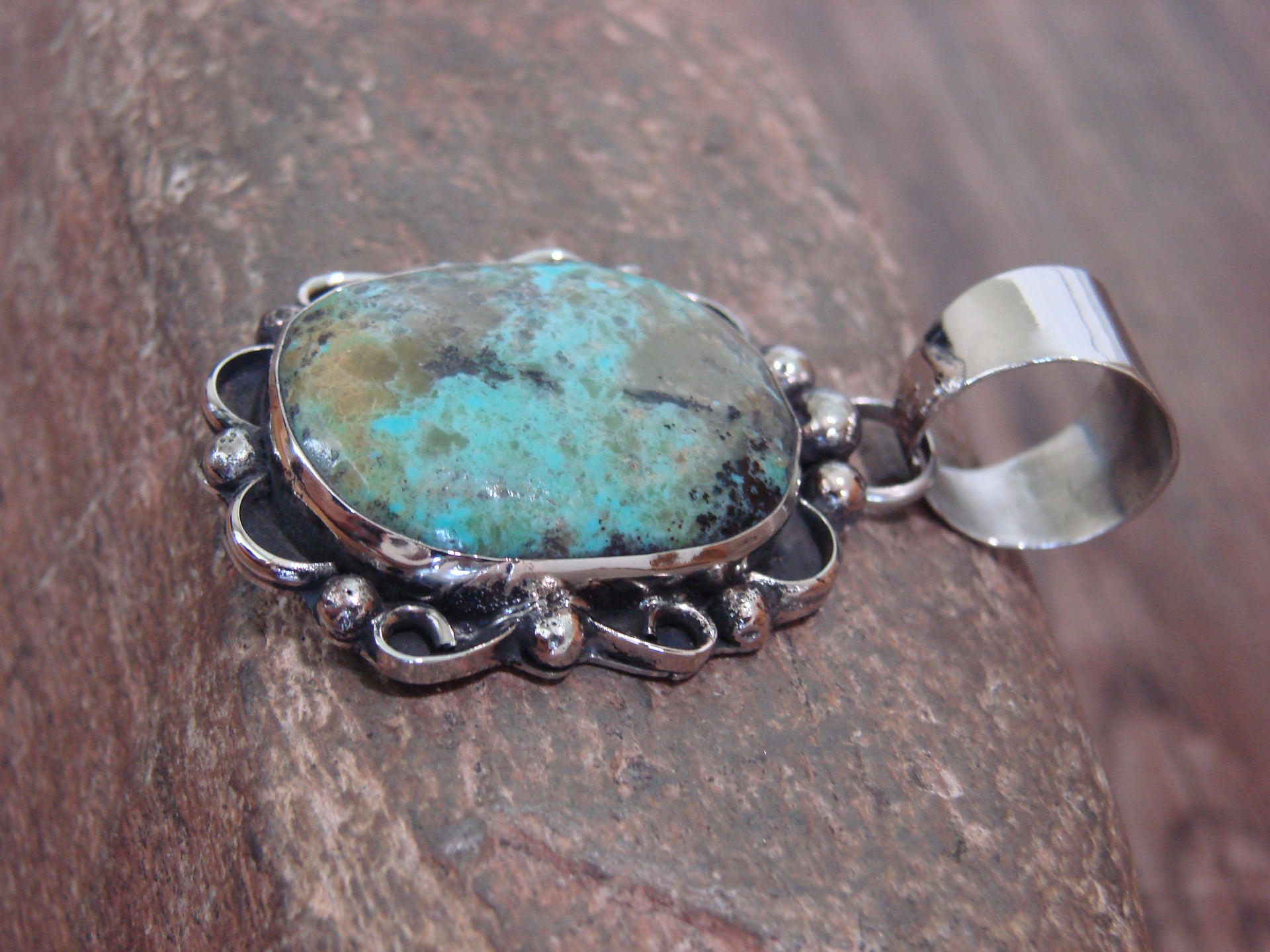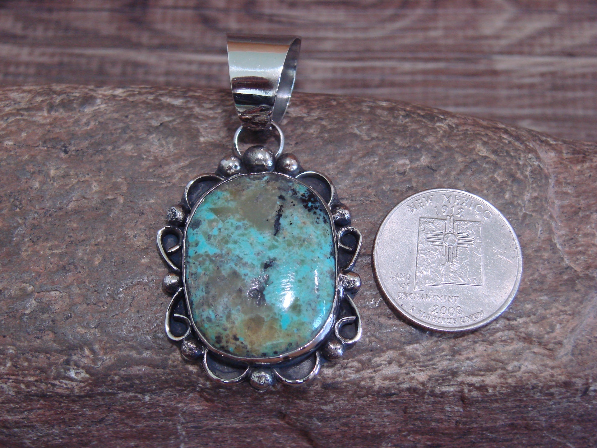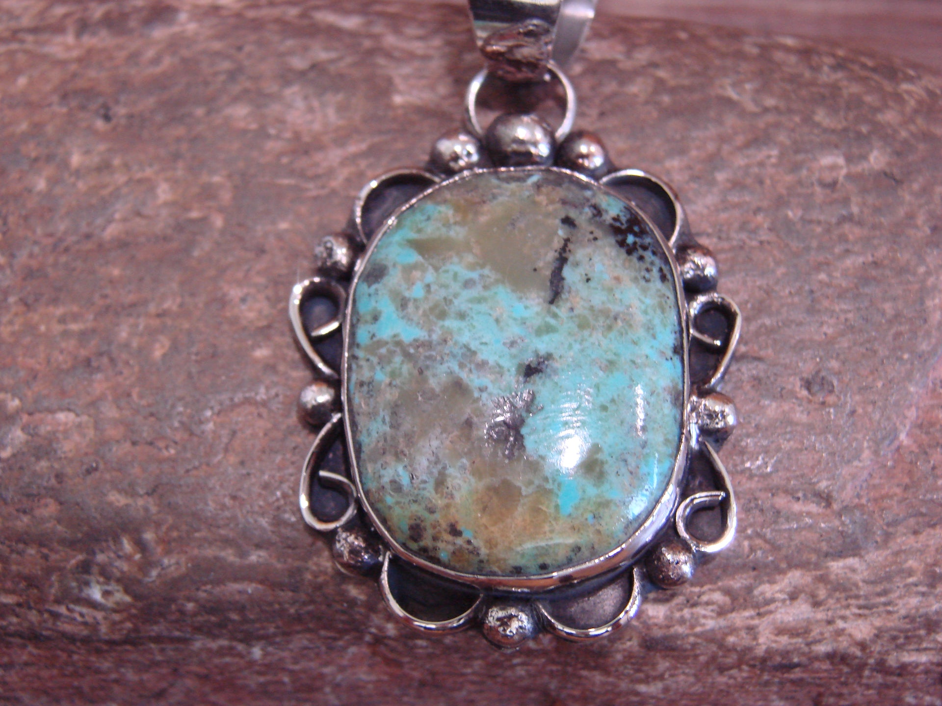 Native American Navajo Nickel Silver & Turquoise Pendant - Cleveland