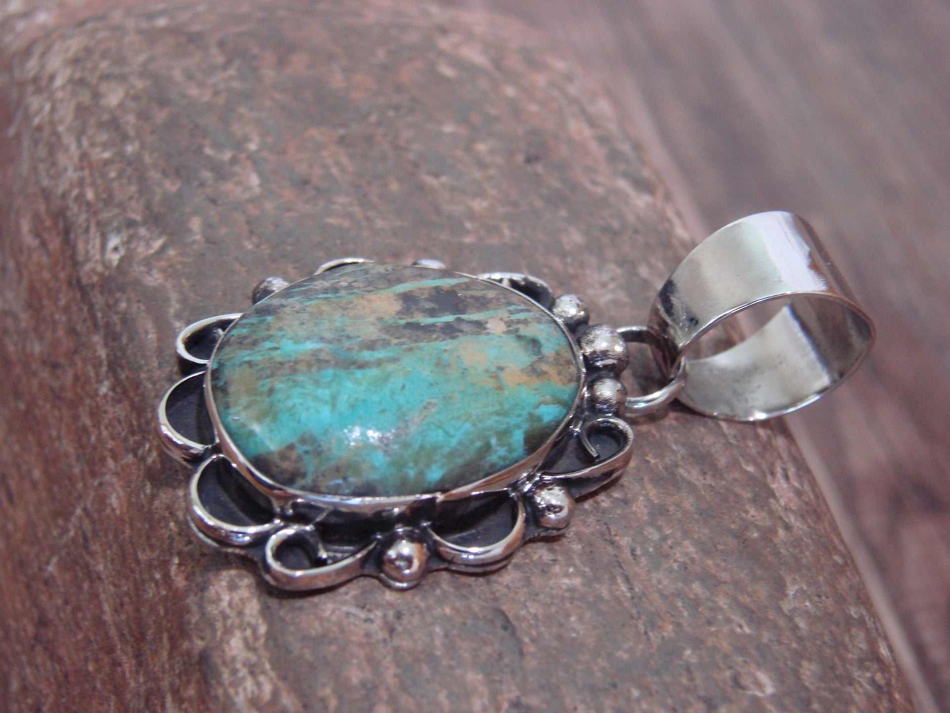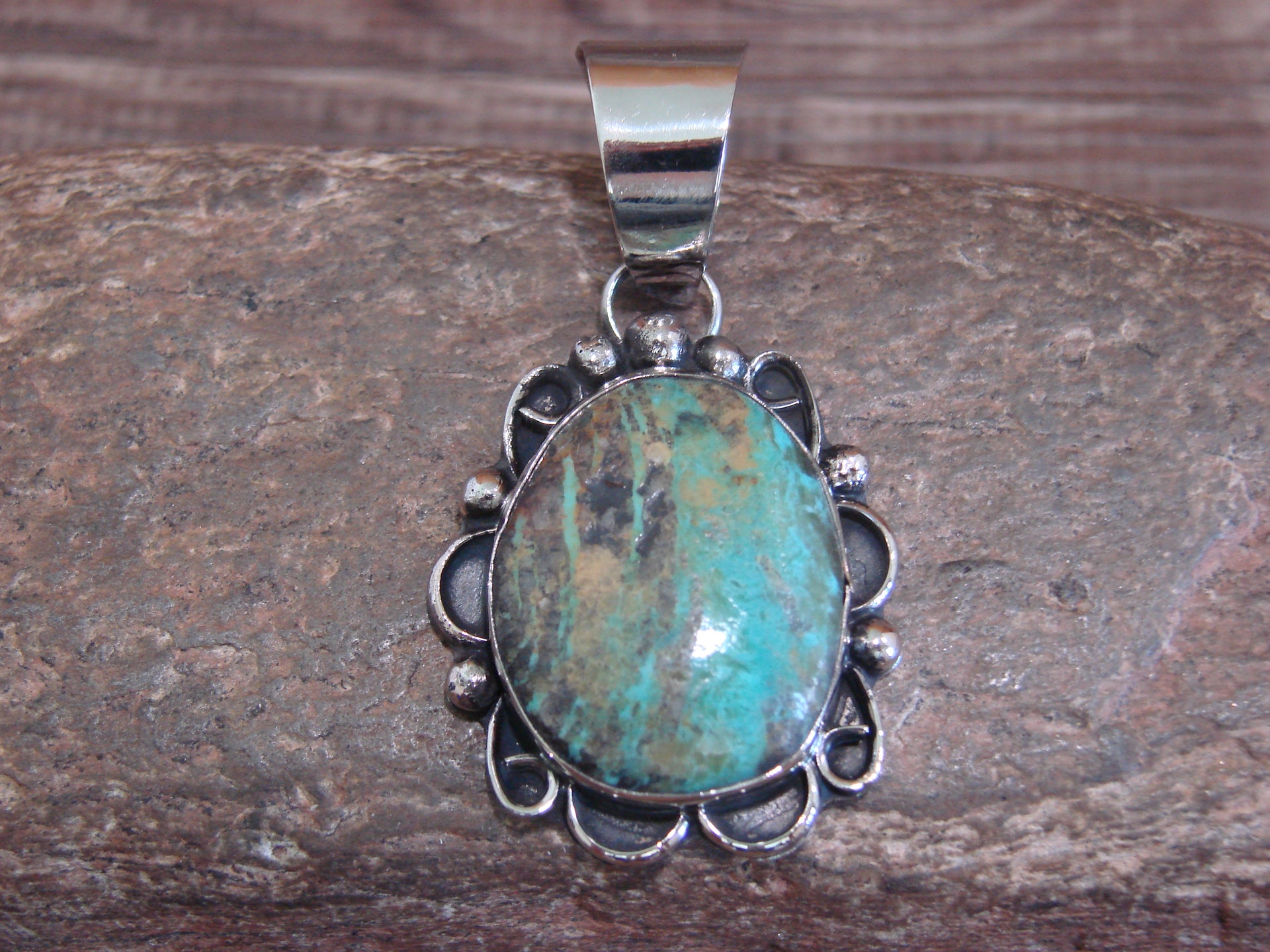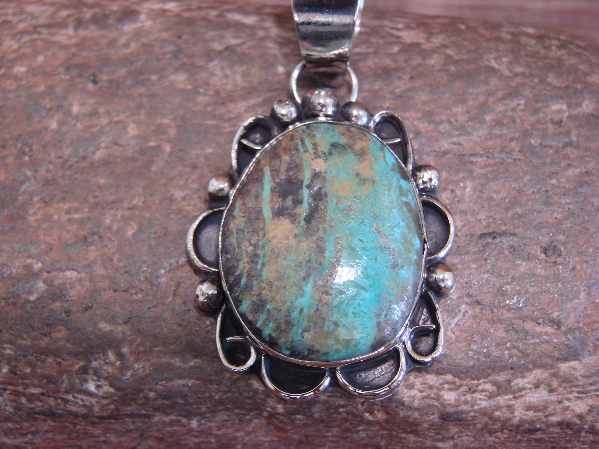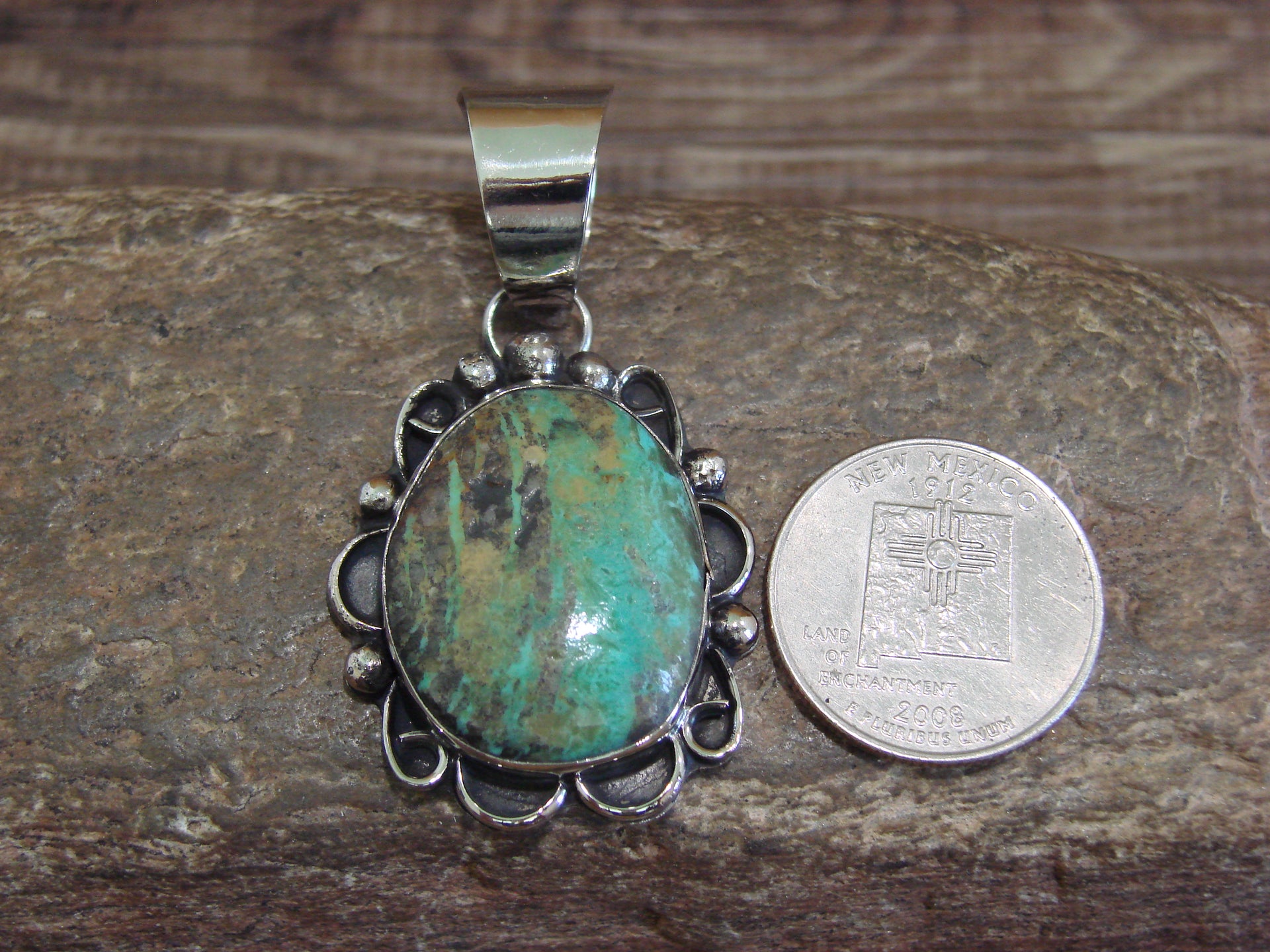 Native American Navajo Nickel Silver & Turquoise Pendant - Cleveland