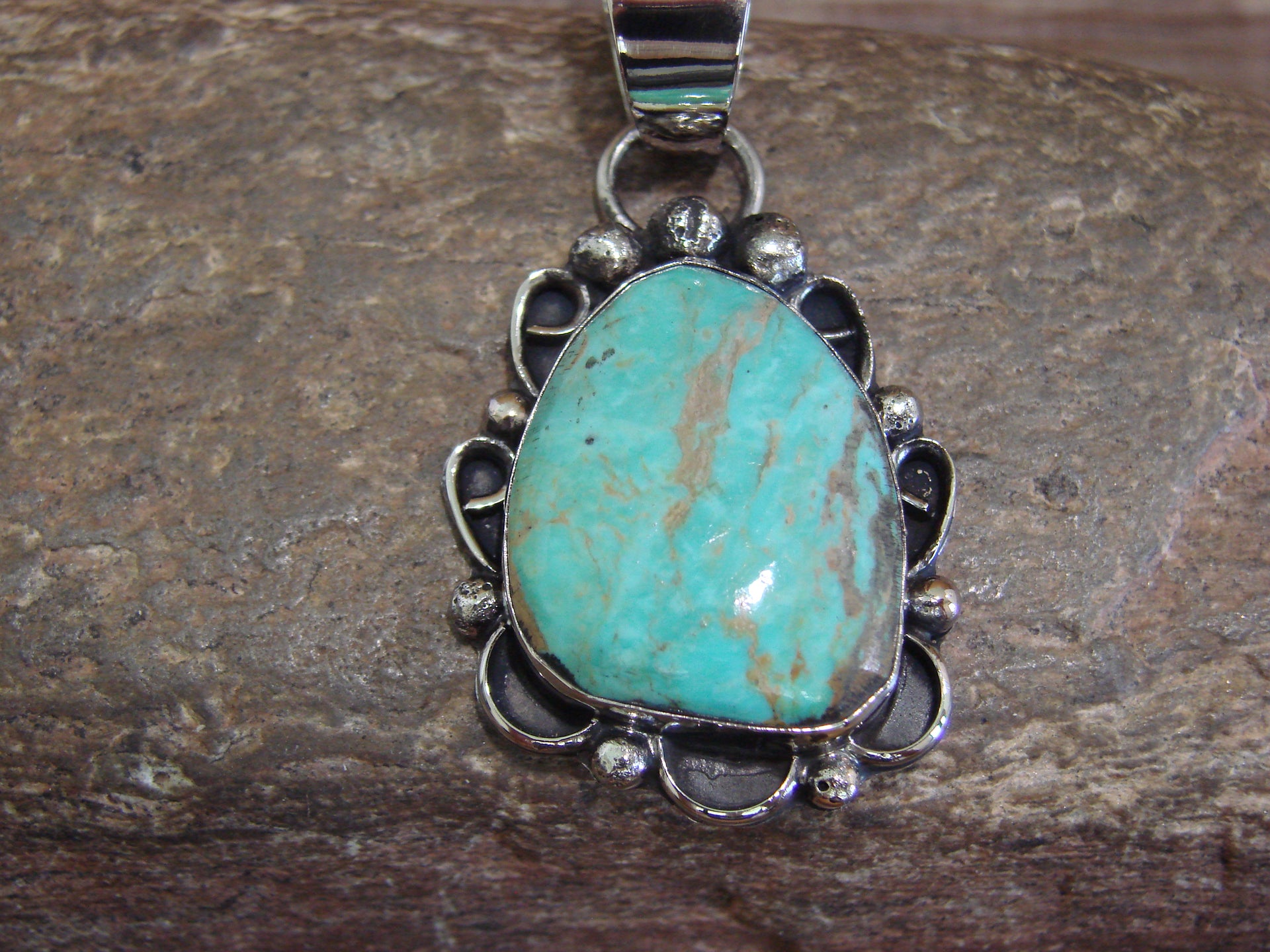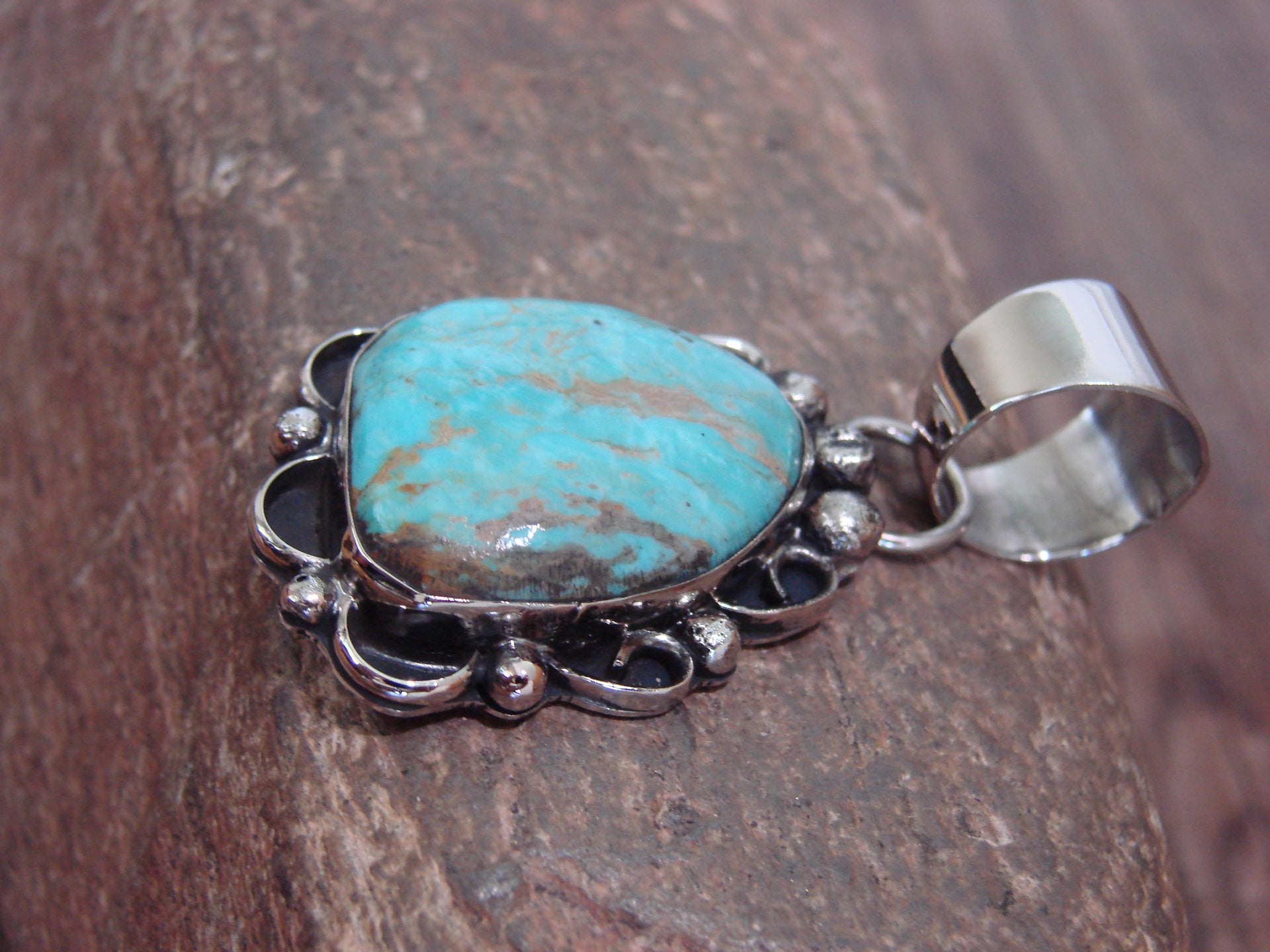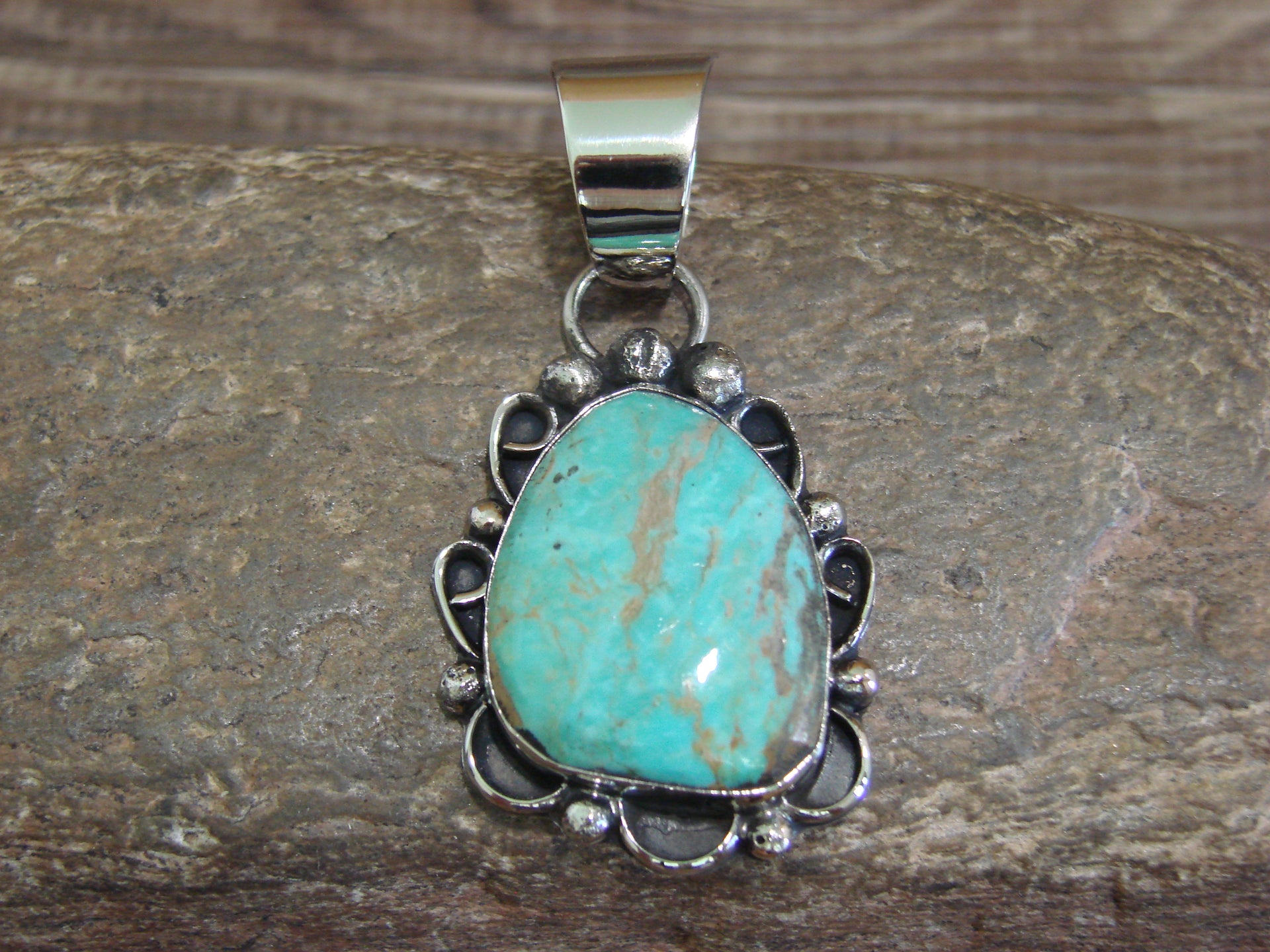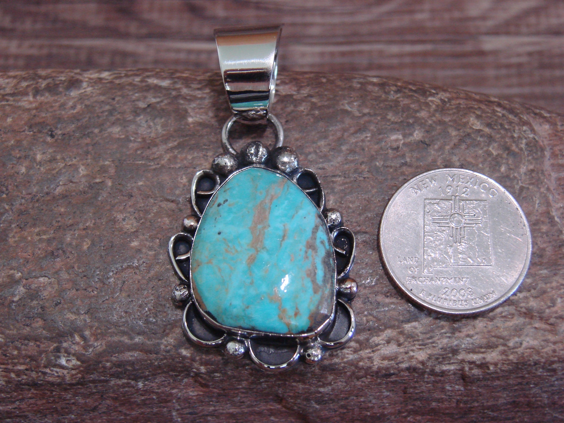 Native American Navajo Nickel Silver & Turquoise Pendant - Cleveland