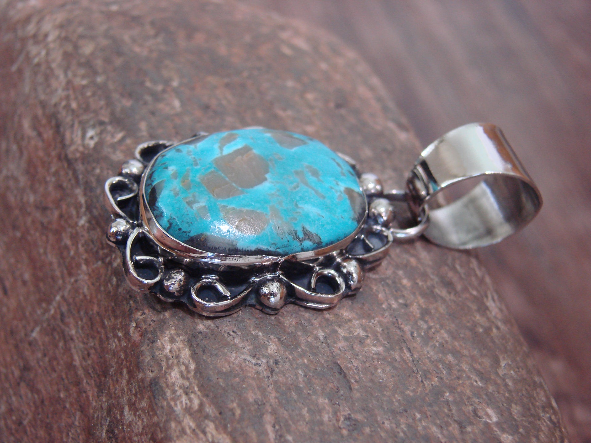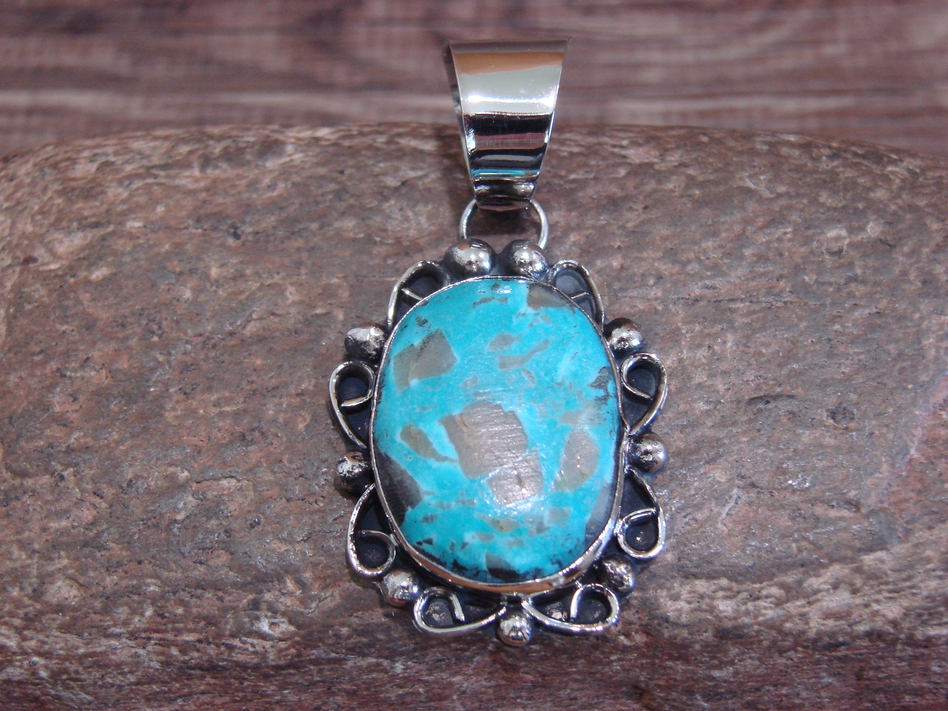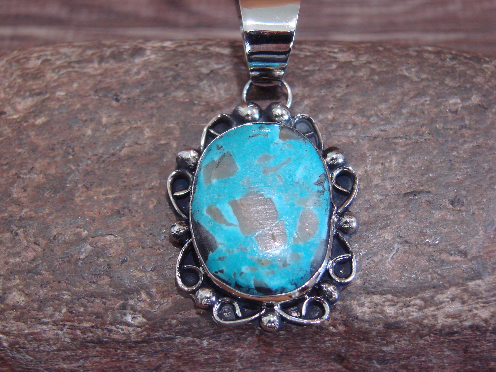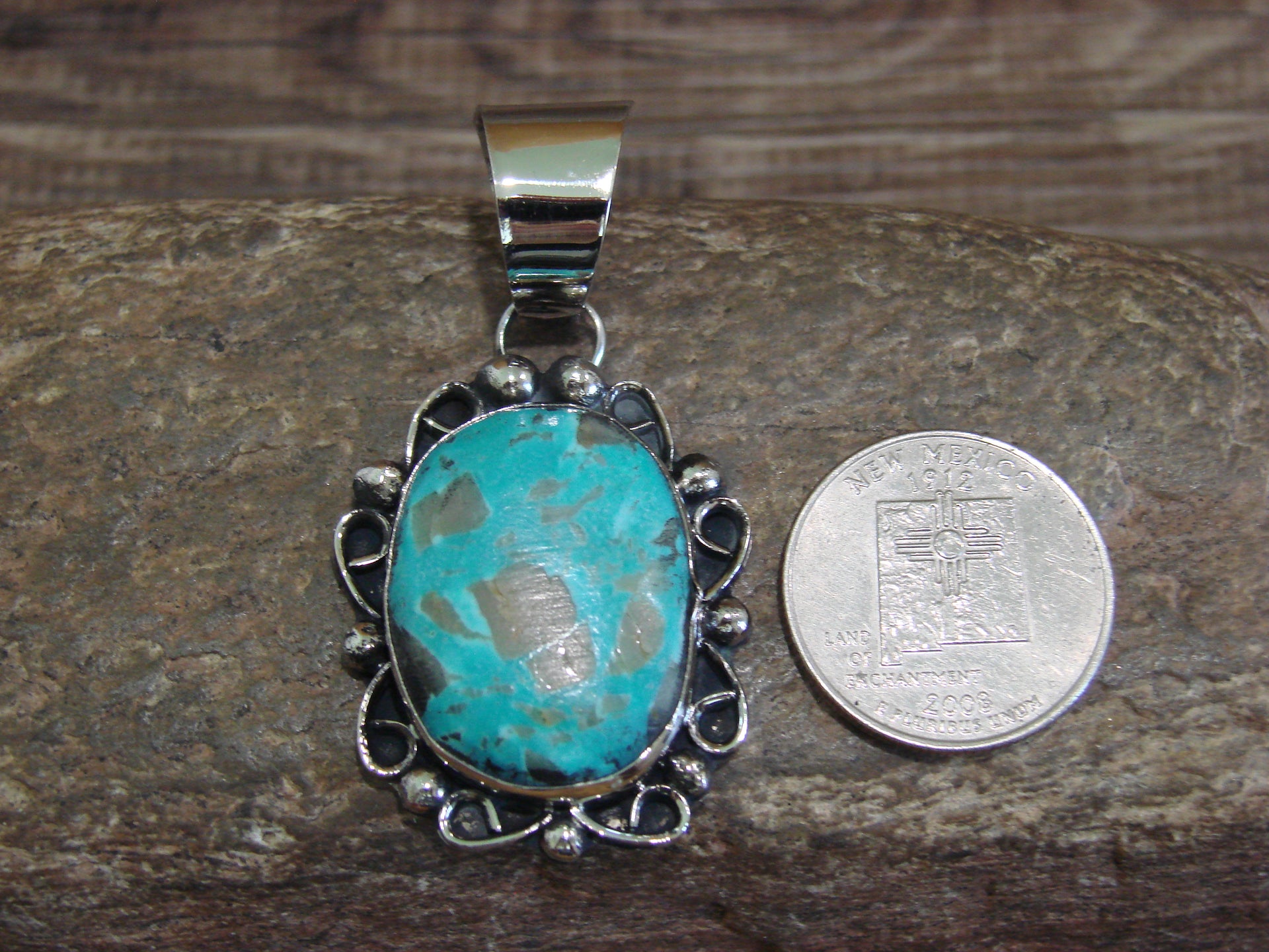Native American Navajo Nickel Silver & Turquoise Pendant - Cleveland