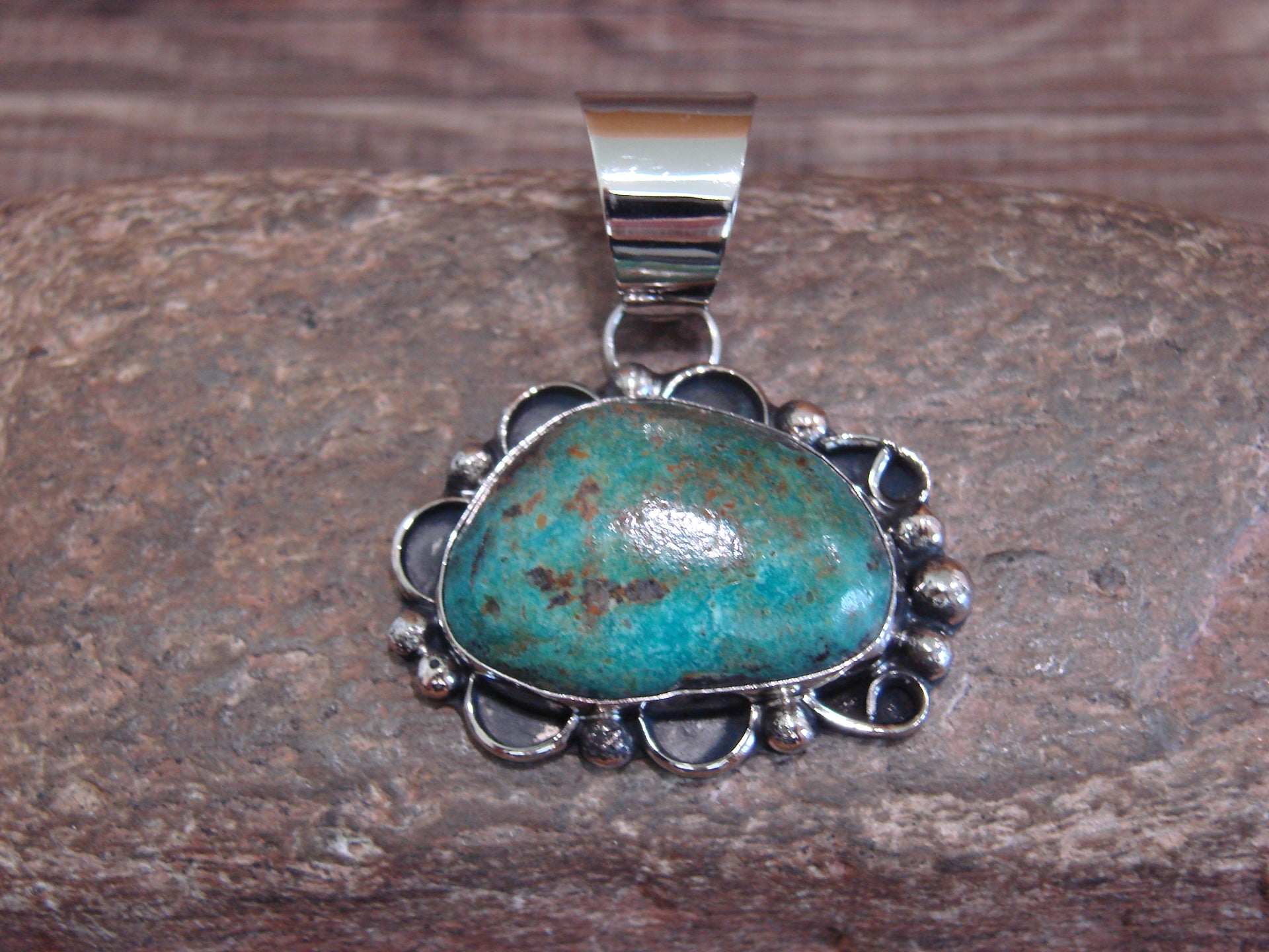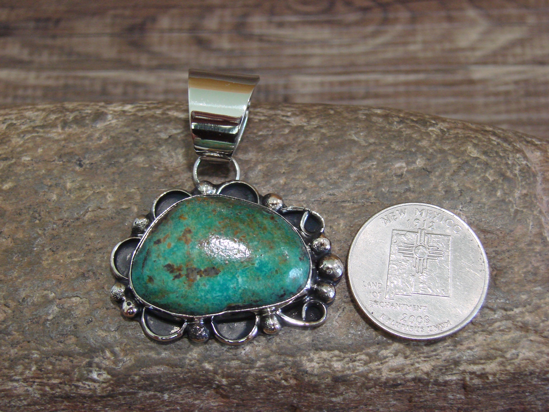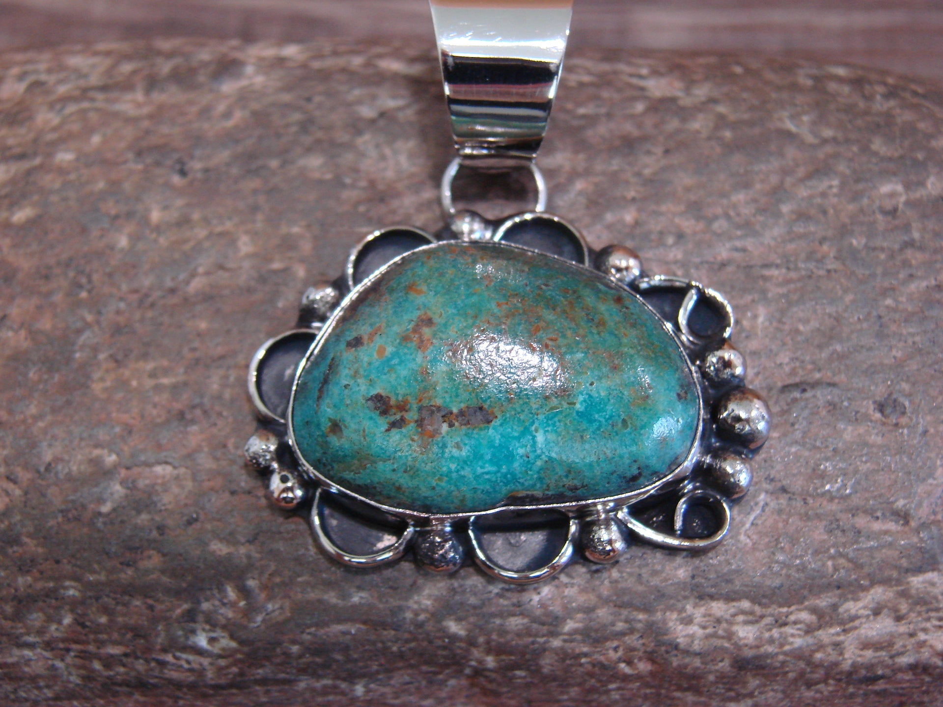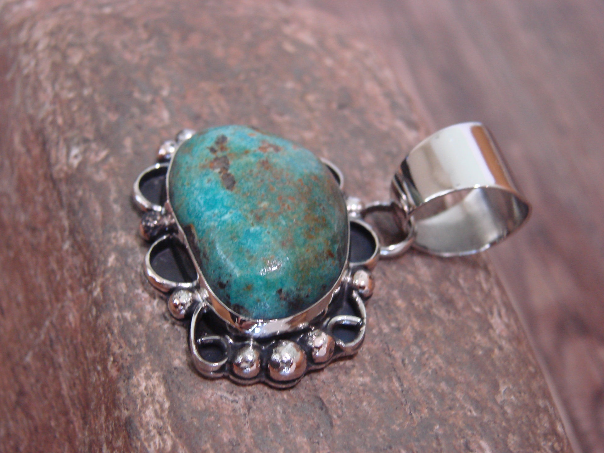 Native American Navajo Nickel Silver & Turquoise Pendant - Cleveland