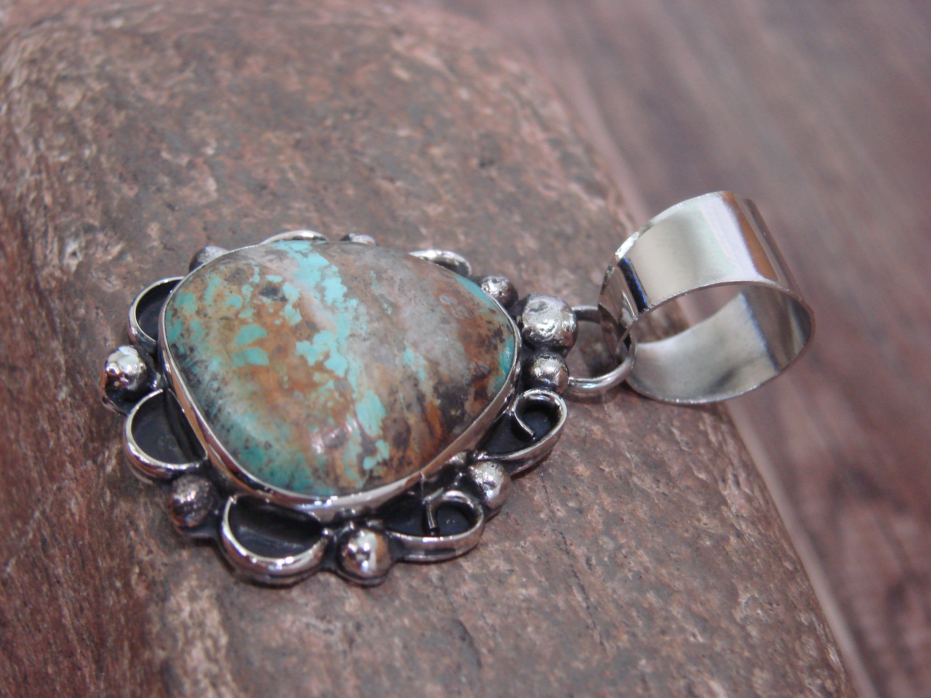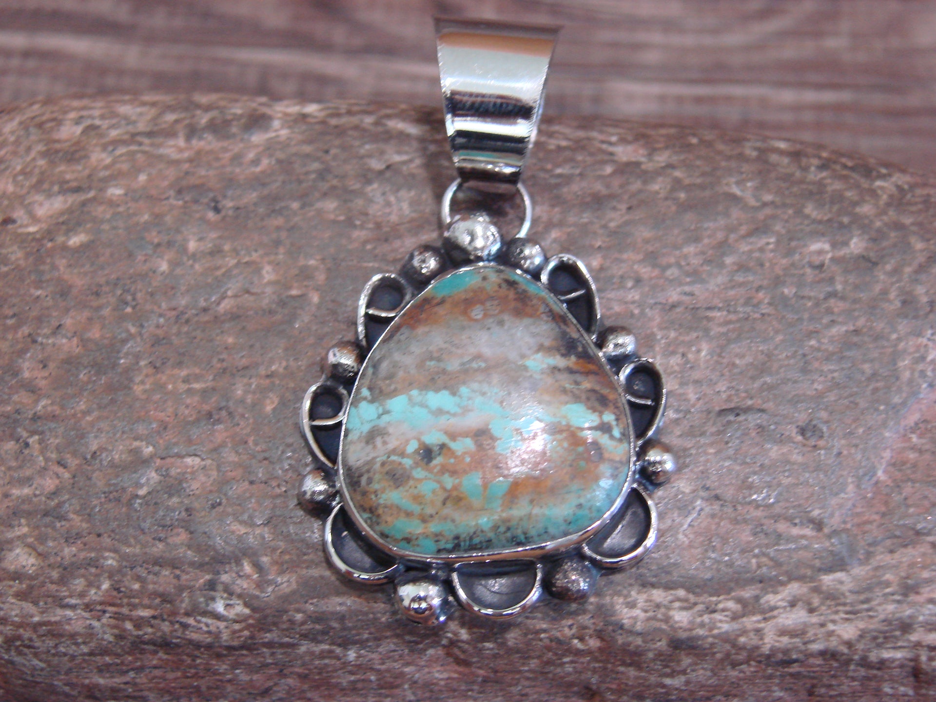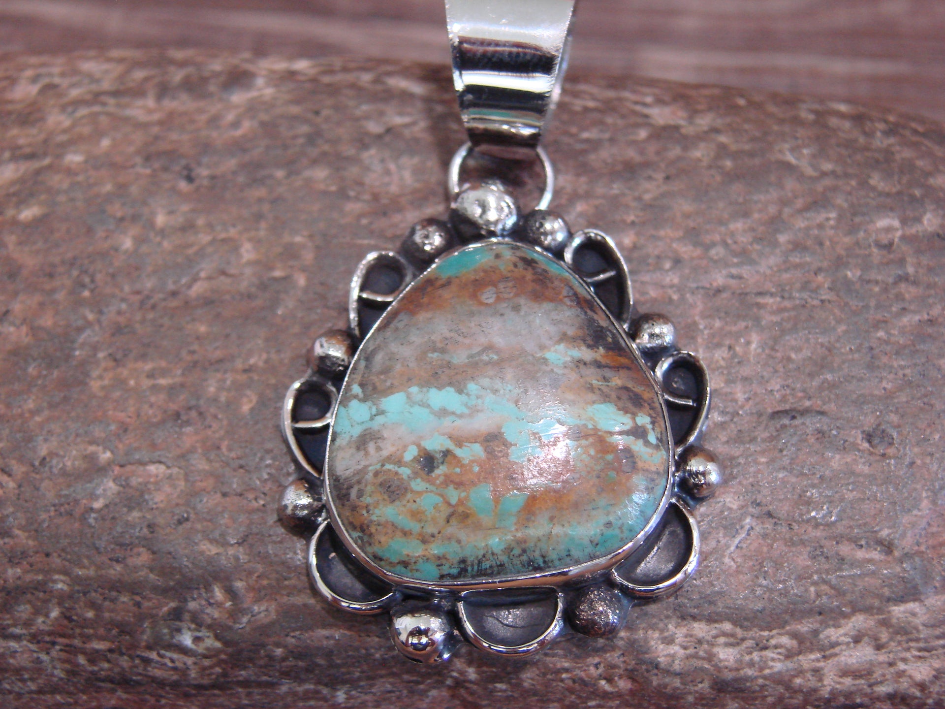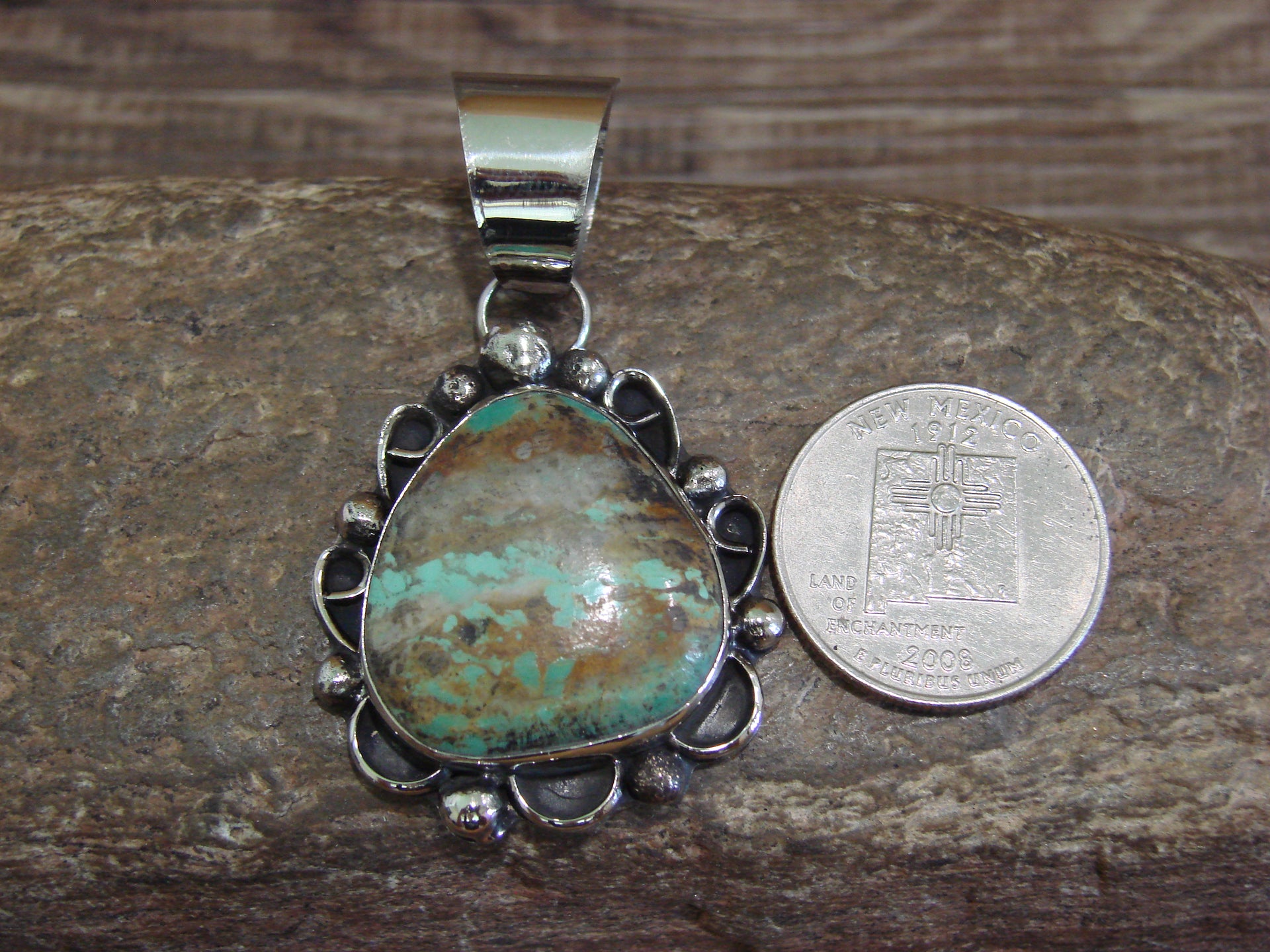 Native American Navajo Nickel Silver & Turquoise Pendant - Cleveland