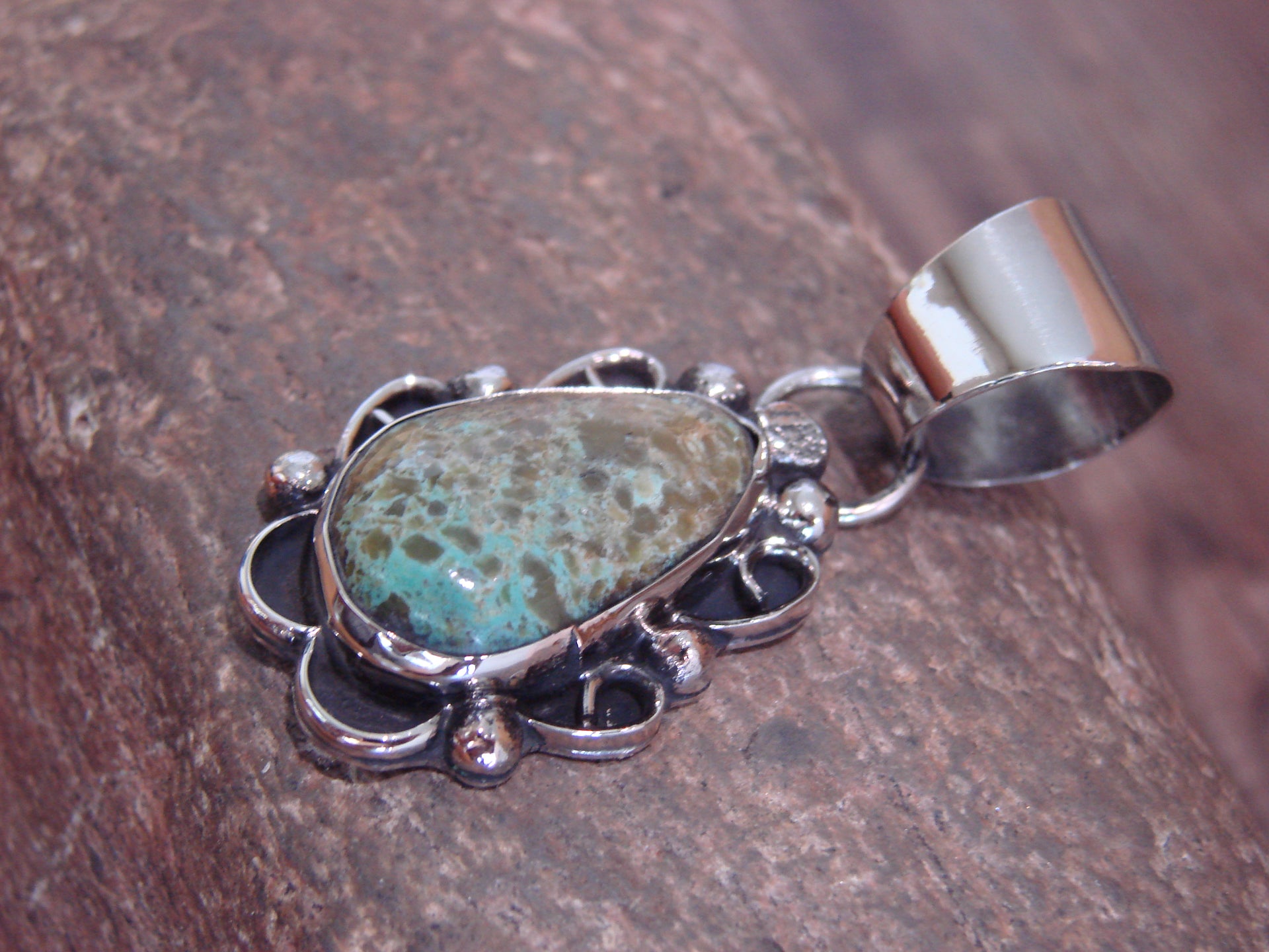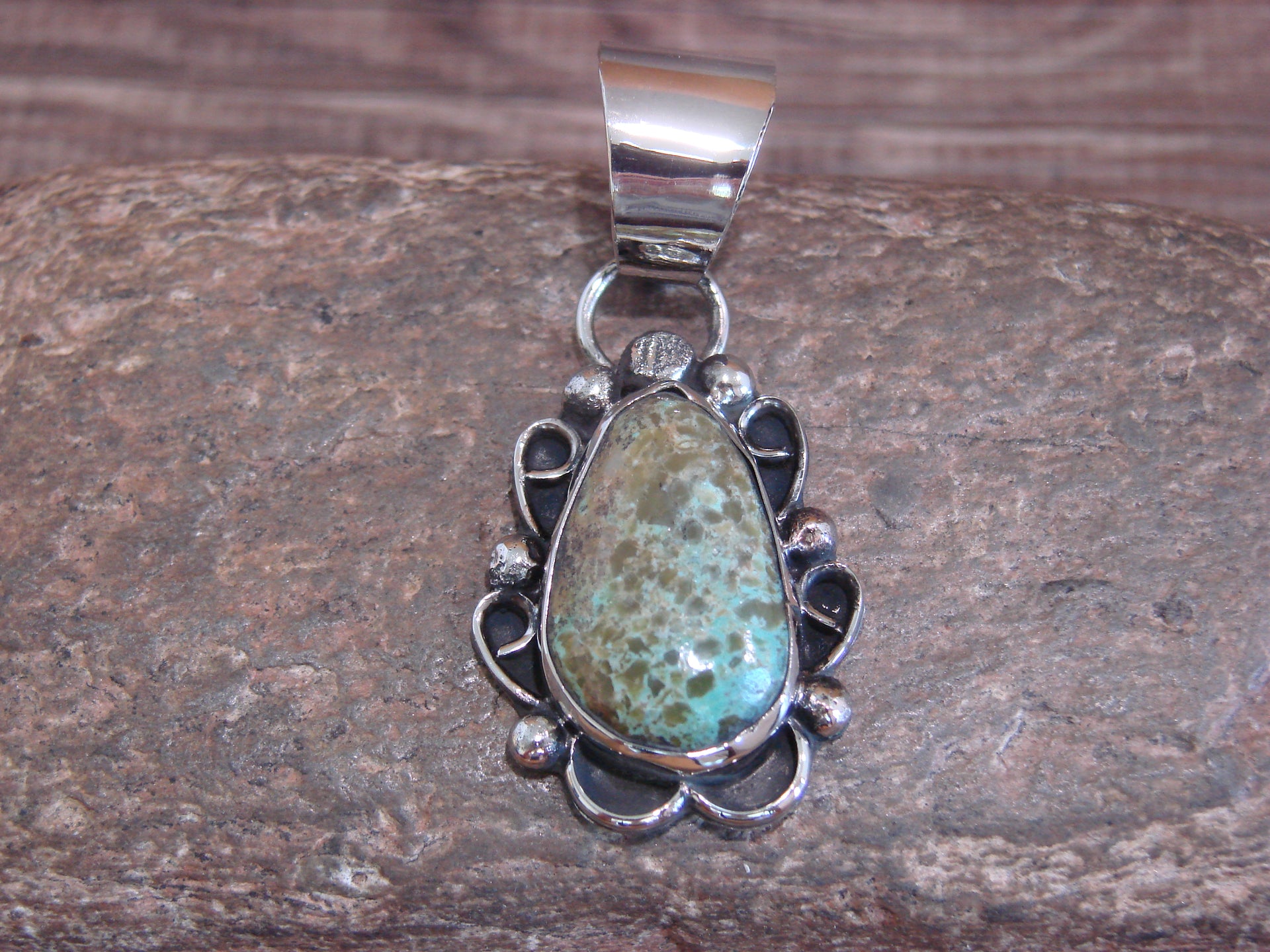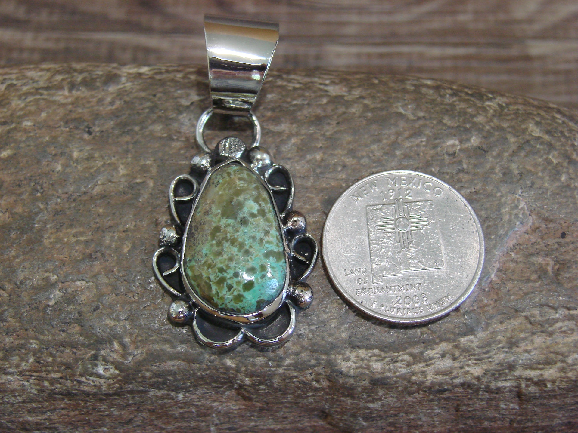 Native American Navajo Nickel Silver & Turquoise Pendant - Cleveland