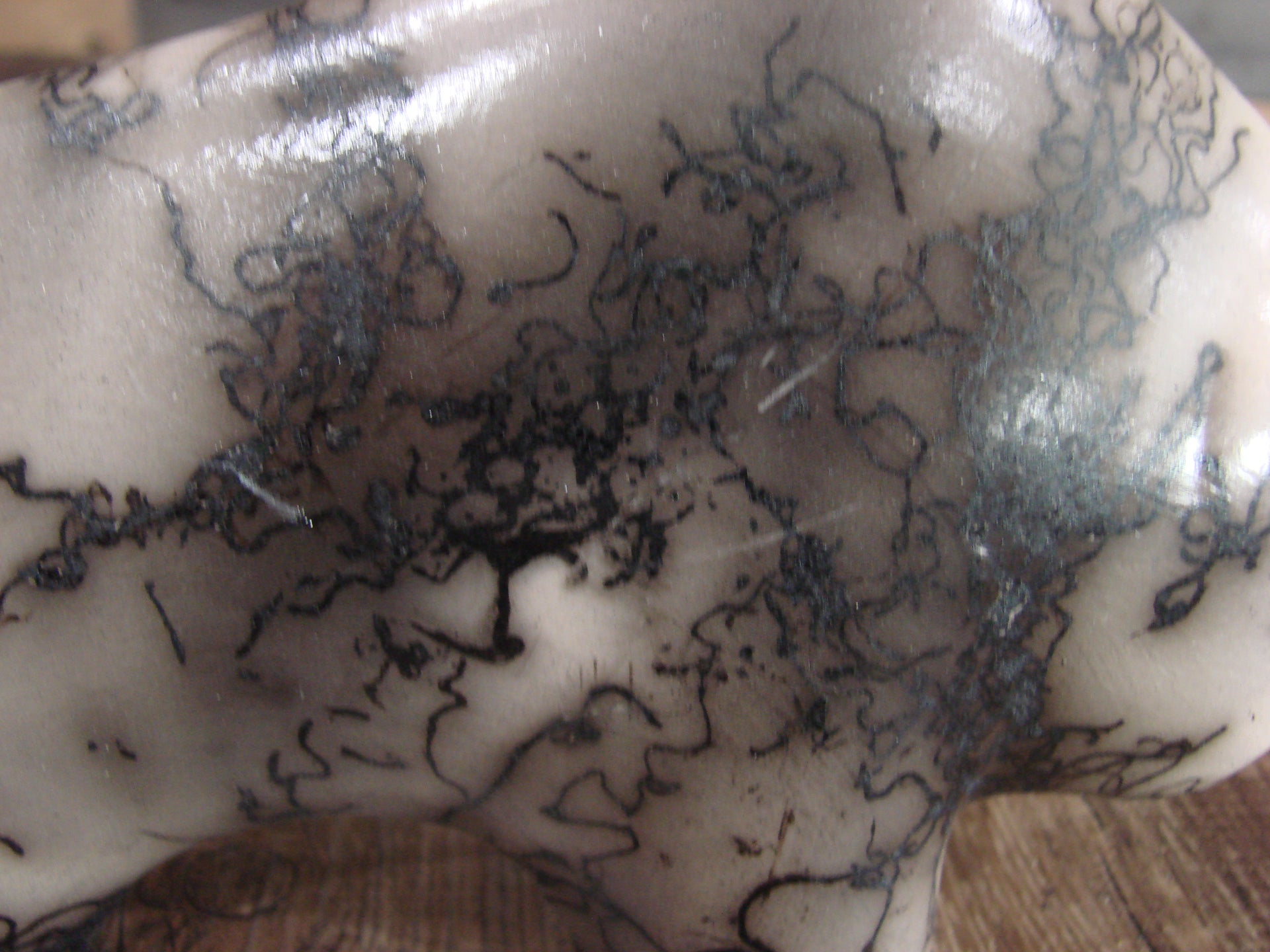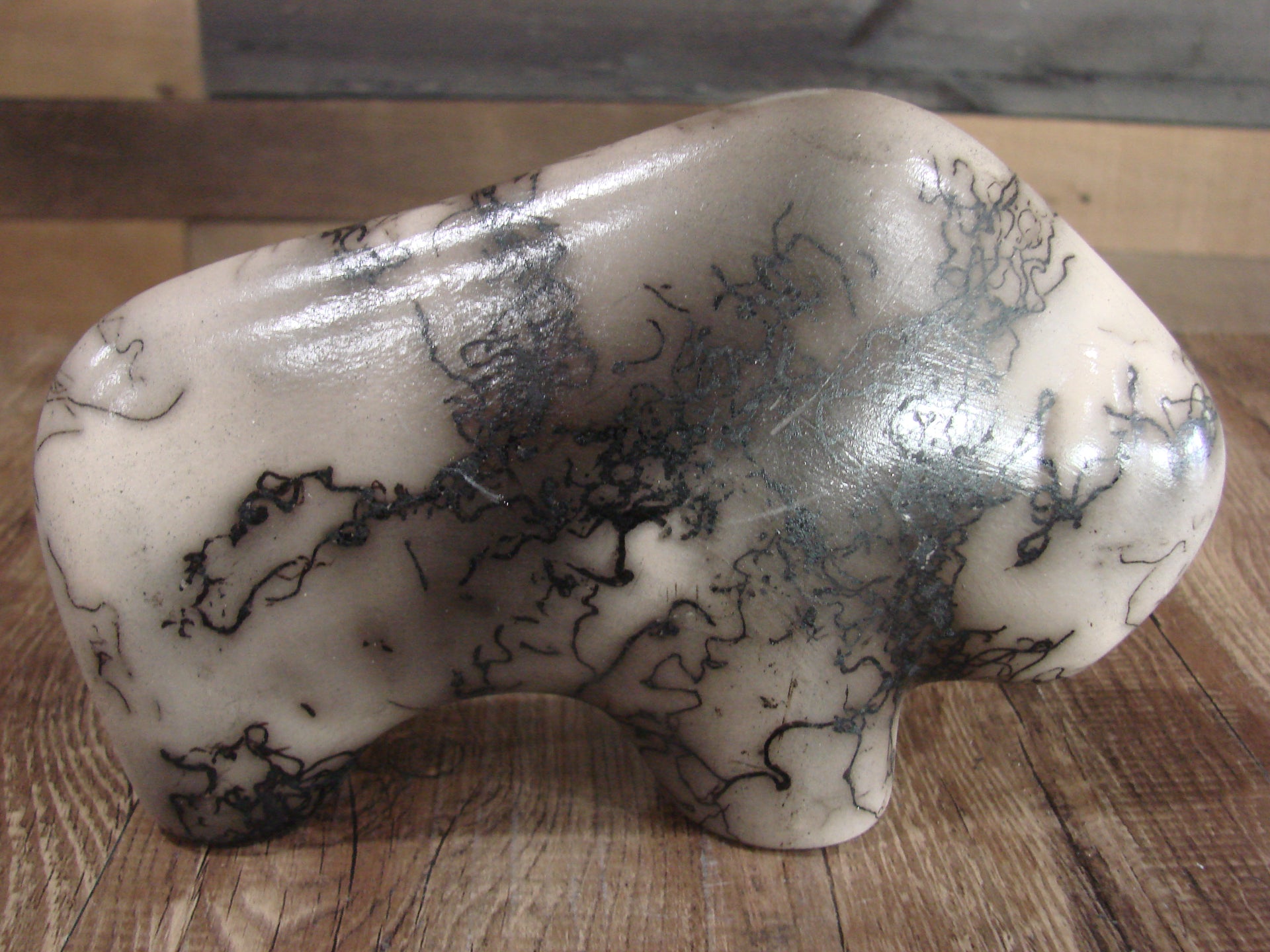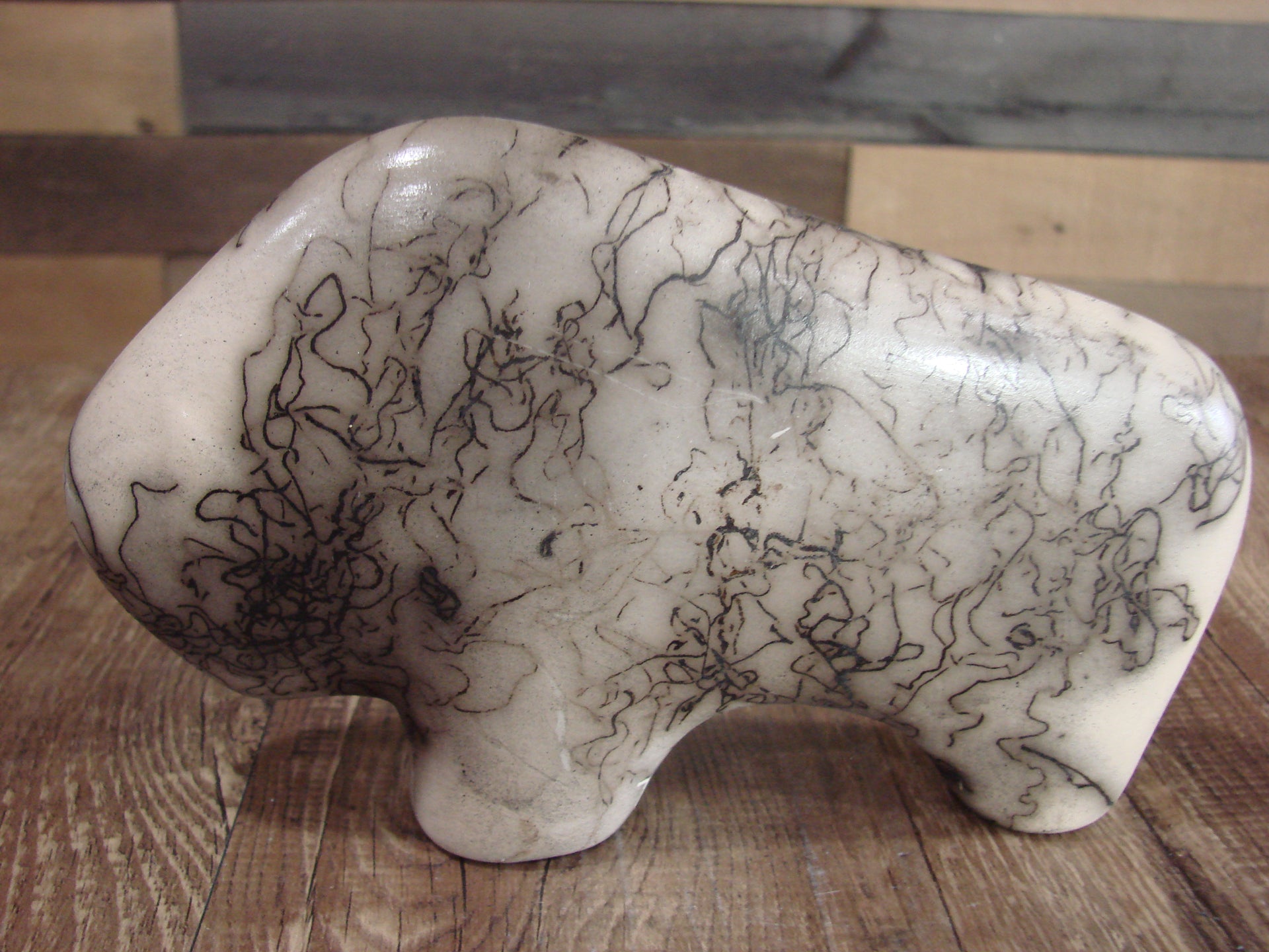 Genuine Native American Navajo Indian Horse Hair Buffalo Sculpture from Western New Mexico. This sculpture features beautiful horse hair throughout. The Horse hair is laid over this piece during firing. The result is a unique one of a kind look! Hand Made by Navajo artist Vail. Signed on the bottom. Free Shipping included!