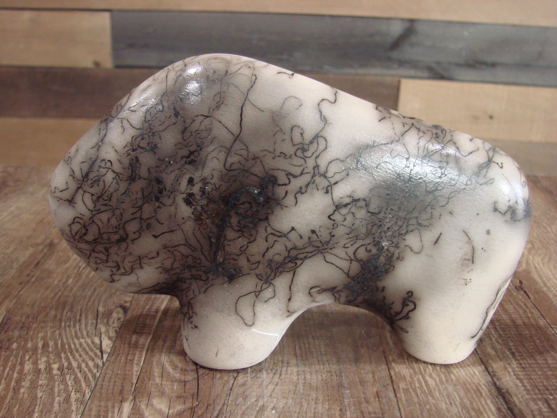 Genuine Native American Navajo Indian Horse Hair Buffalo Sculpture from Western New Mexico. This sculpture features beautiful horse hair throughout. The Horse hair is laid over this piece during firing. The result is a unique one of a kind look! Hand Made by Navajo artist Vail. Signed on the bottom. Free Shipping included!