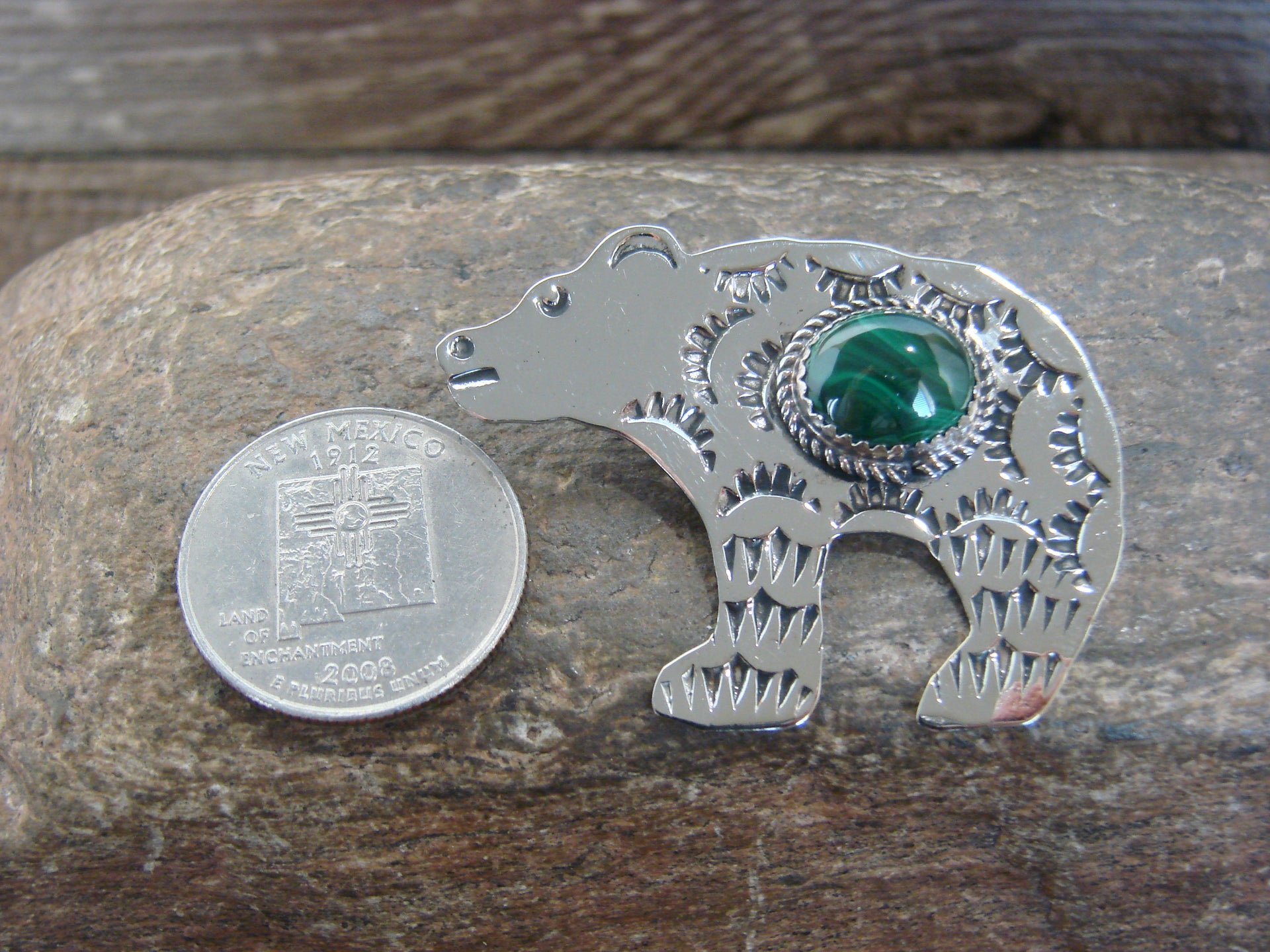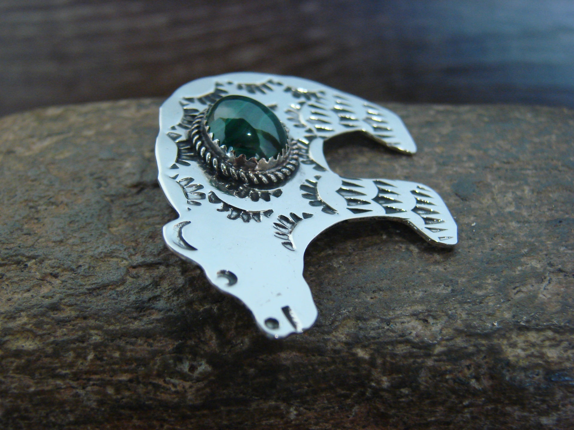 Native American Nickel Silver & Gaspeite Bear Pendant - Cleveland
