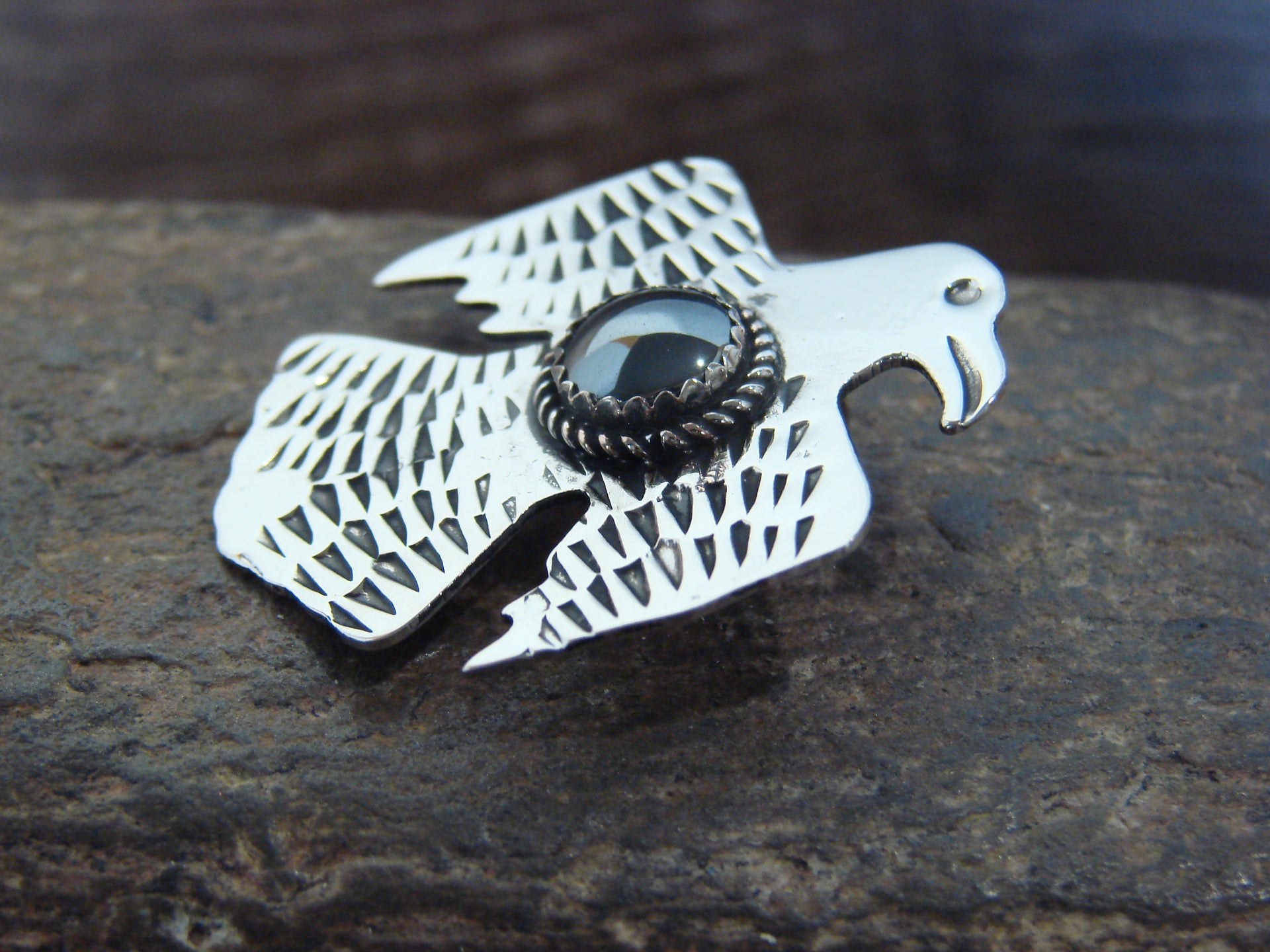 Native American Nickel Silver & Hematite Thunderbird Pendant - Cleveland