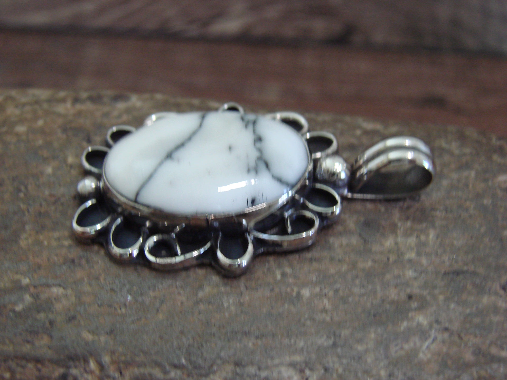 Native American Nickel Silver & Howlite Pendant - Cleveland