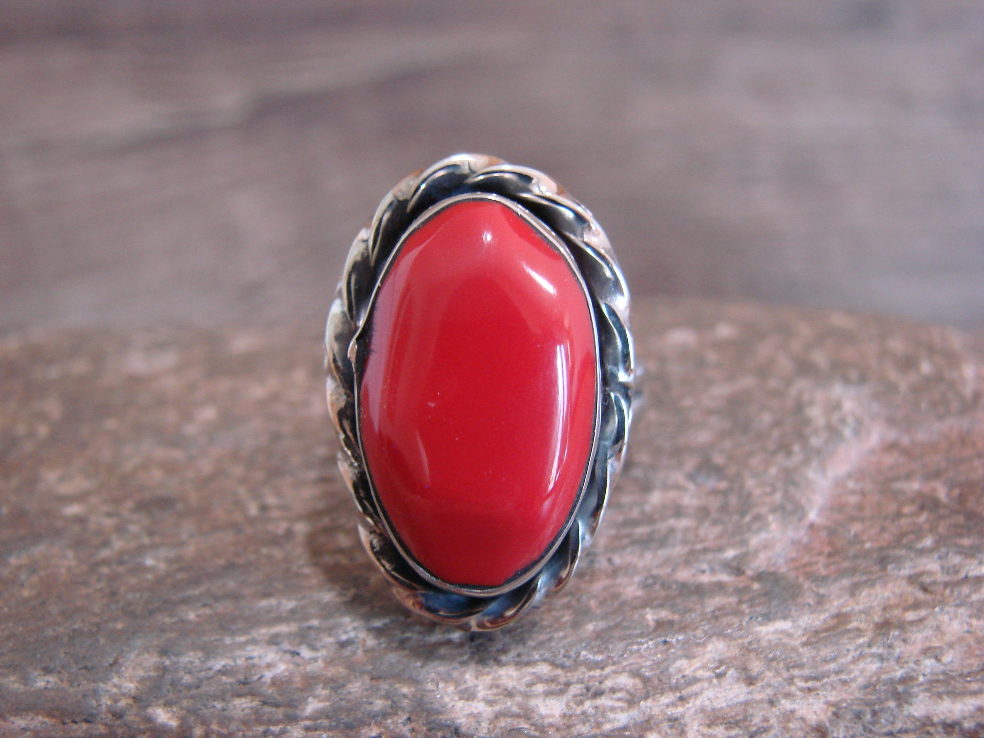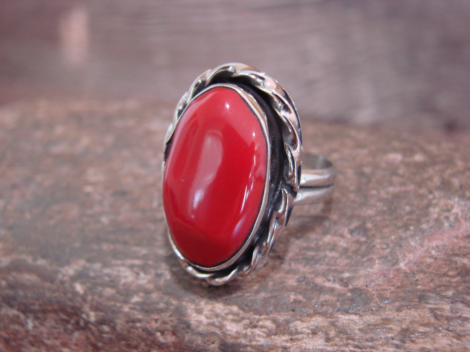 Native American Nickel Silver & Red Howlite Ring Size 7 - Cleveland