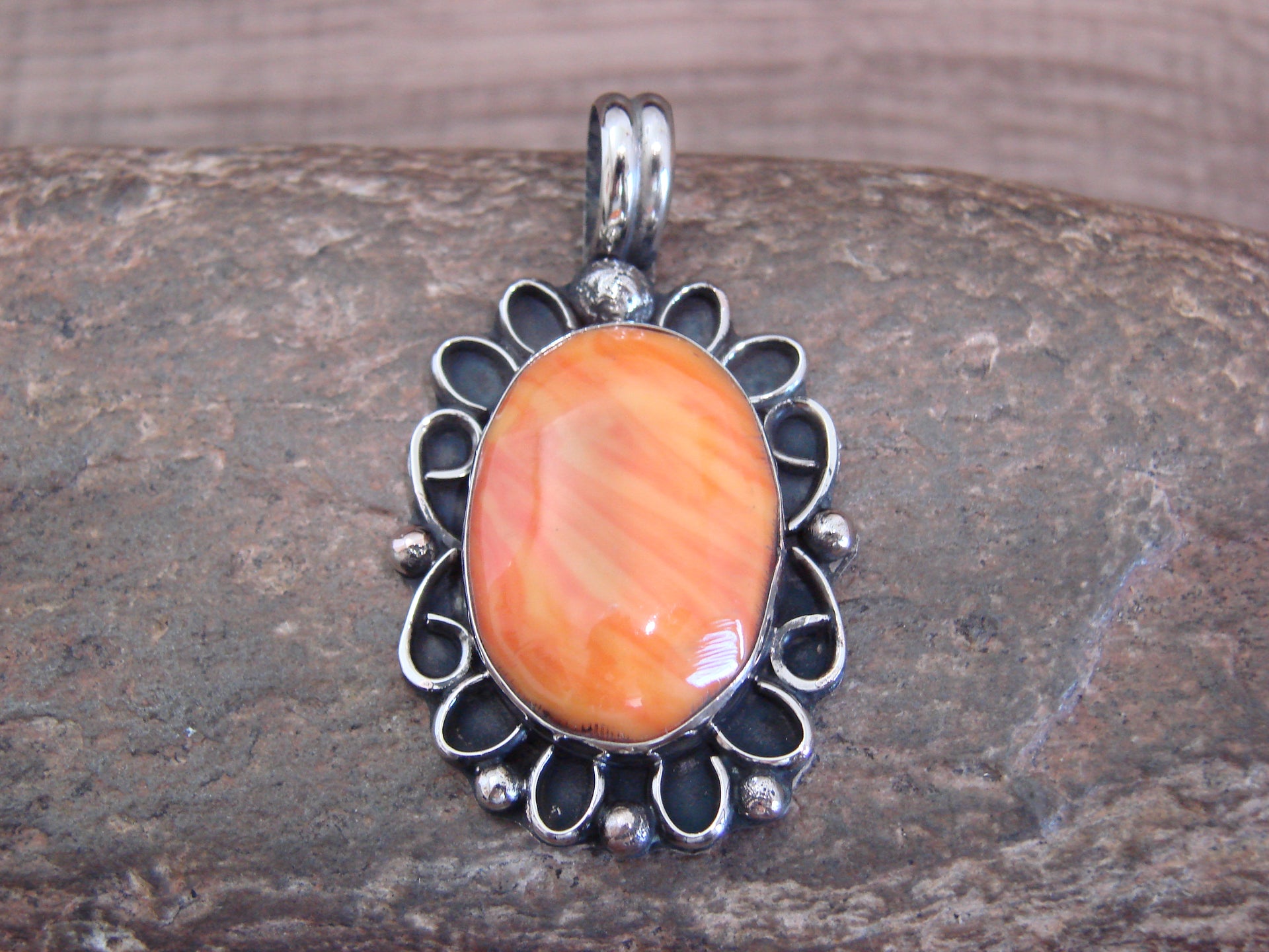 Native American Nickel Silver & Spiny Oyster Pendant - Cleveland