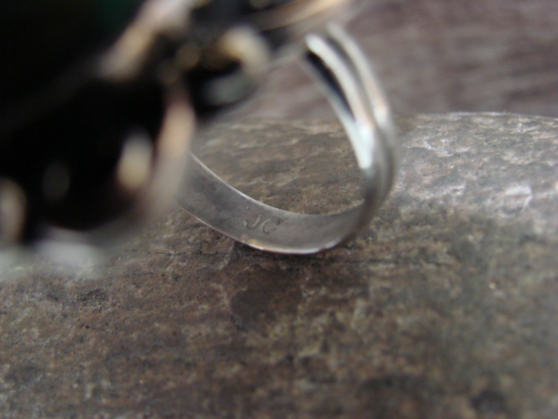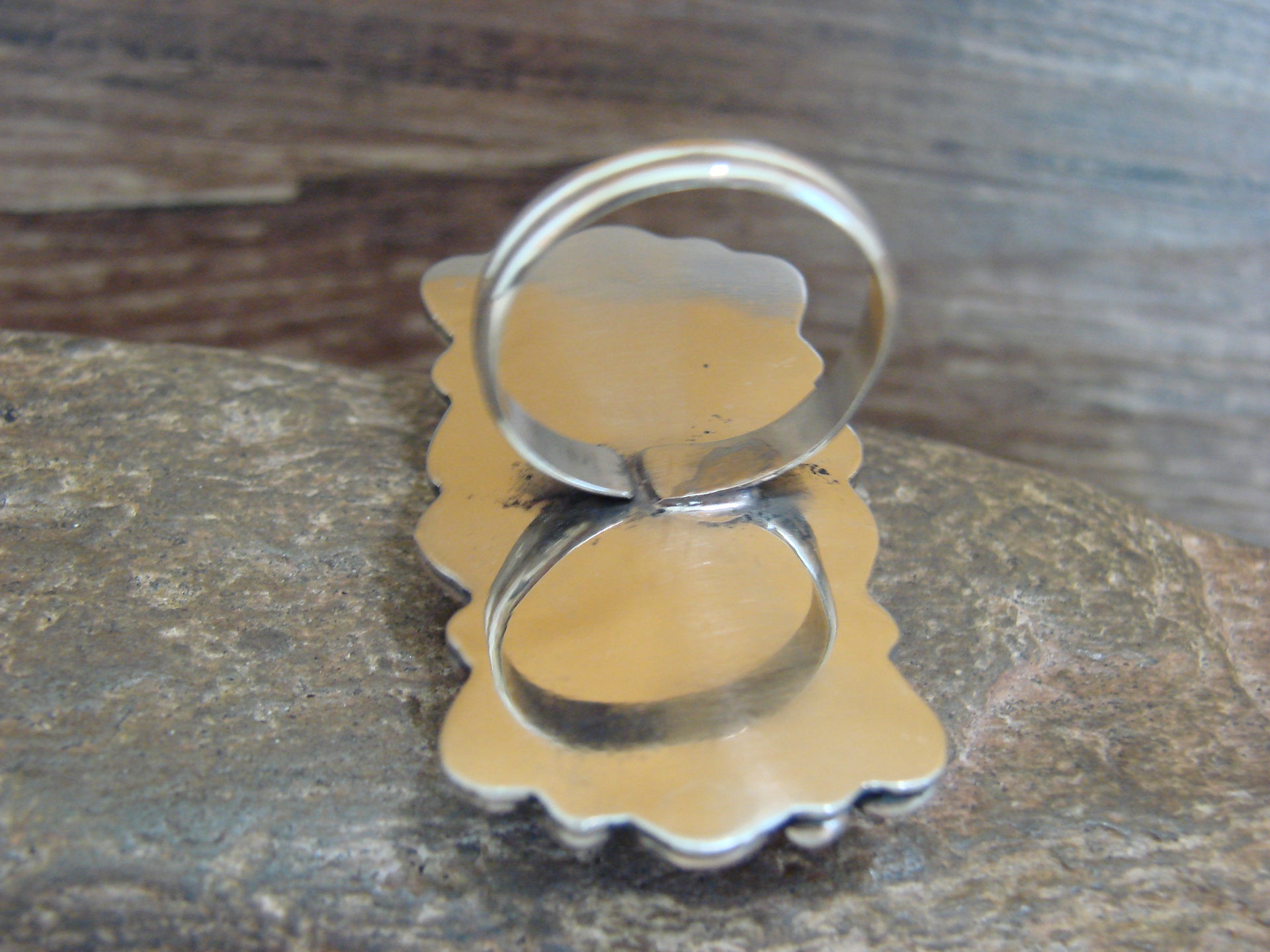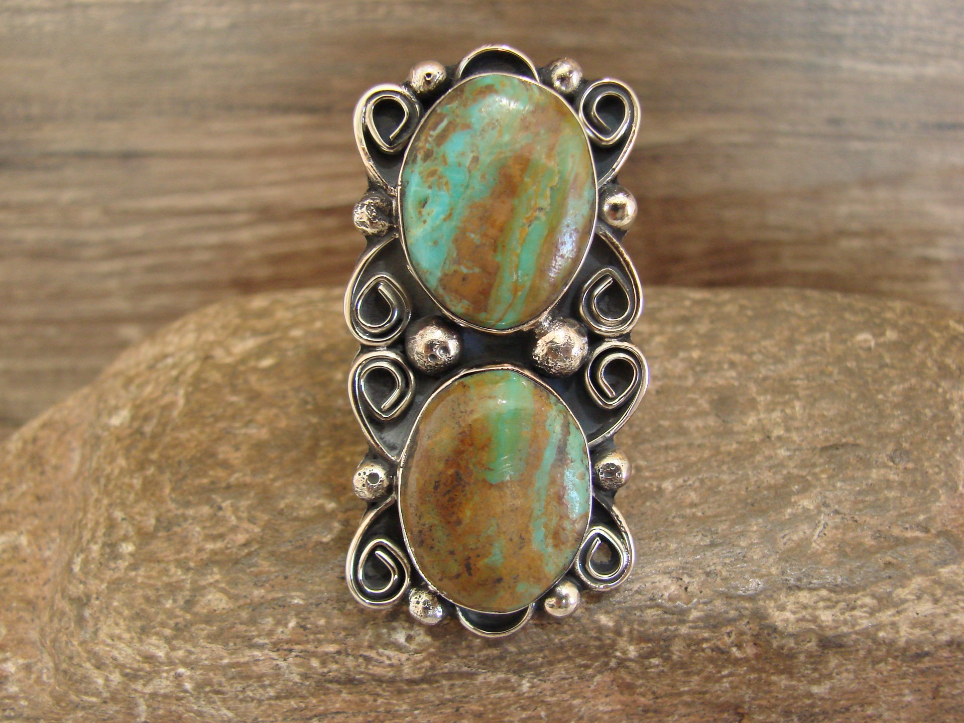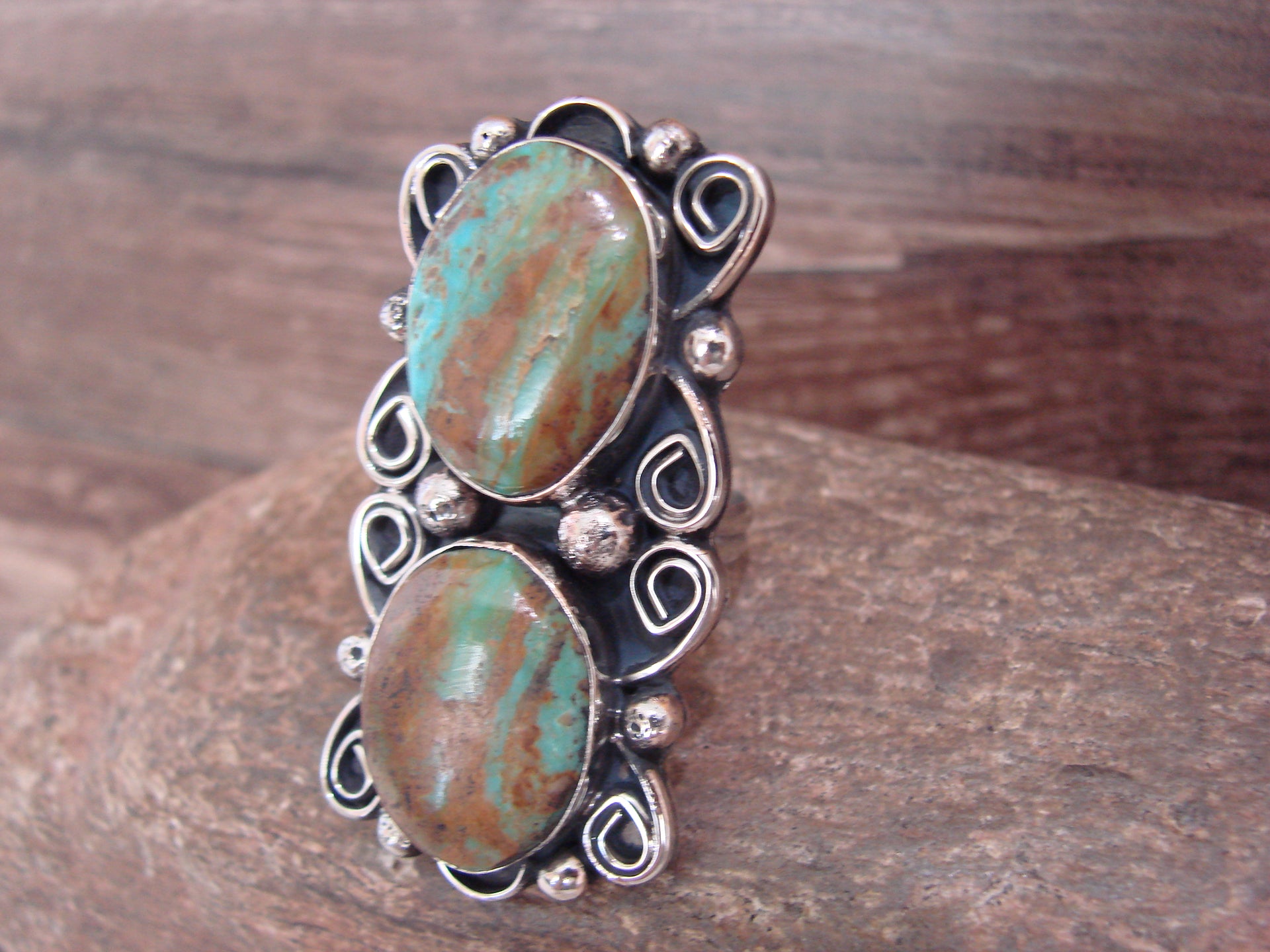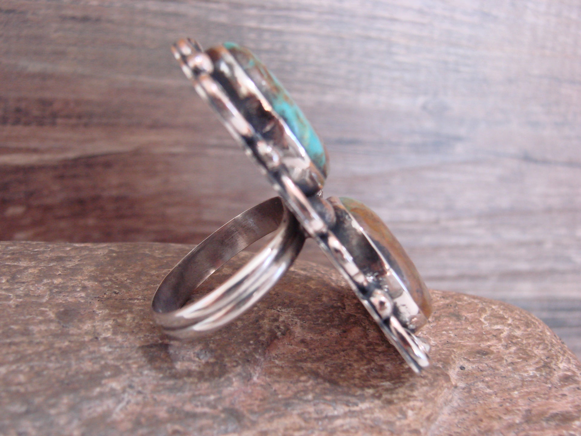 Native American Nickel Silver & Turquoise Adjustable Ring by Cleveland - Size 8 - 10