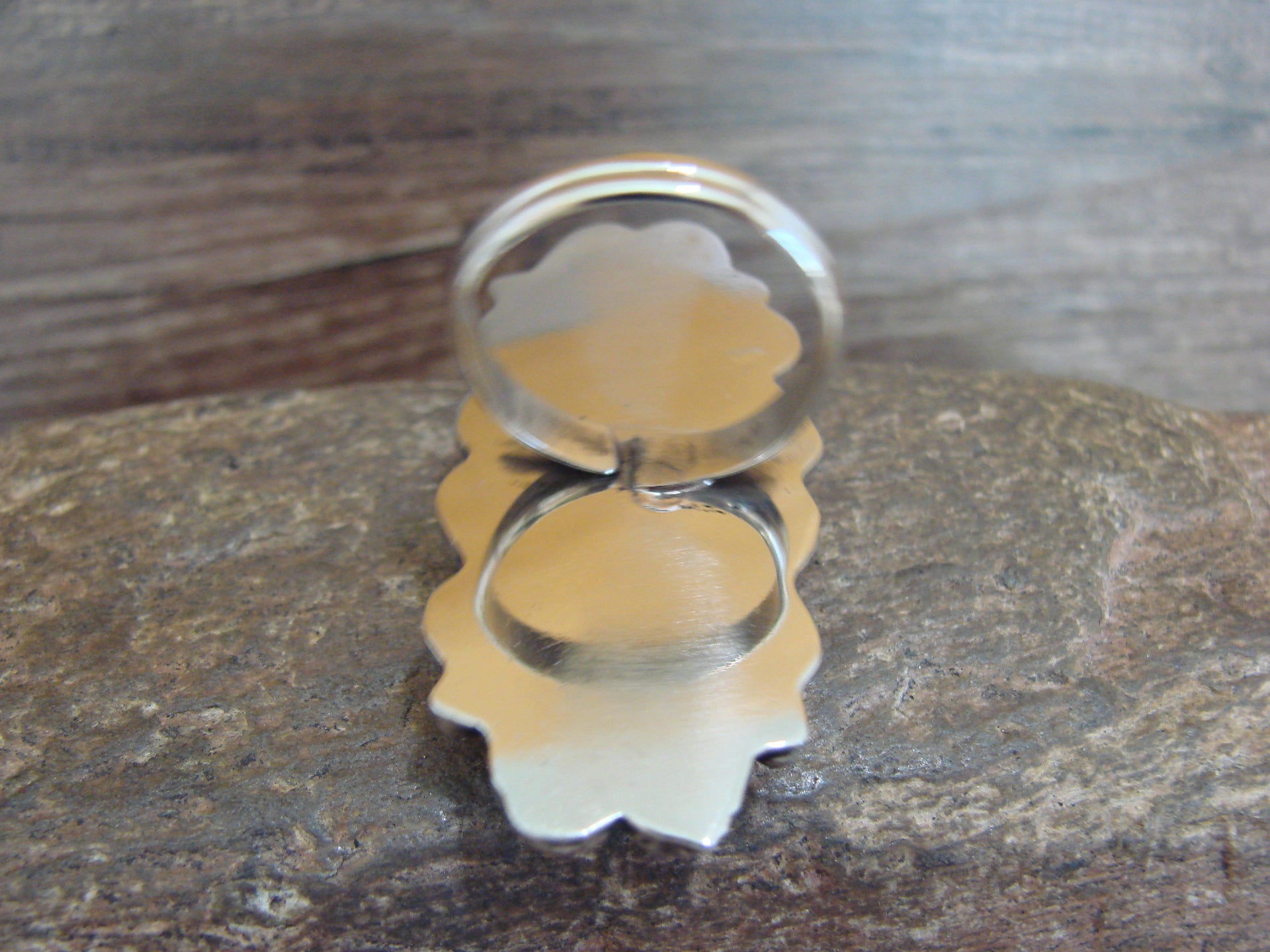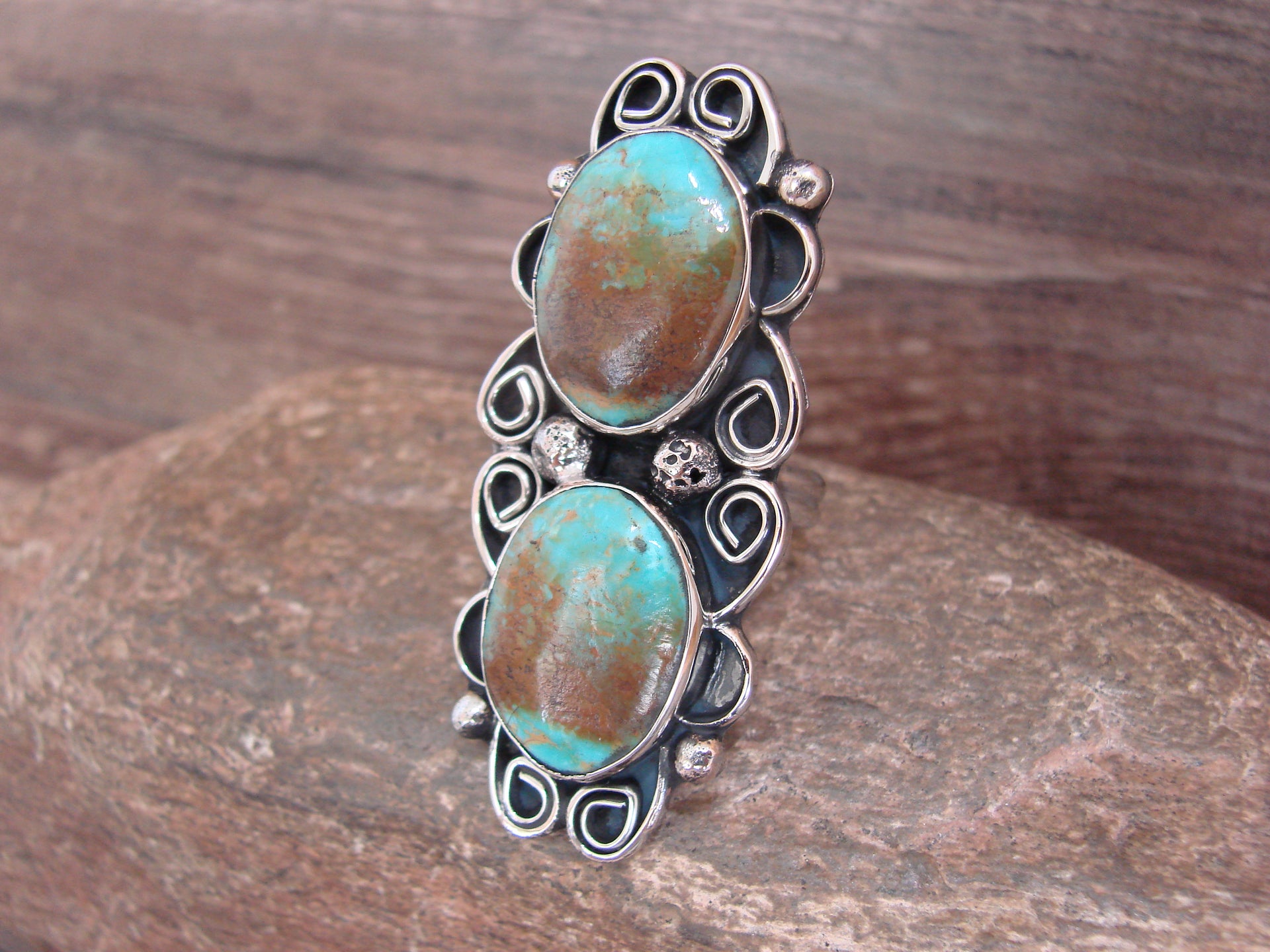 Native American Nickel Silver & Turquoise Adjustable Ring by Cleveland - Size 8 - 10