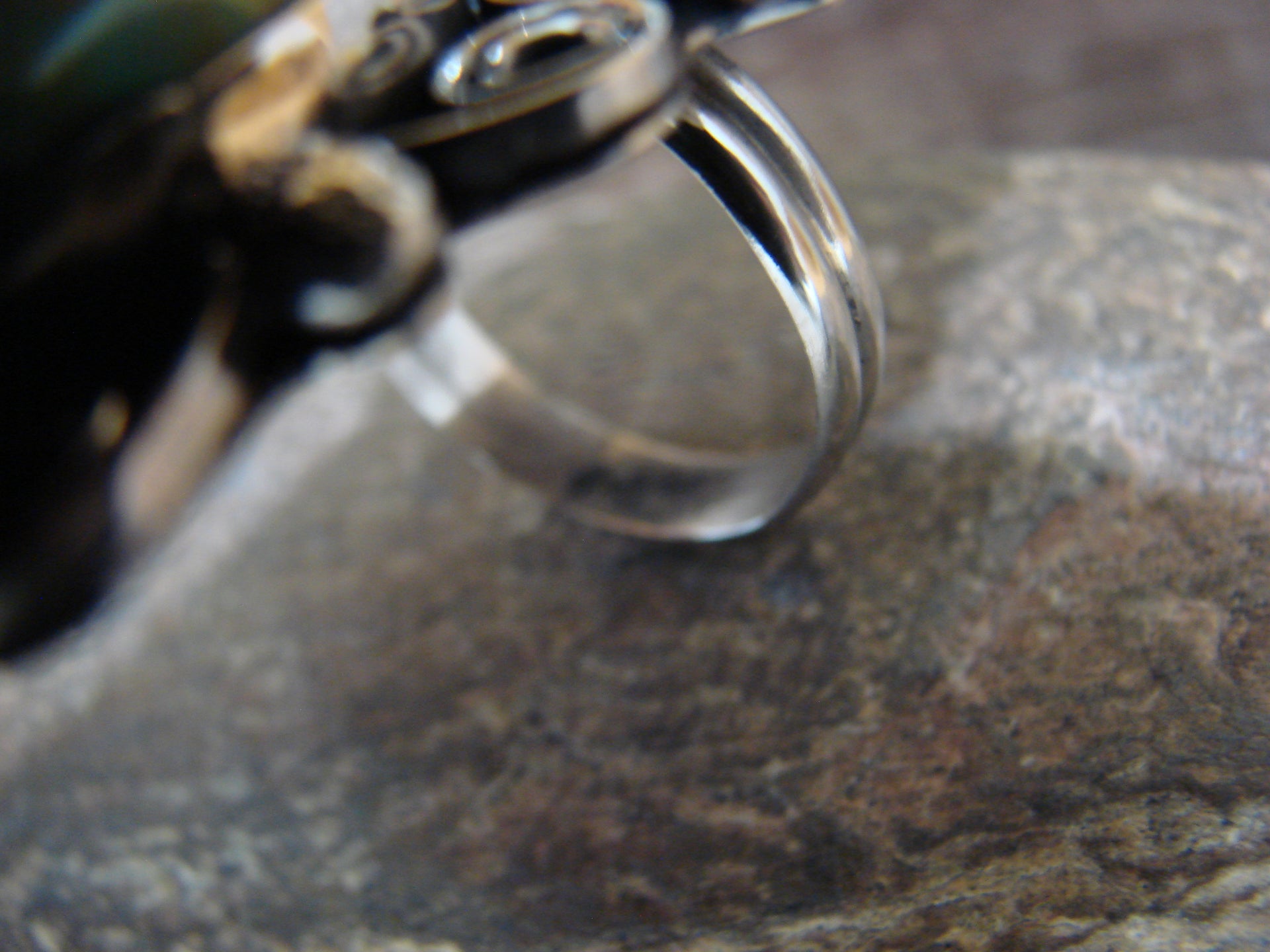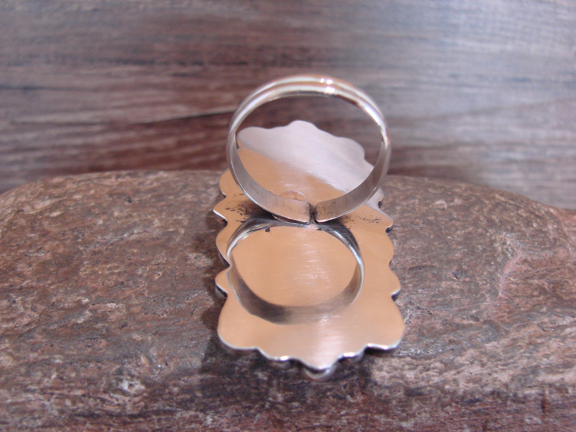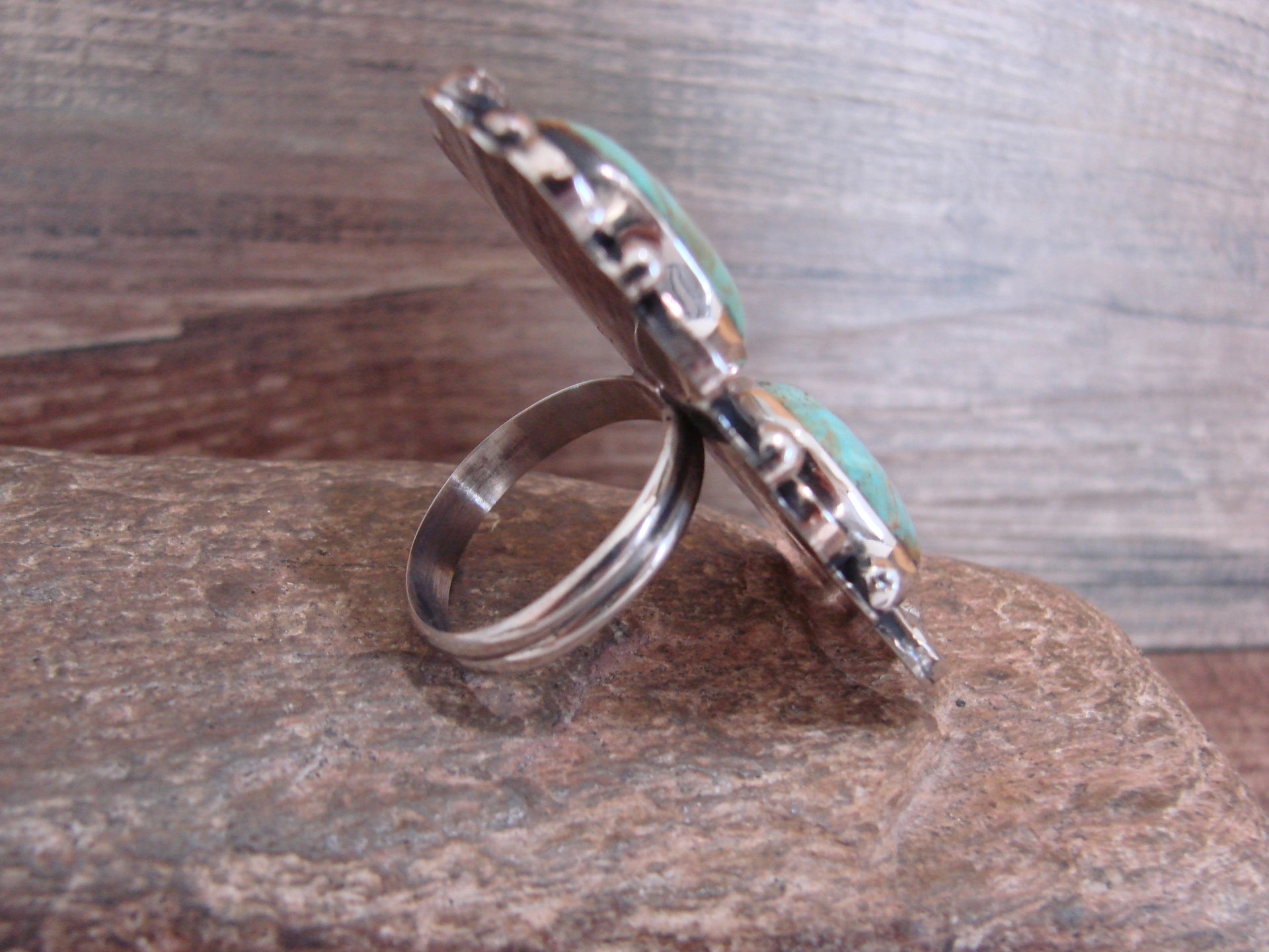 Native American Nickel Silver & Turquoise Adjustable Ring by Cleveland - Size 8 - 10