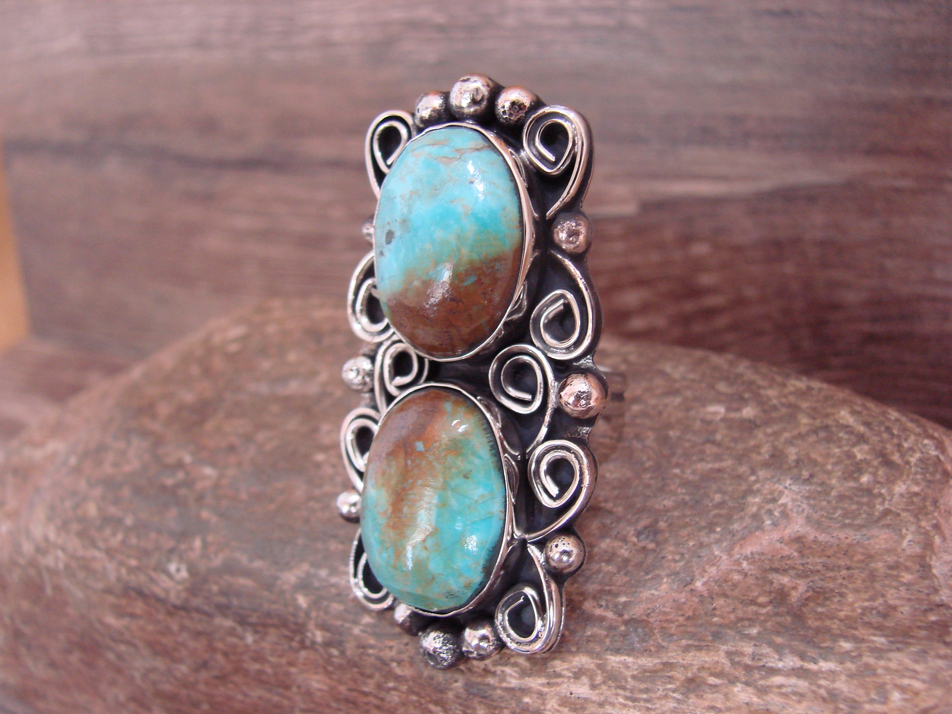 Native American Nickel Silver & Turquoise Adjustable Ring by Cleveland - Size 8 - 10