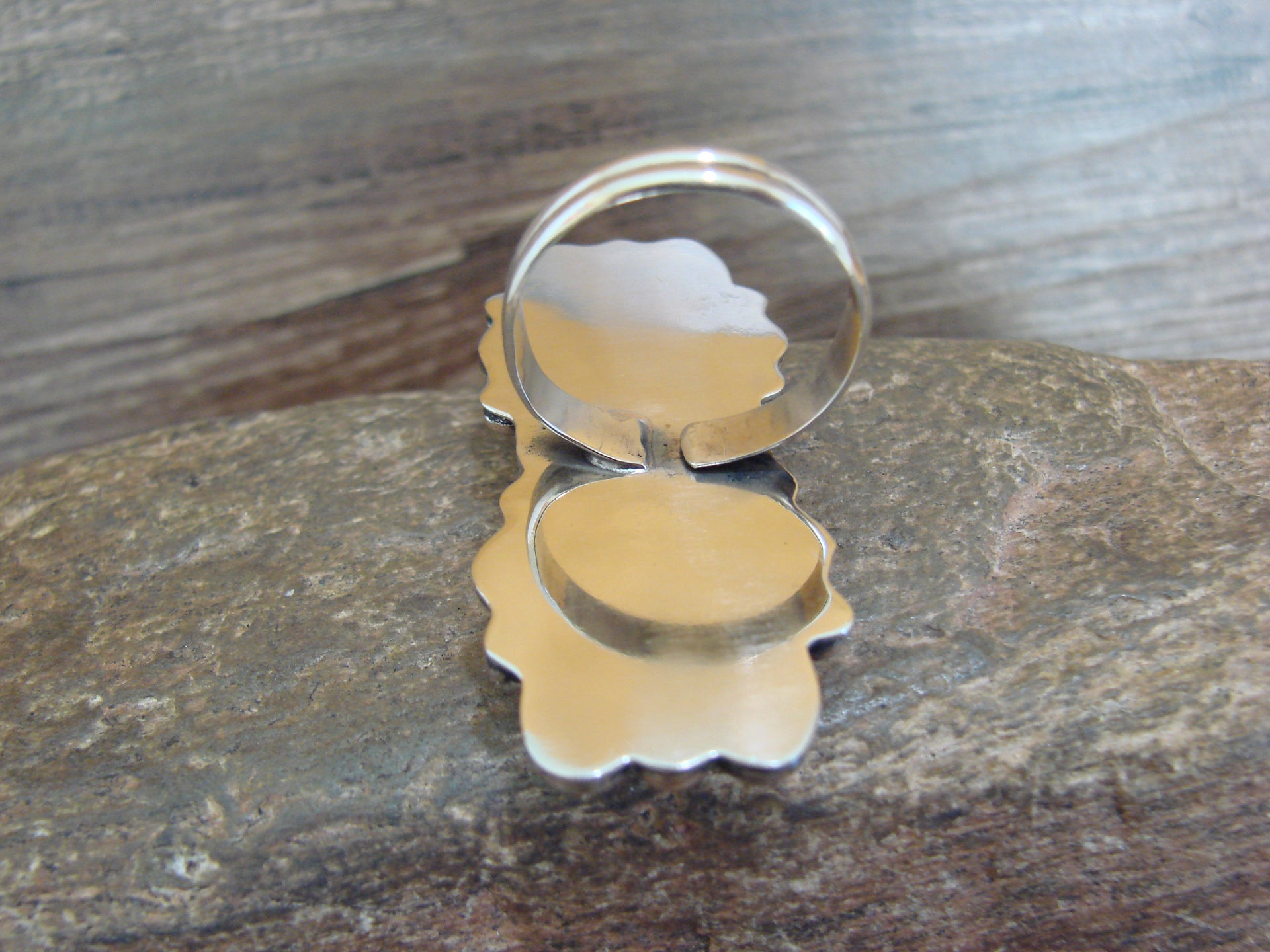 Native American Nickel Silver & Turquoise Adjustable Ring by Cleveland - Size 8 - 10
