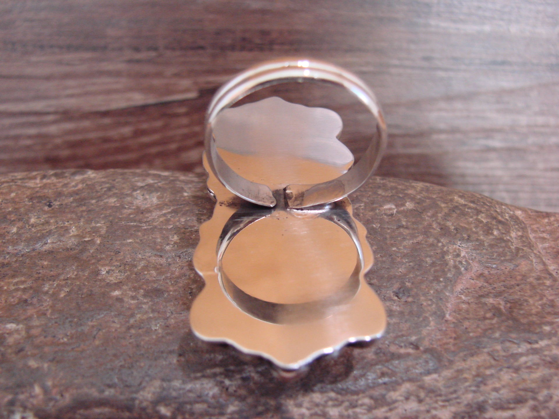 Native American Nickel Silver & Turquoise Adjustable Ring by Cleveland - Size 8 - 10
