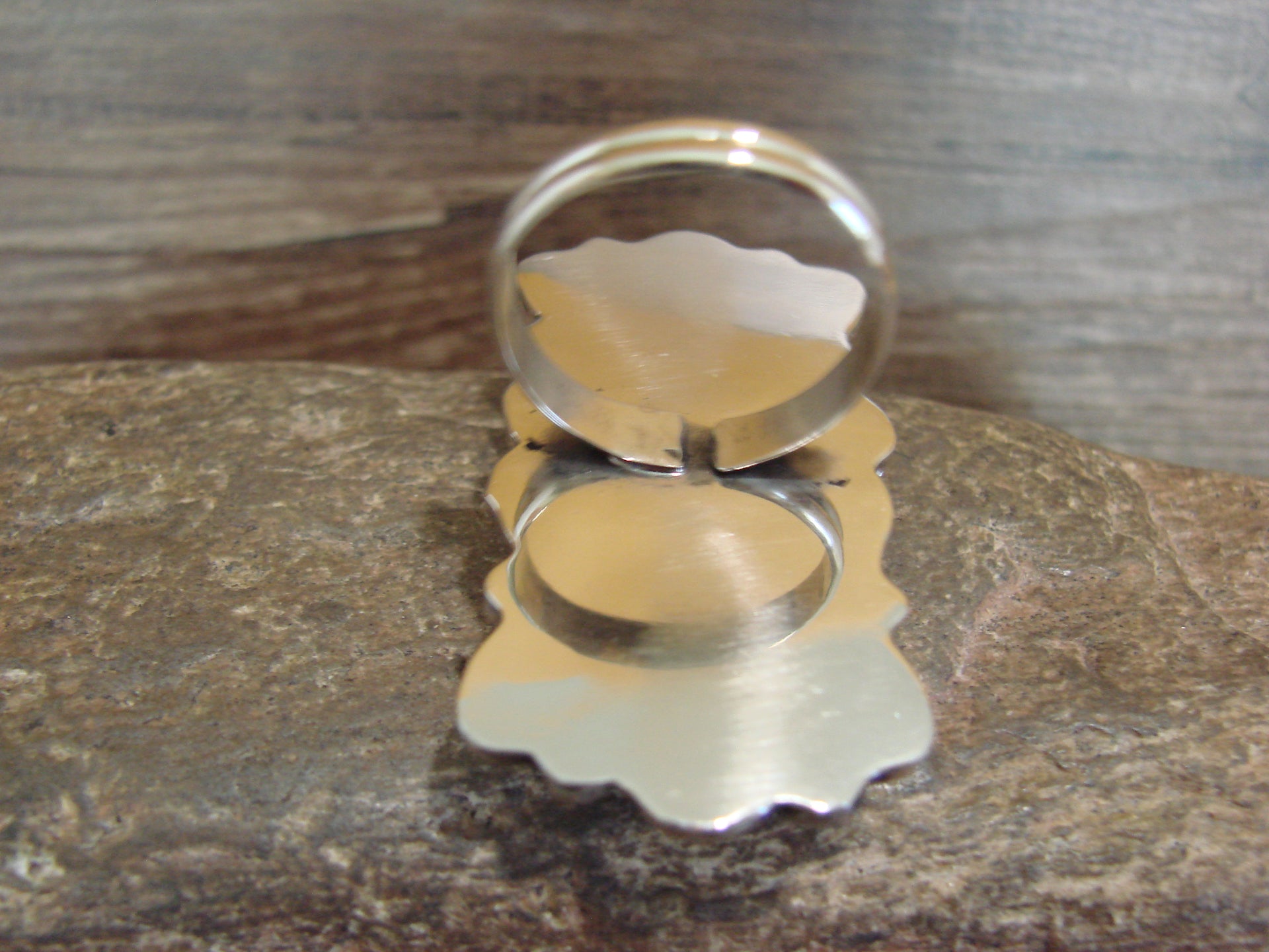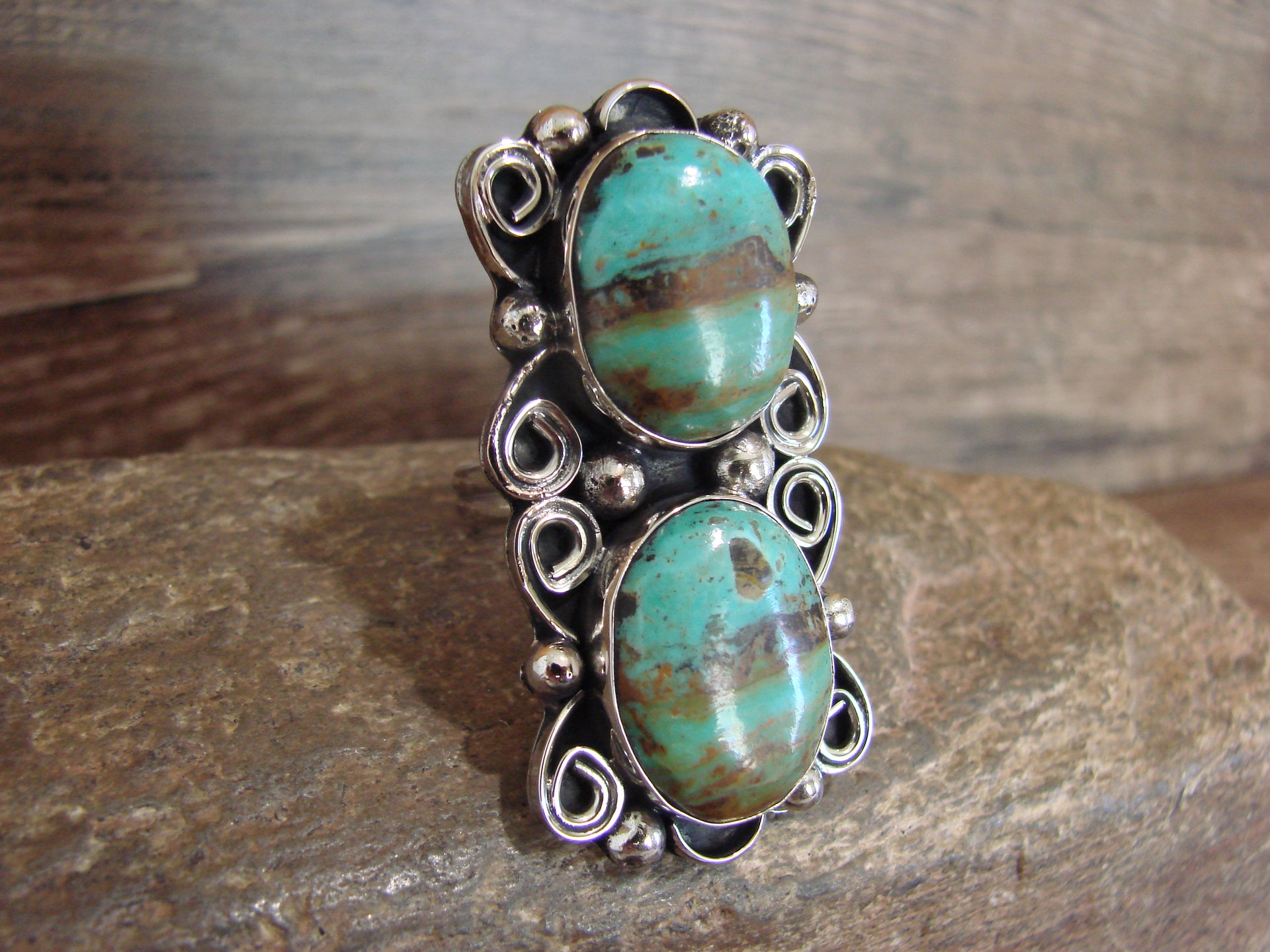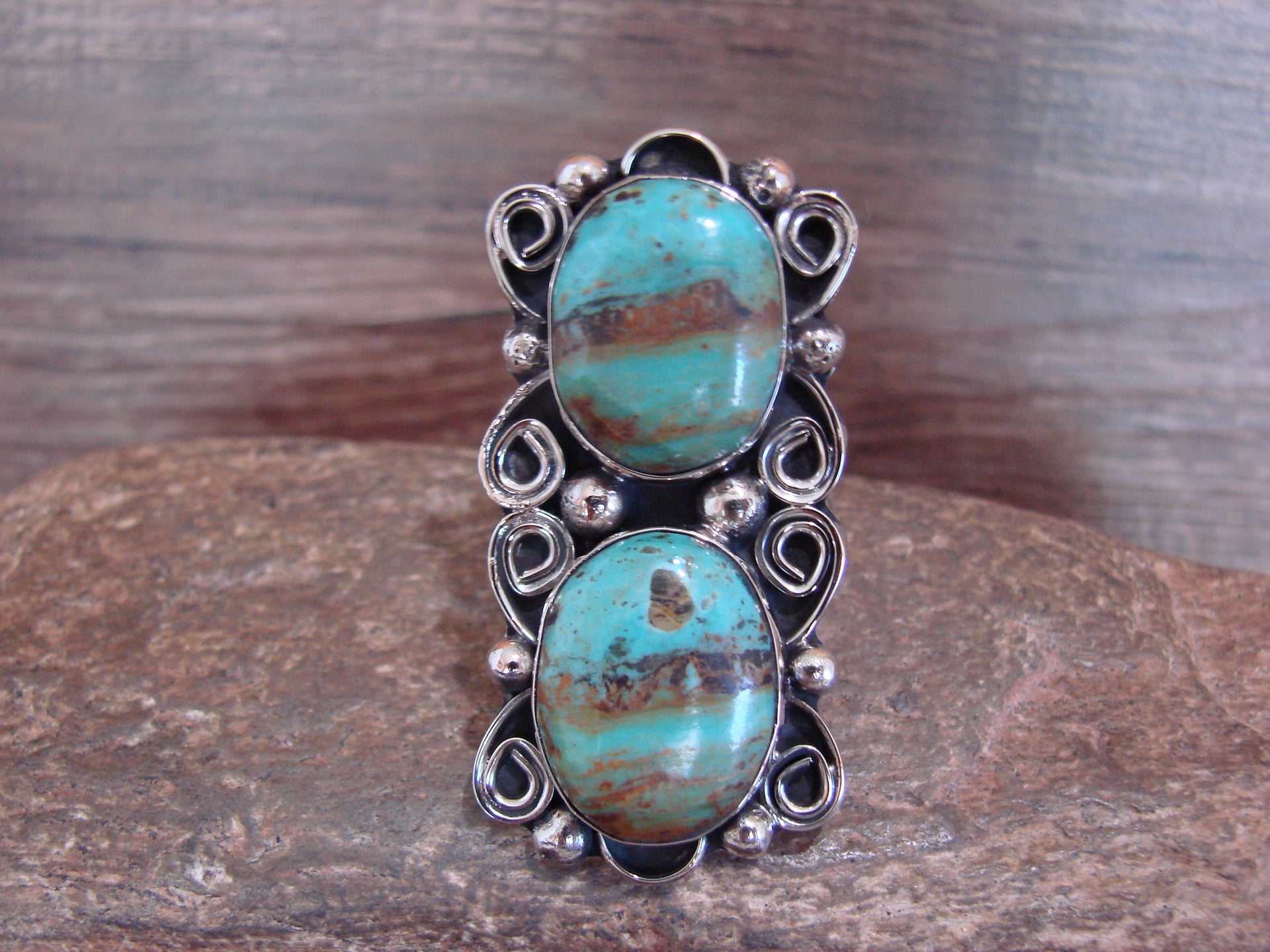 Native American Nickel Silver & Turquoise Adjustable Ring by Cleveland - Size 8 - 10