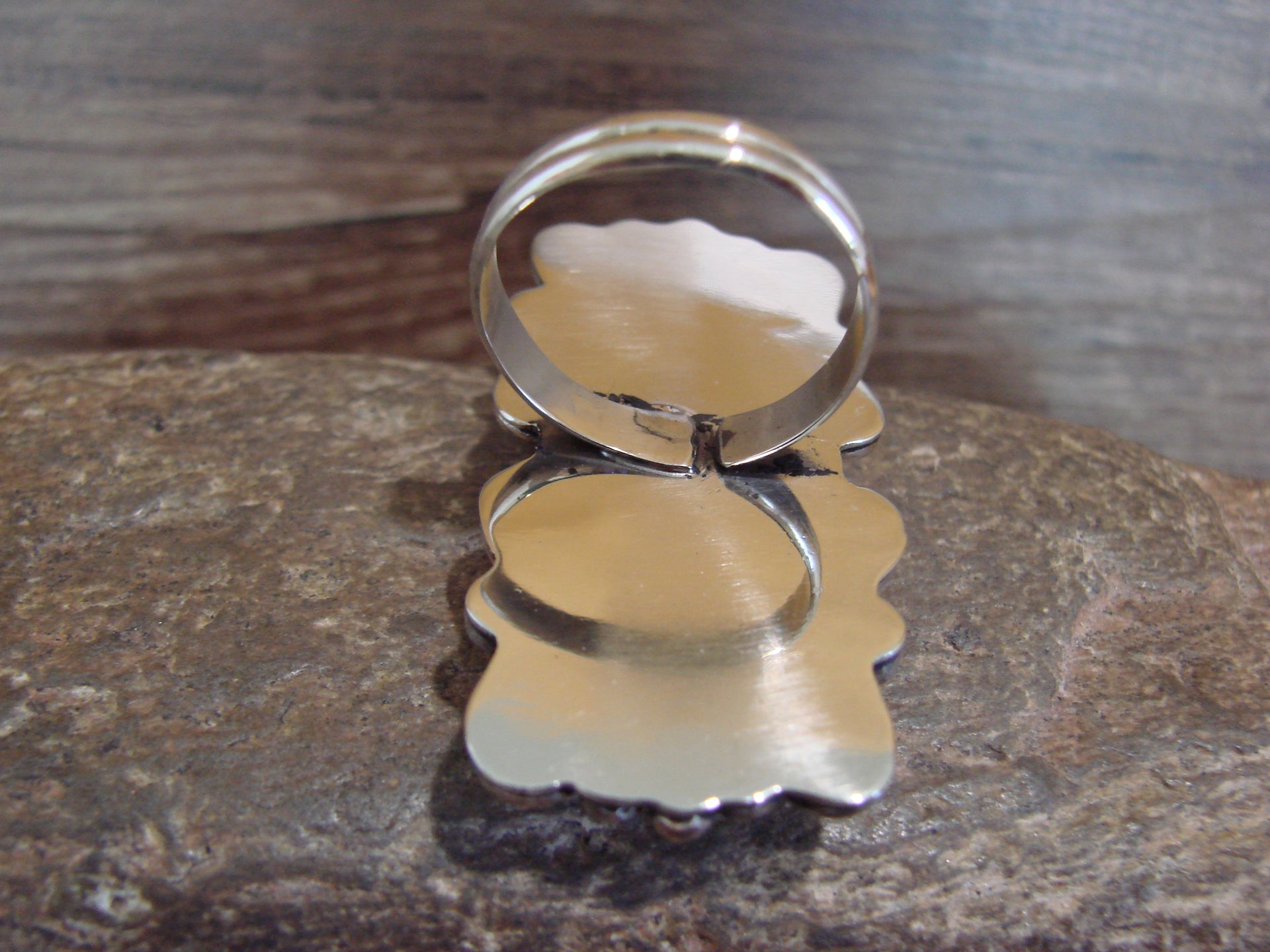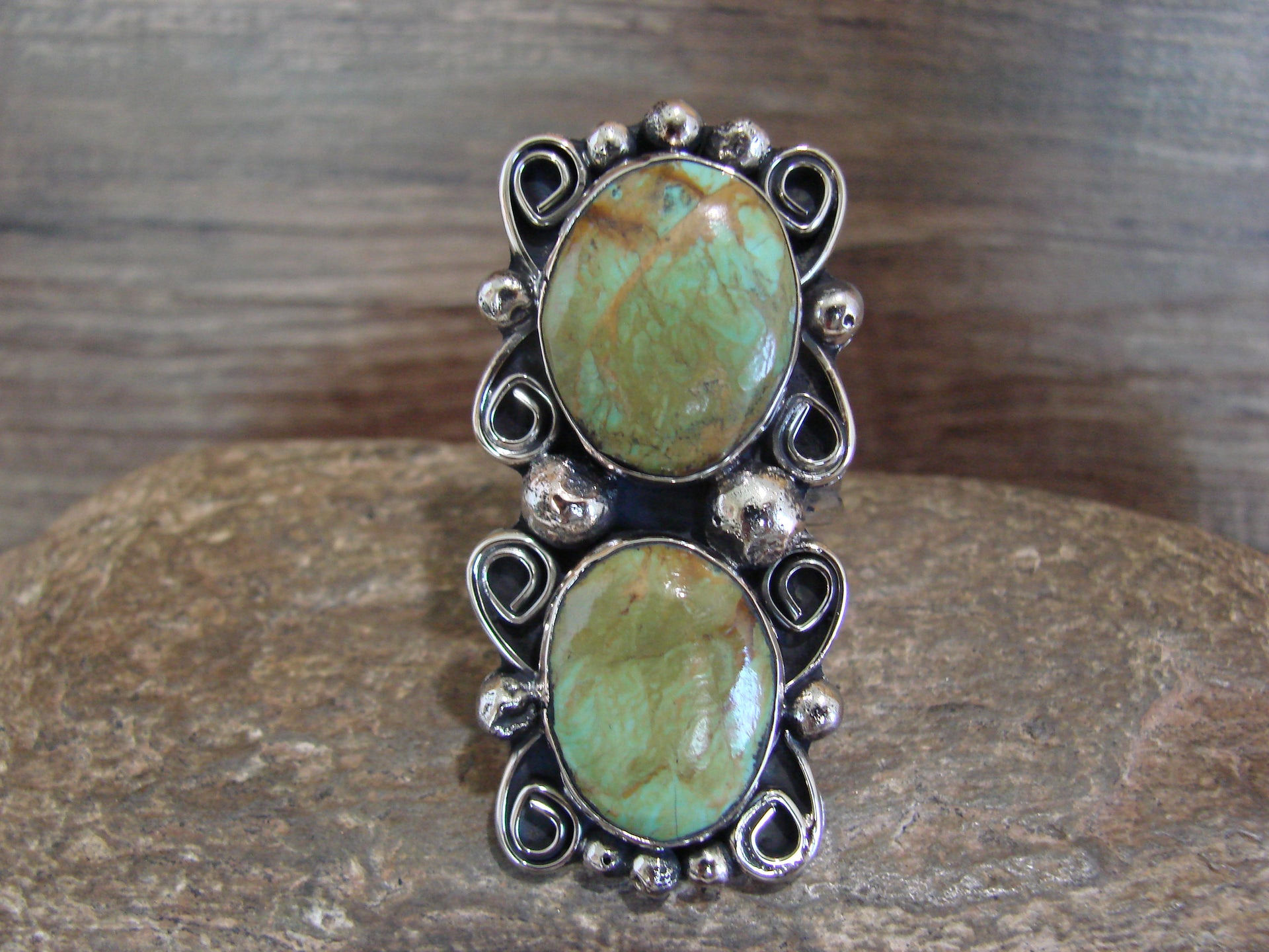 Native American Nickel Silver & Turquoise Adjustable Ring by Cleveland - Size 8 - 10
