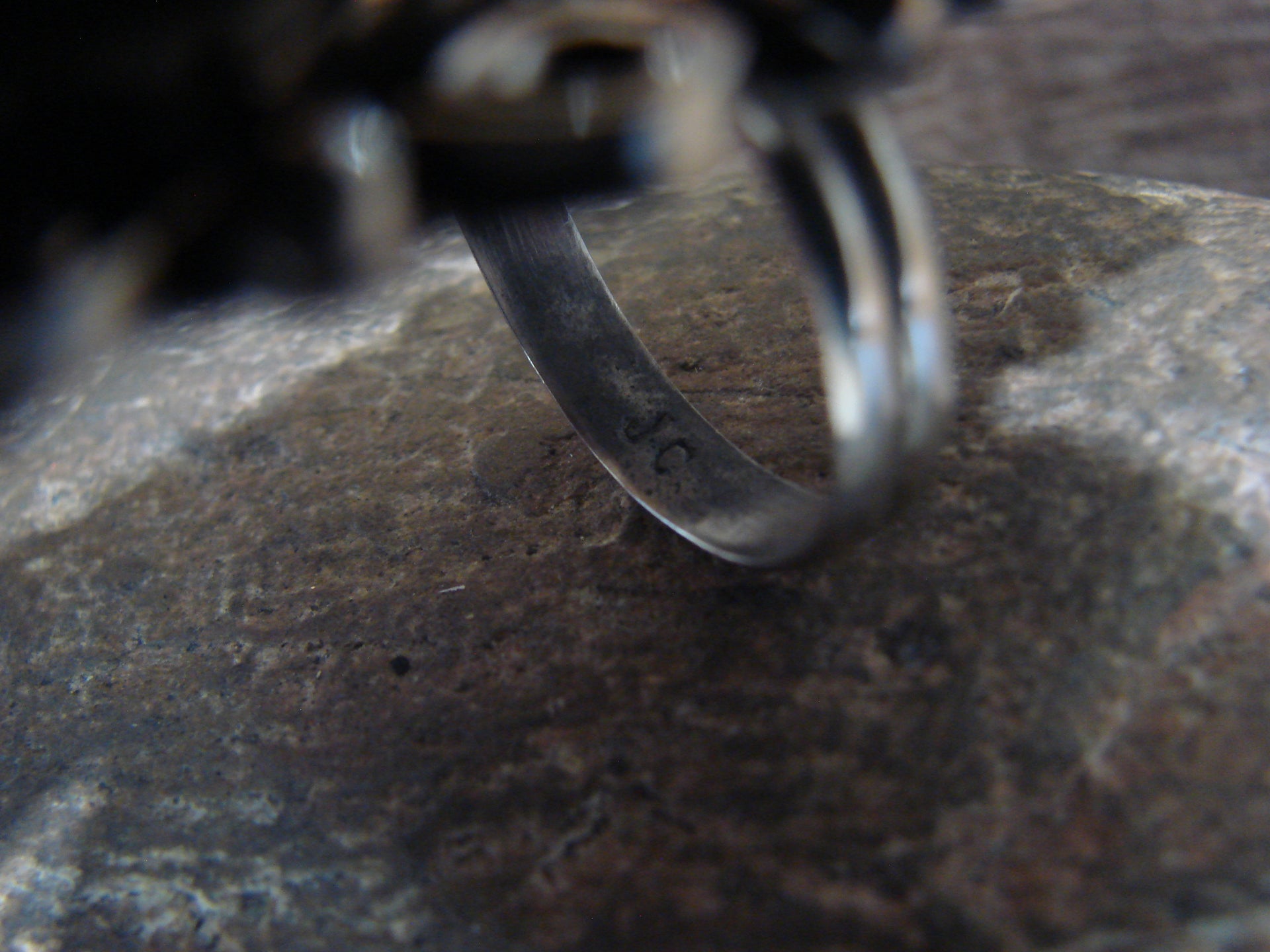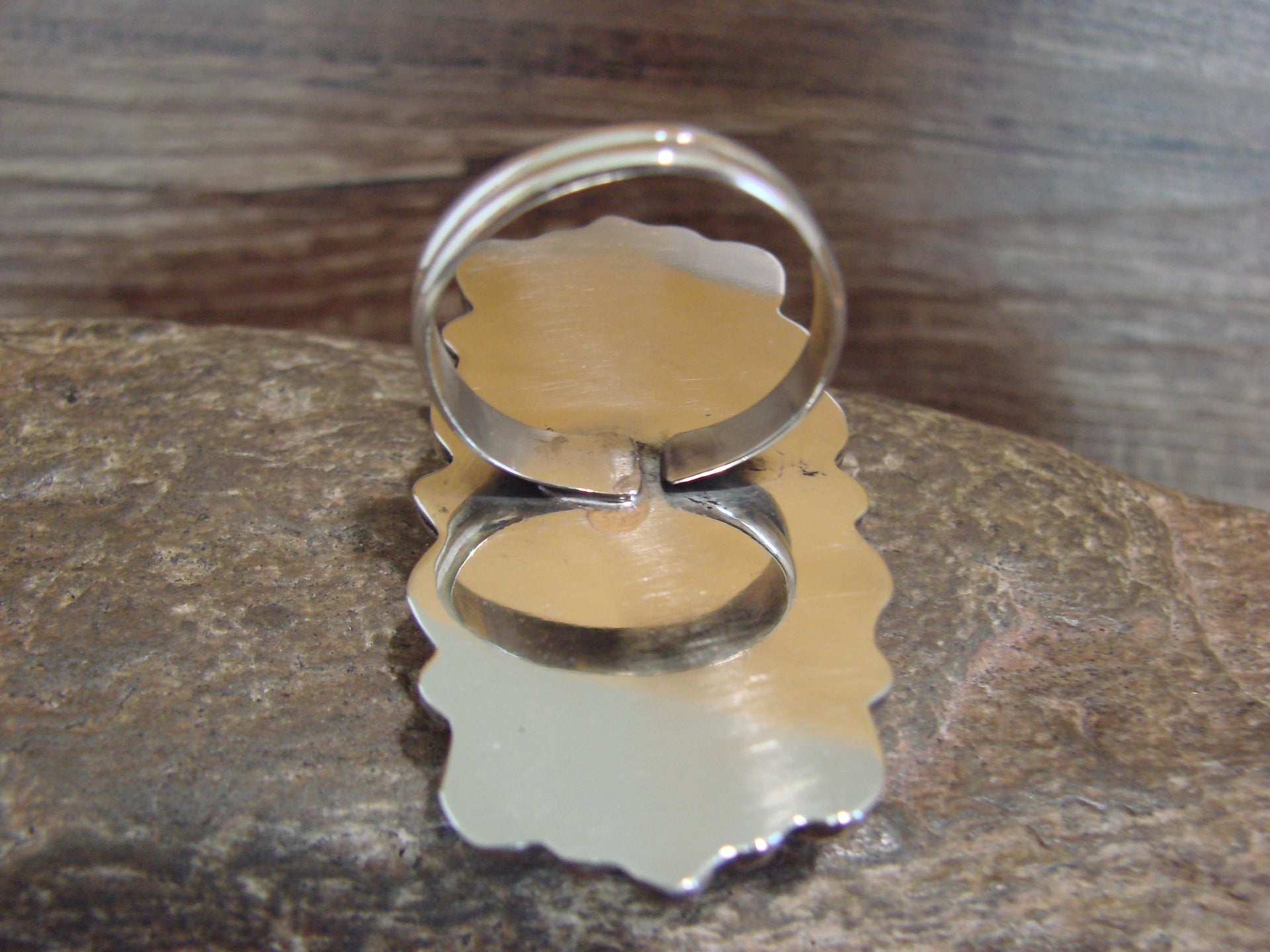 Native American Nickel Silver & Turquoise Adjustable Ring by Cleveland - Size 8 - 10