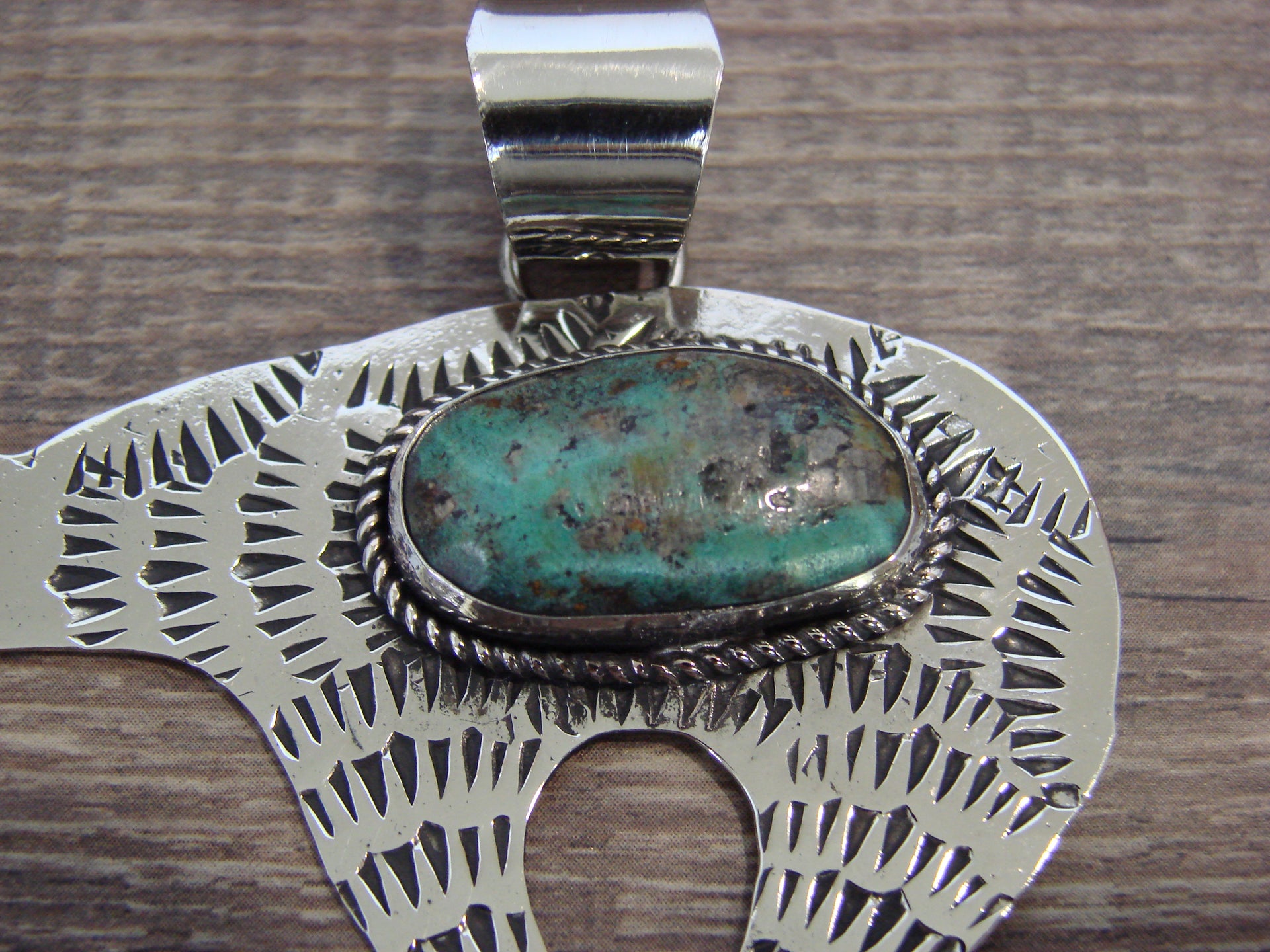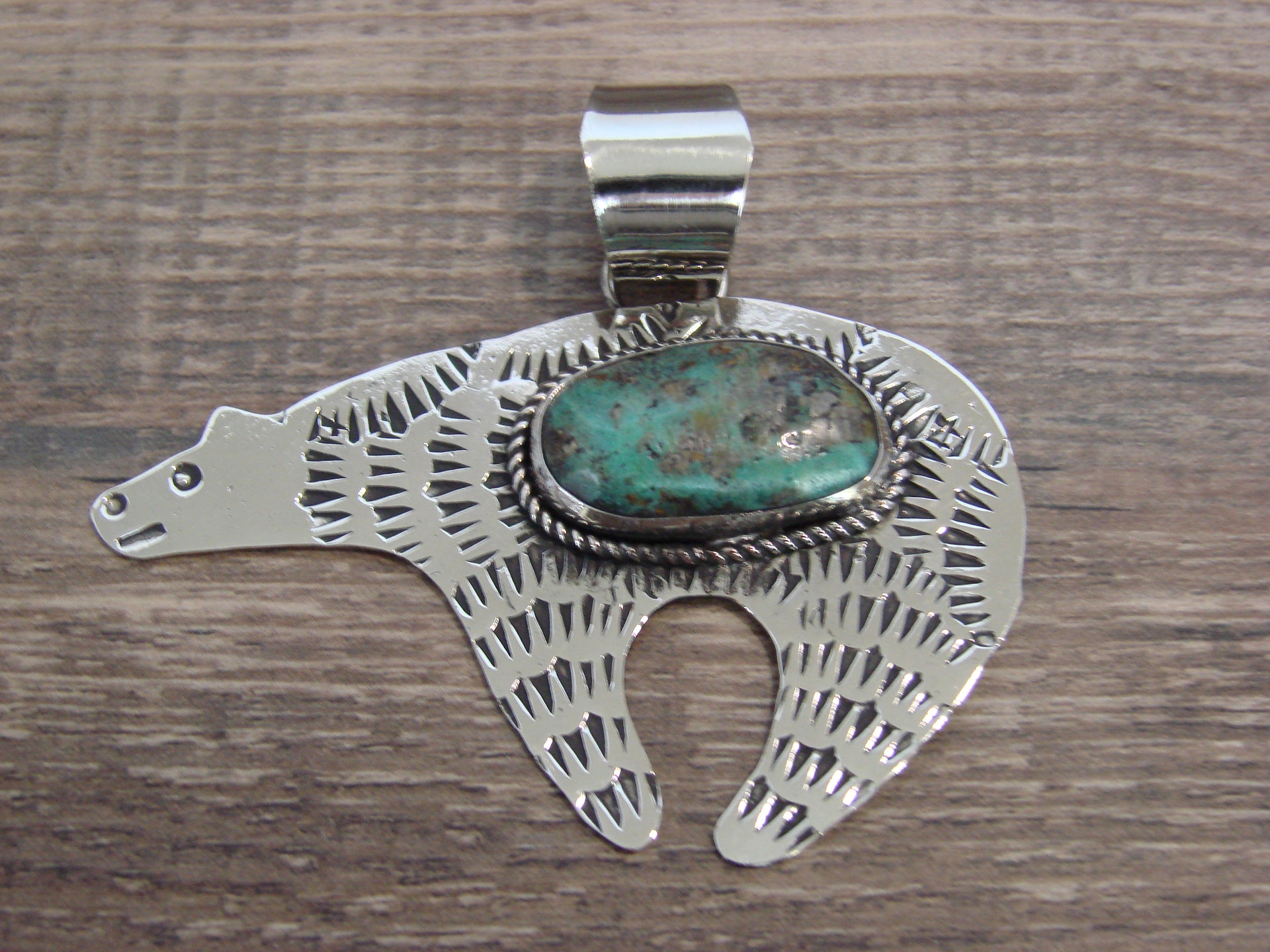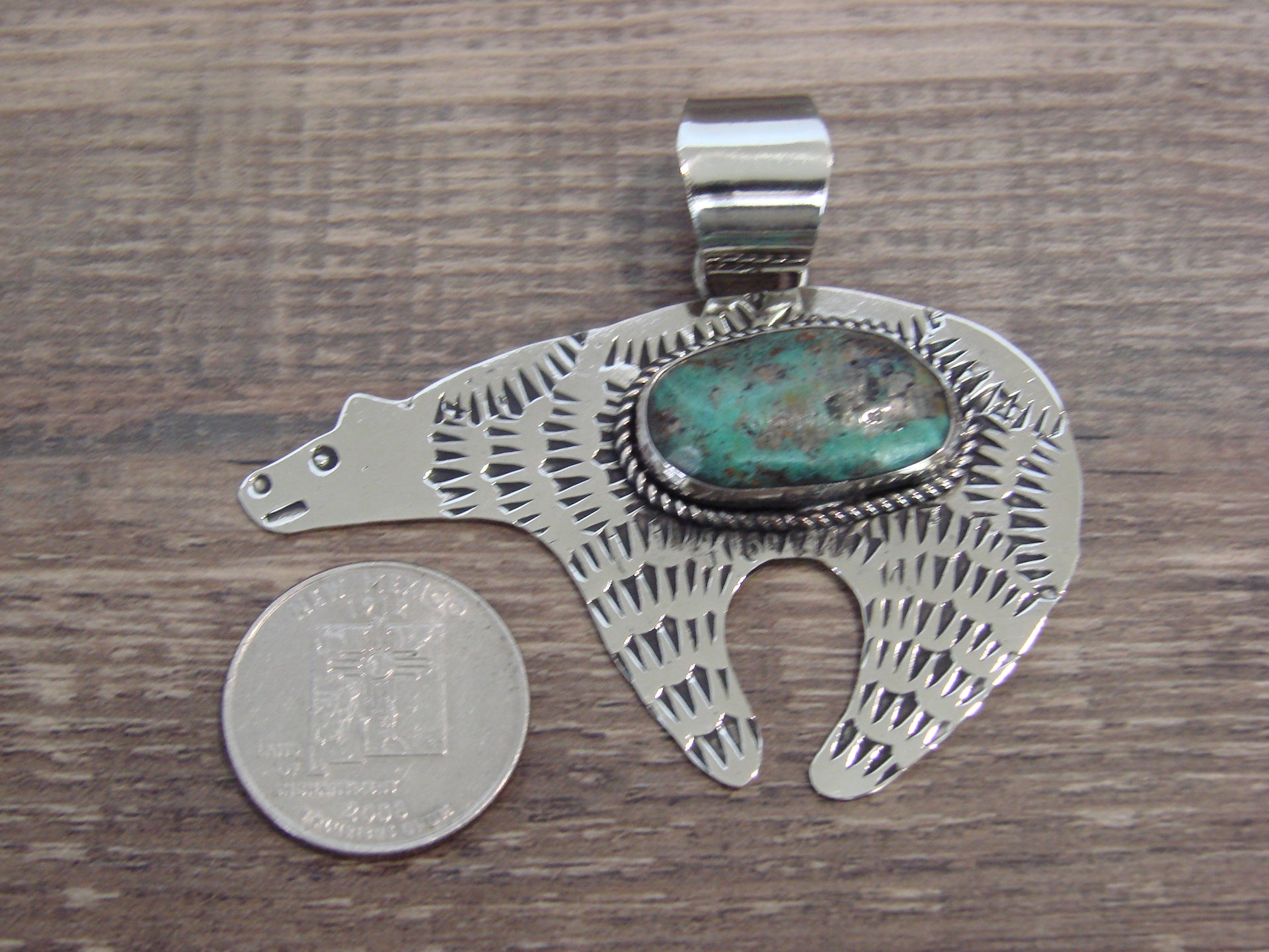 Native American Nickel Silver & Turquoise Bear Pendant - Cleveland