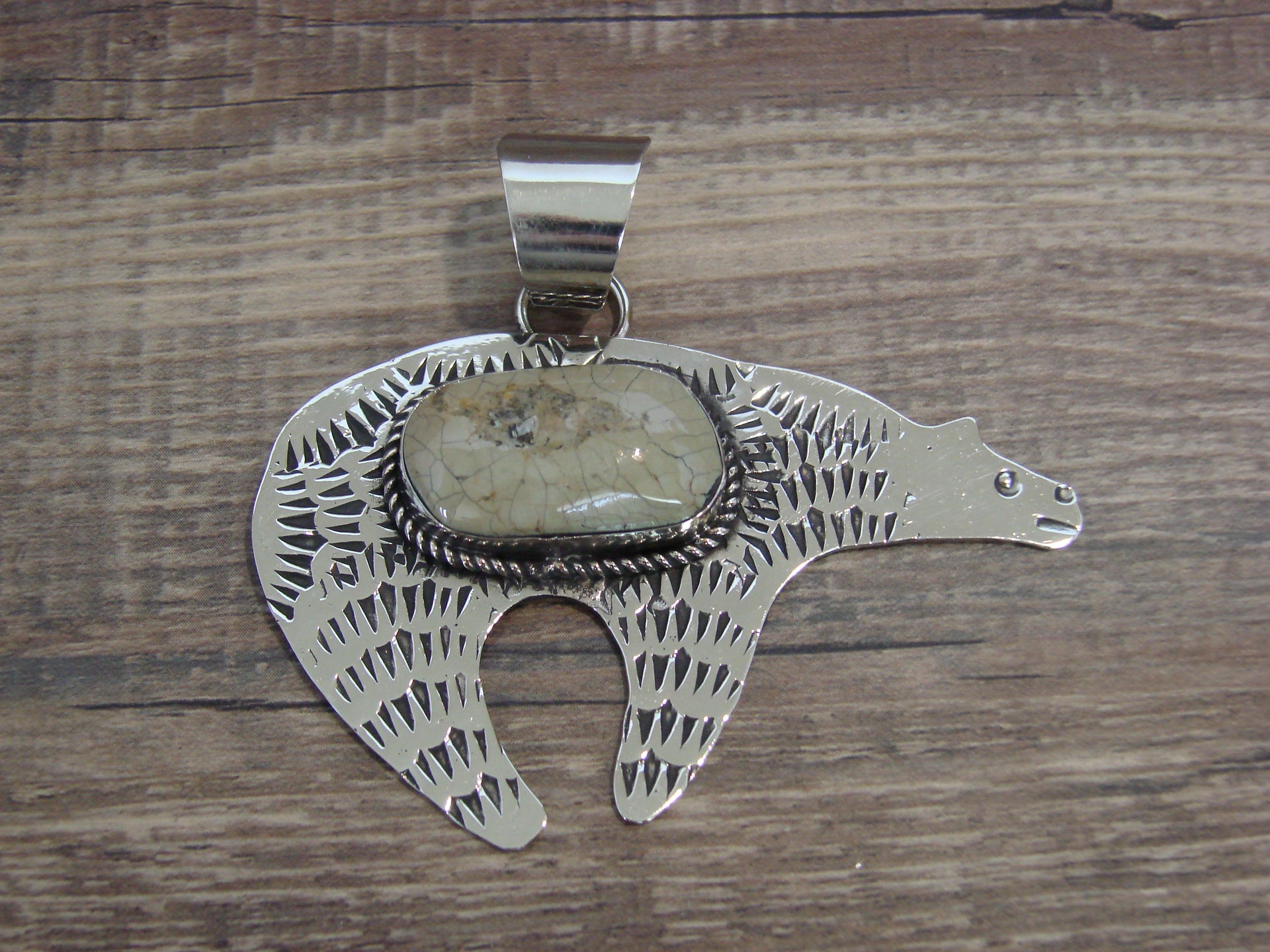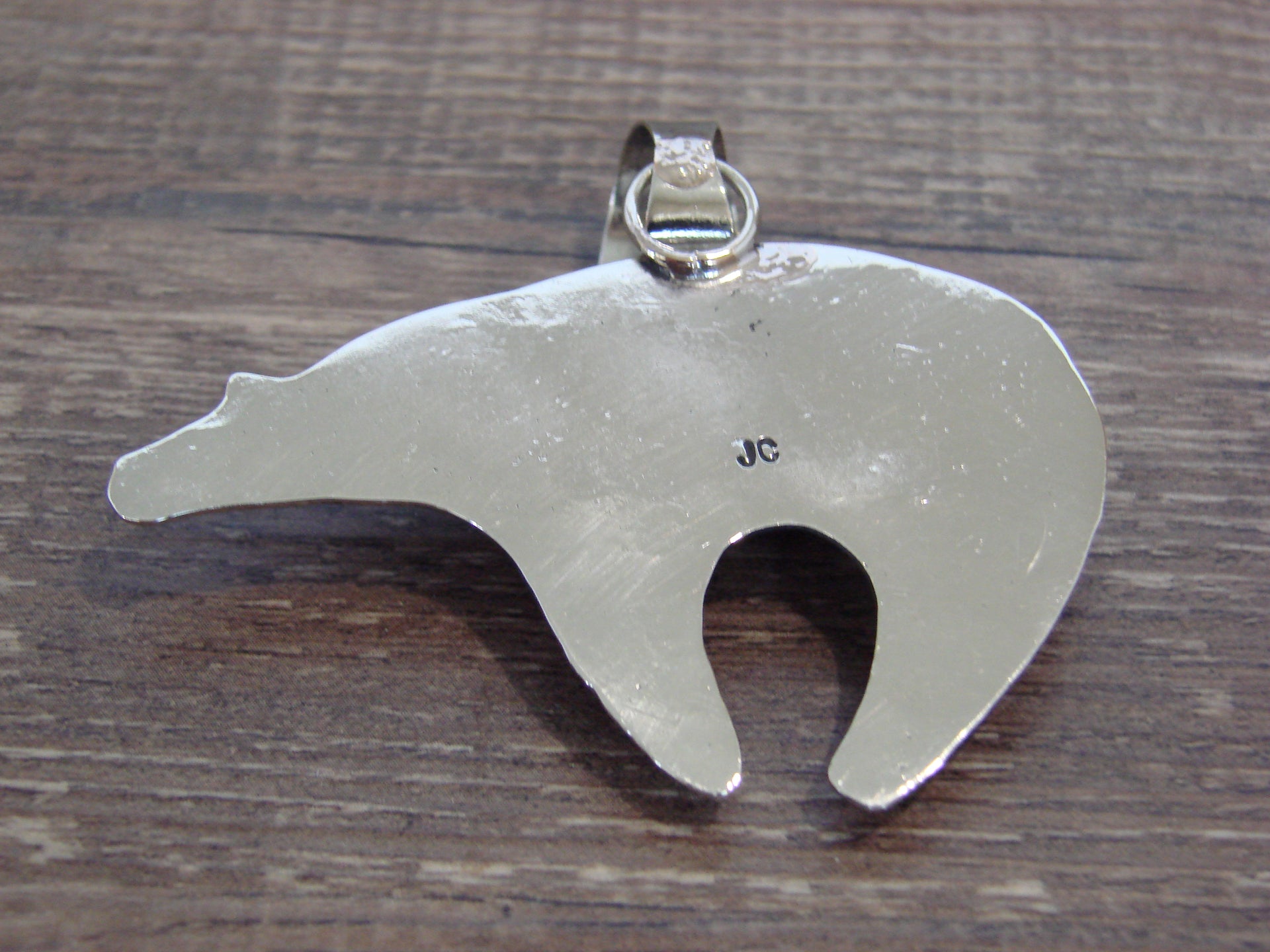 Native American Nickel Silver & Turquoise Bear Pendant - Cleveland