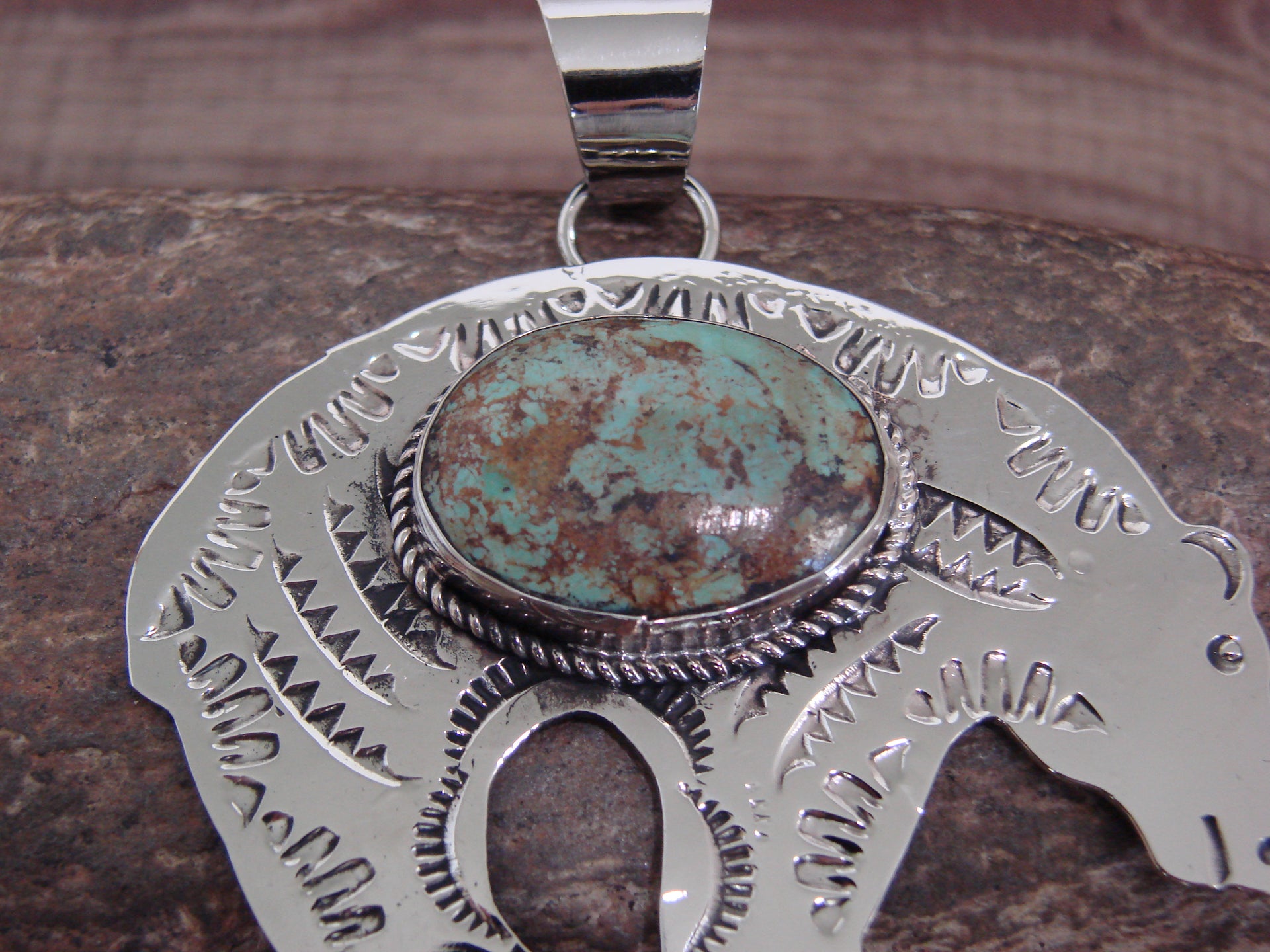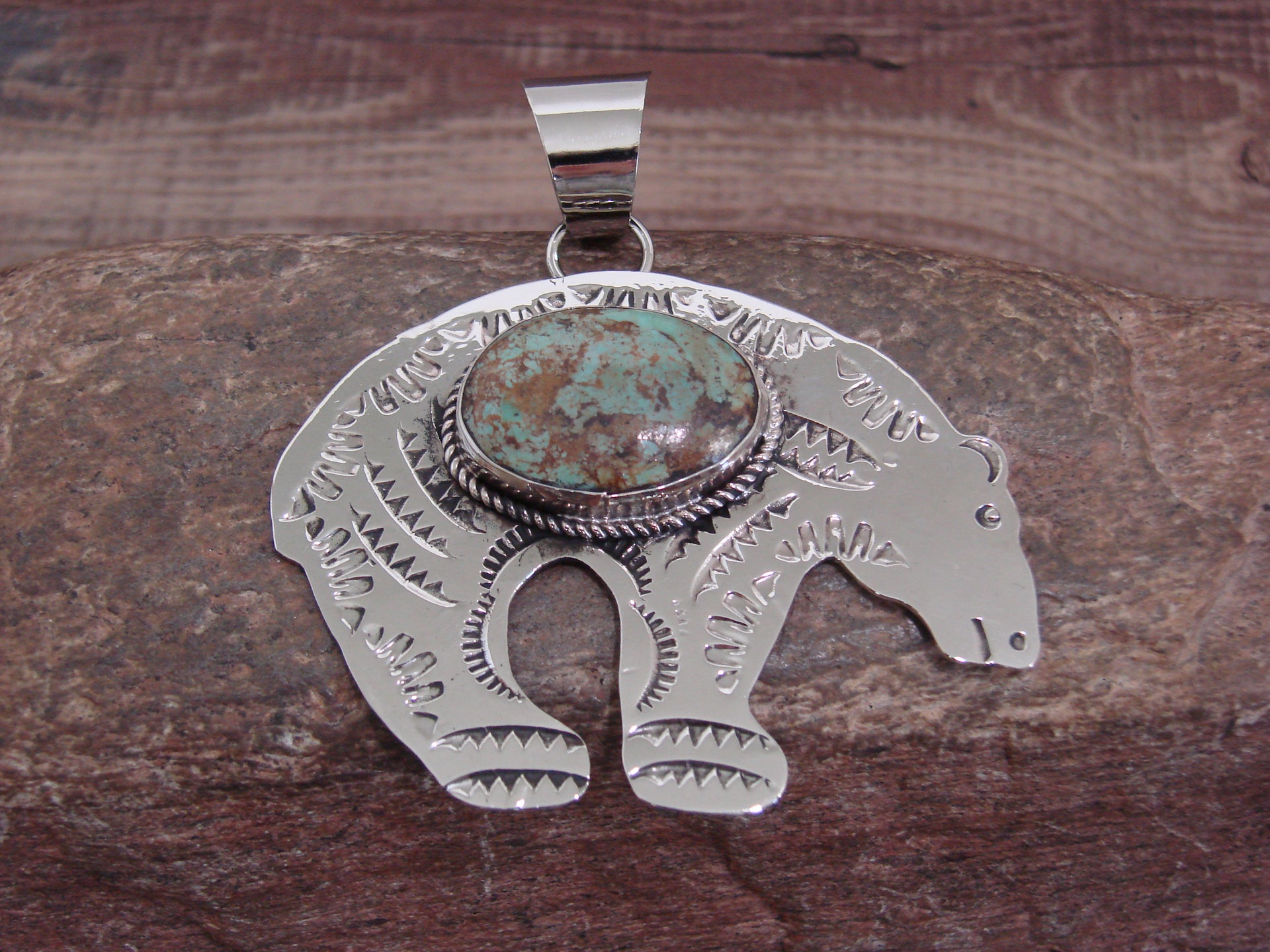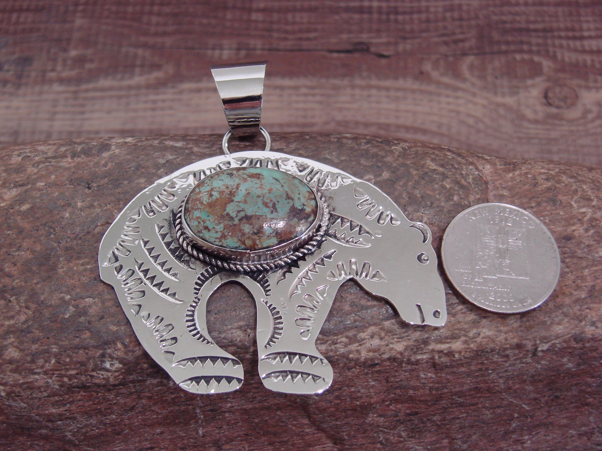 Native American Nickel Silver & Turquoise Bear Pendant - Cleveland
