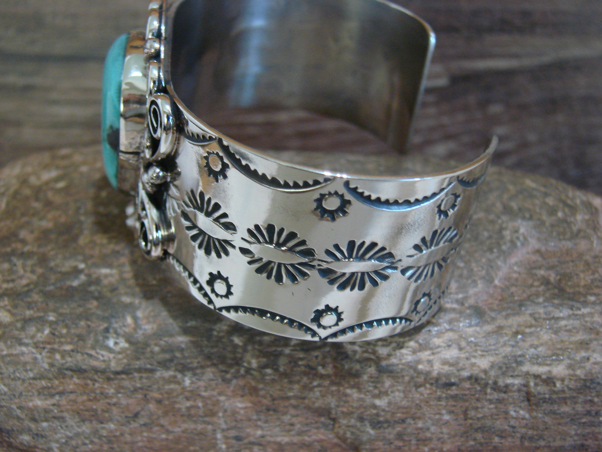 Native American Nickel Silver & Turquoise Bracelet by Cleveland