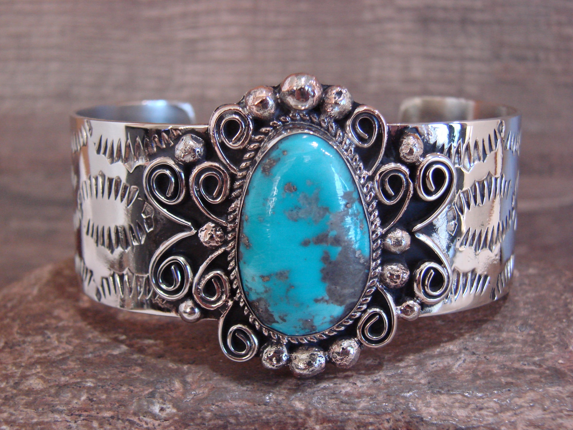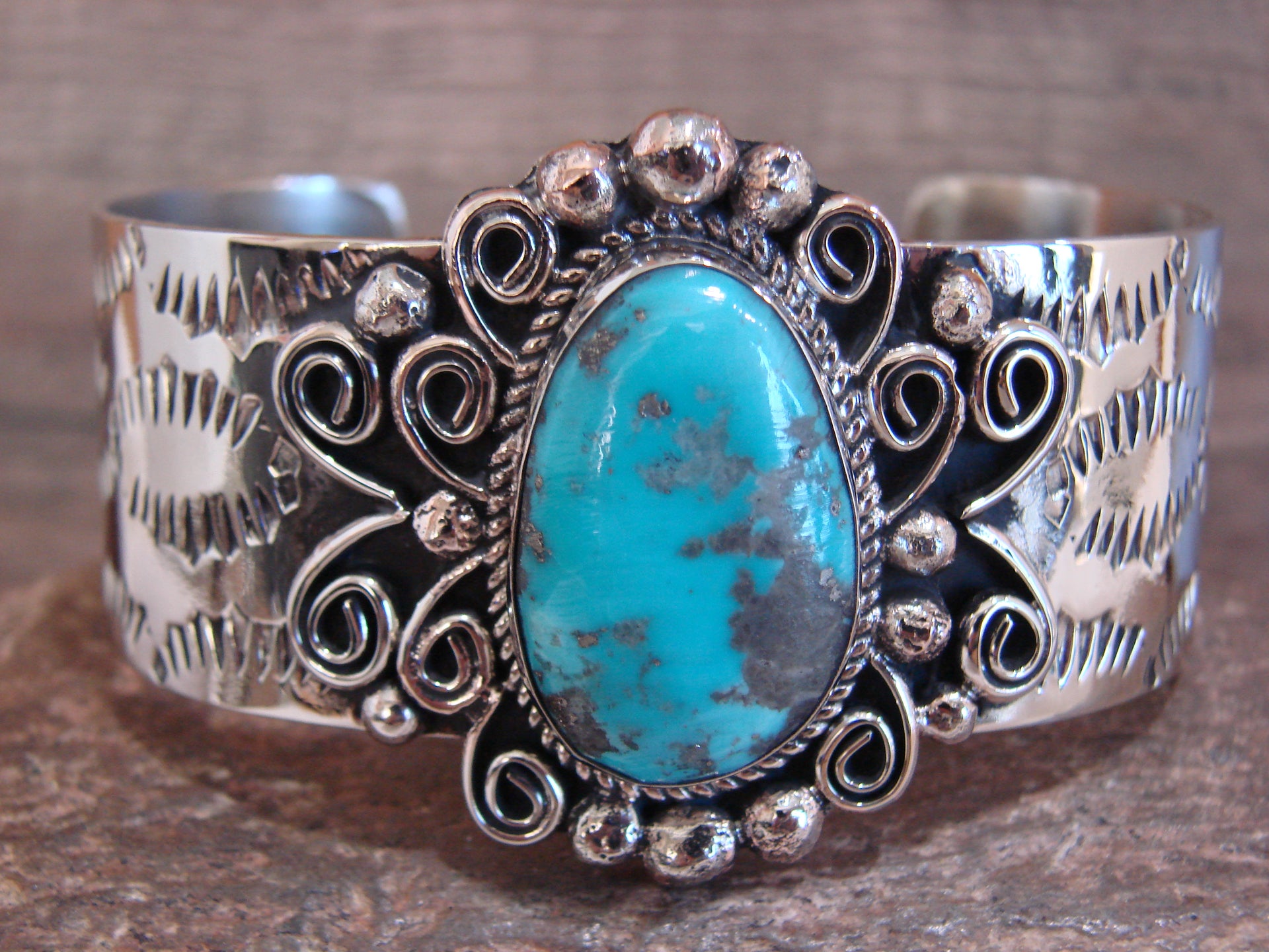 Native American Nickel Silver & Turquoise Bracelet by Cleveland