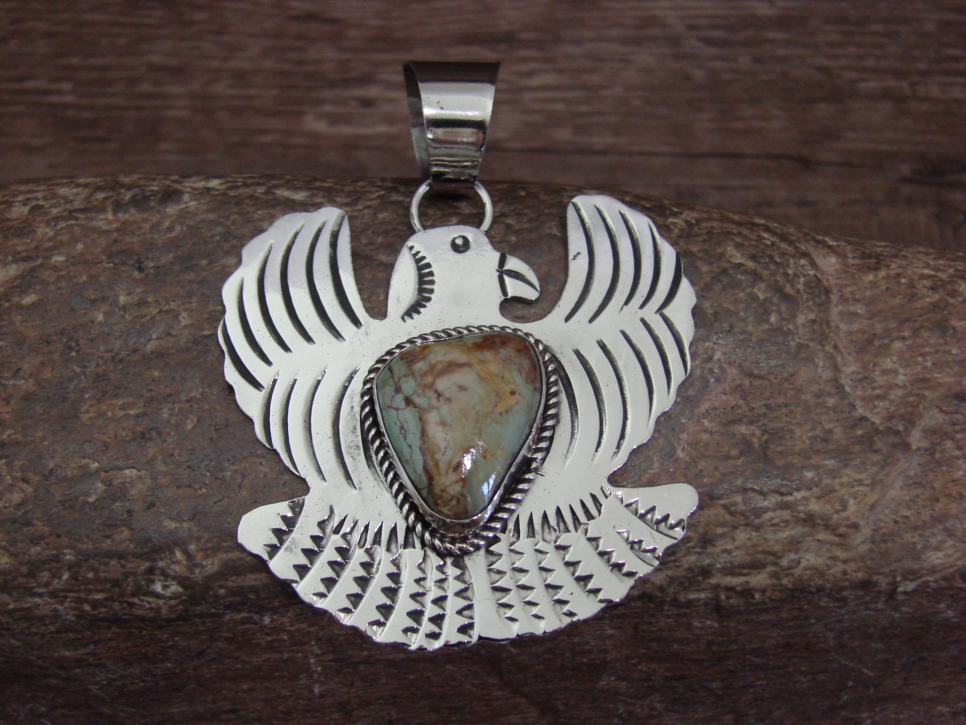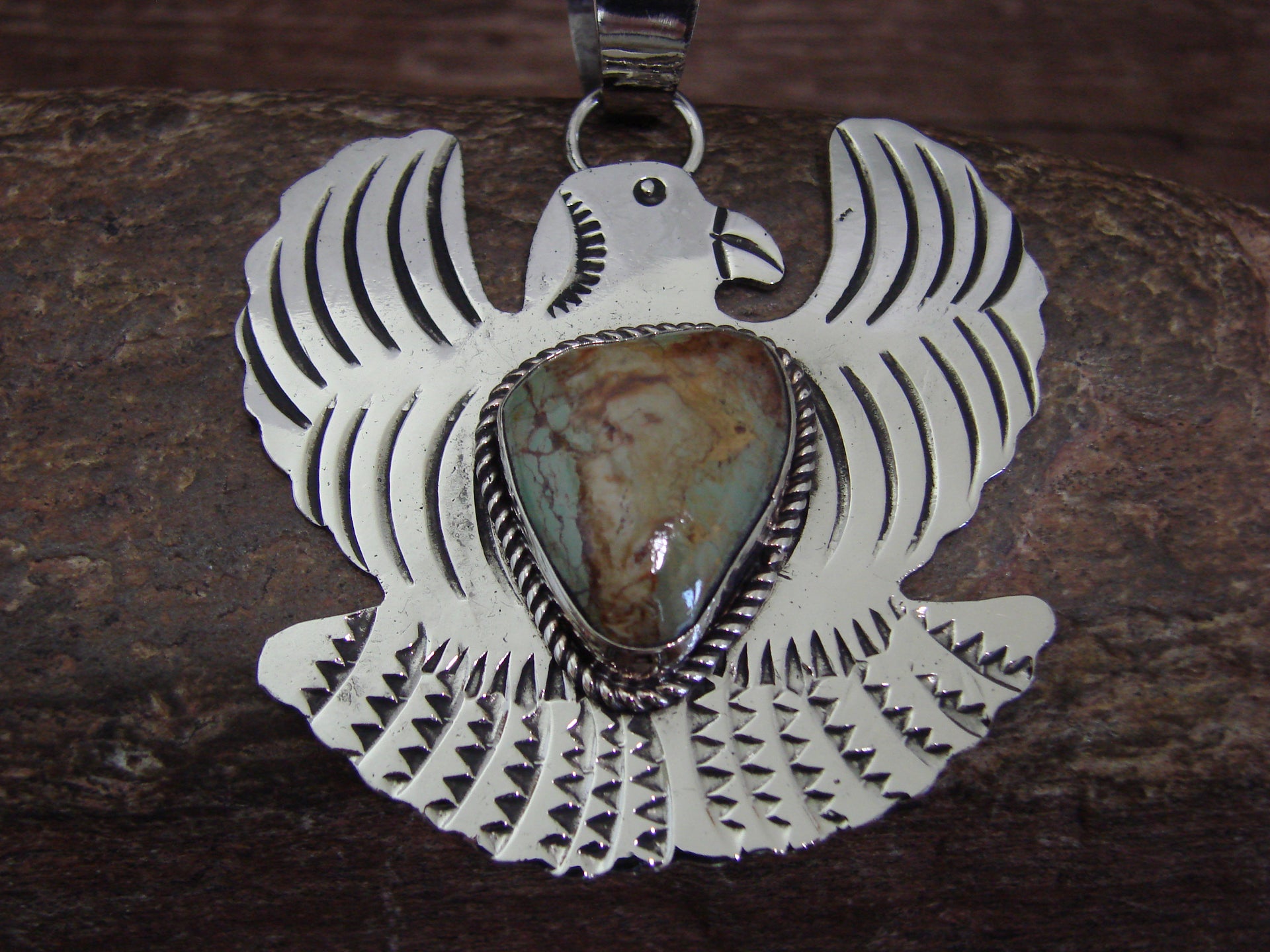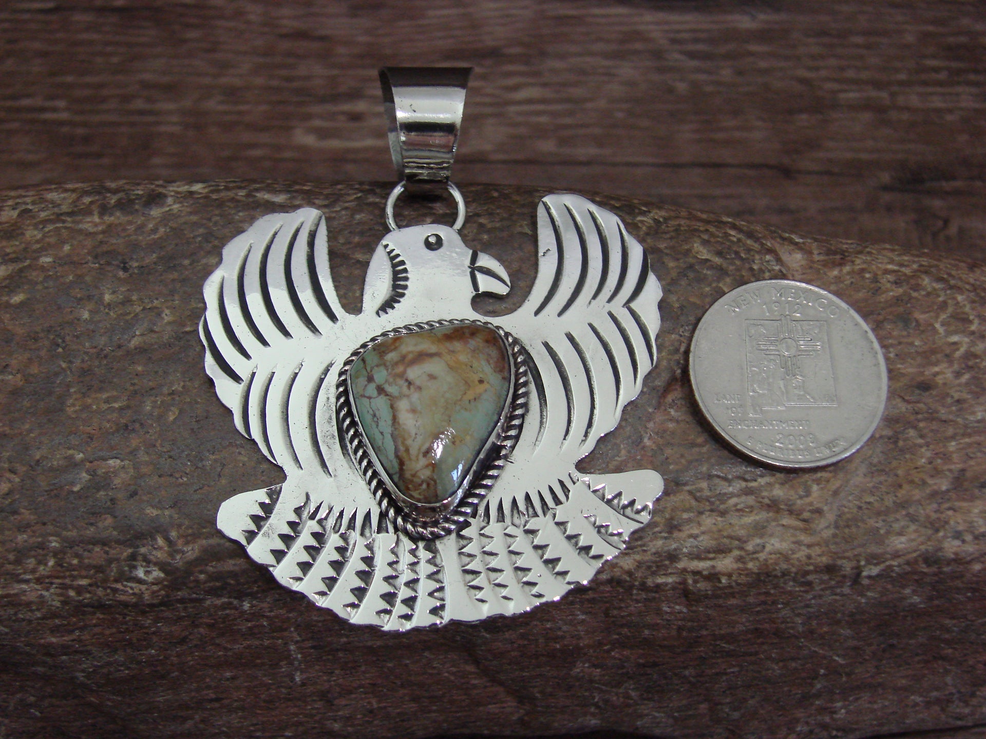 Native American Nickel Silver & Turquoise Eagle Pendant - Cleveland