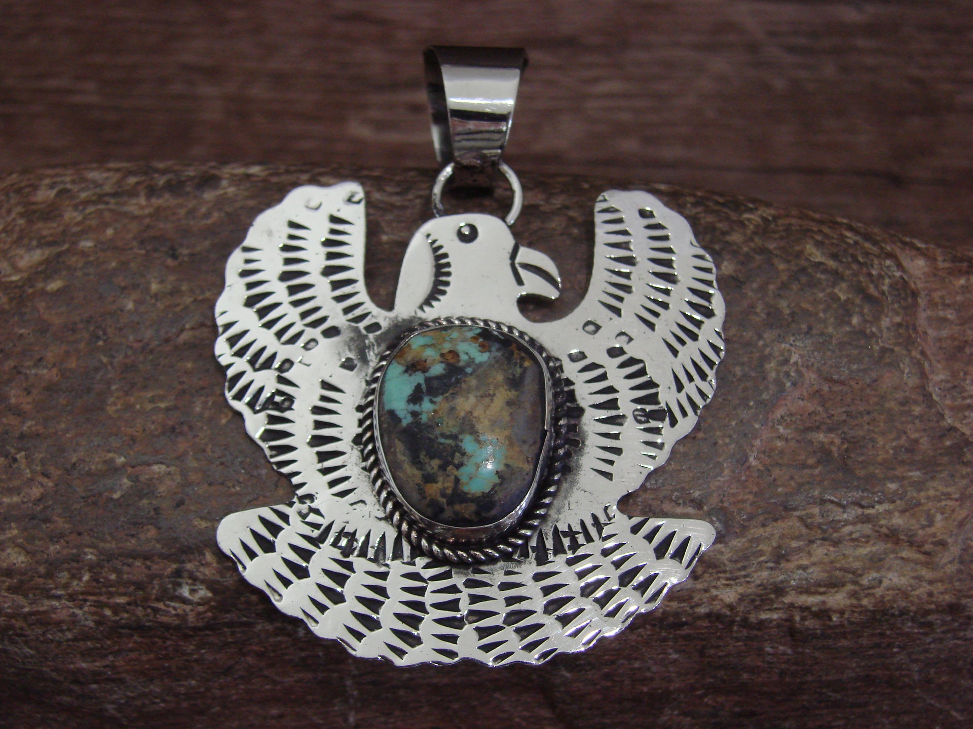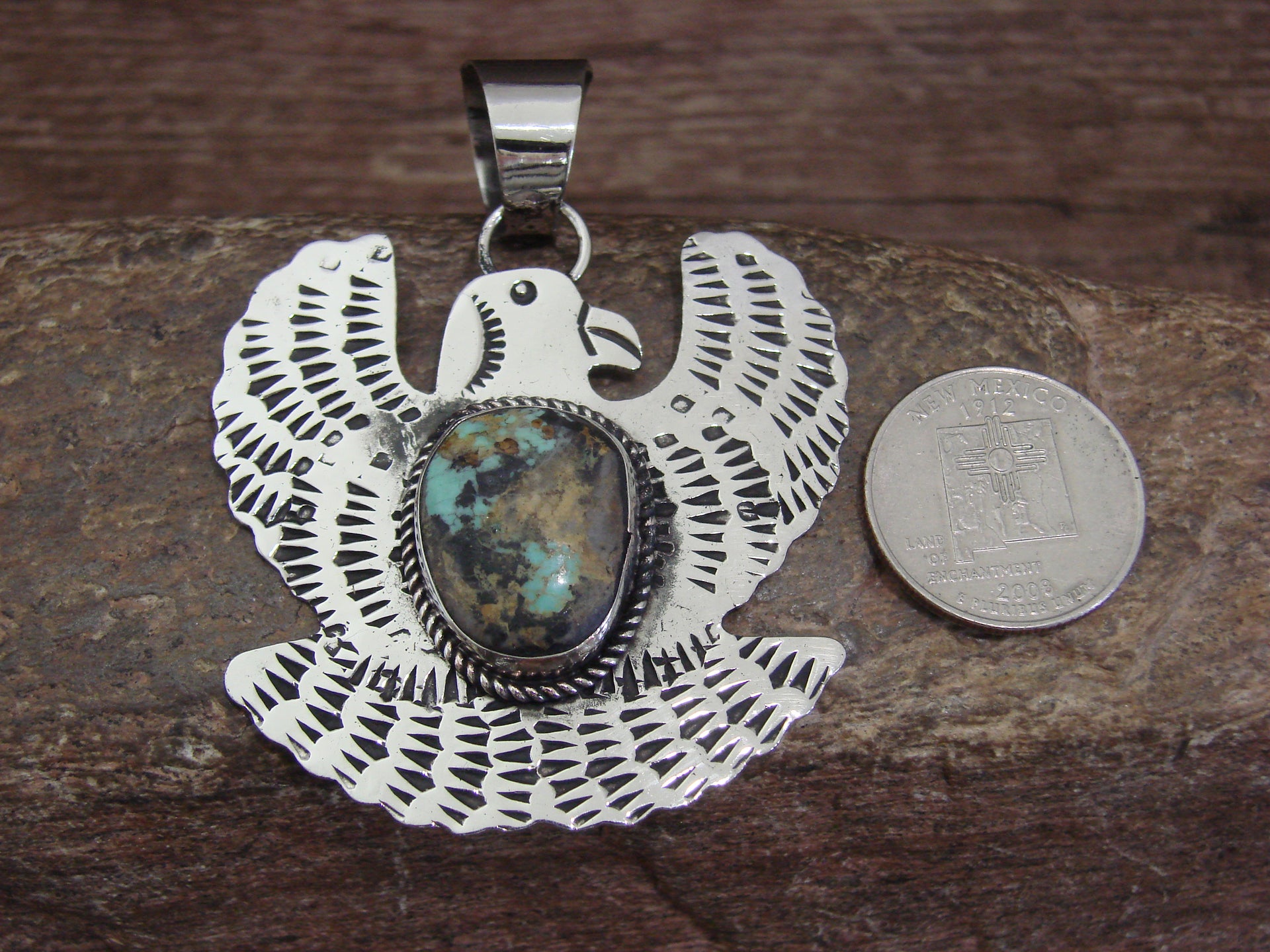 Native American Nickel Silver & Turquoise Eagle Pendant - Cleveland