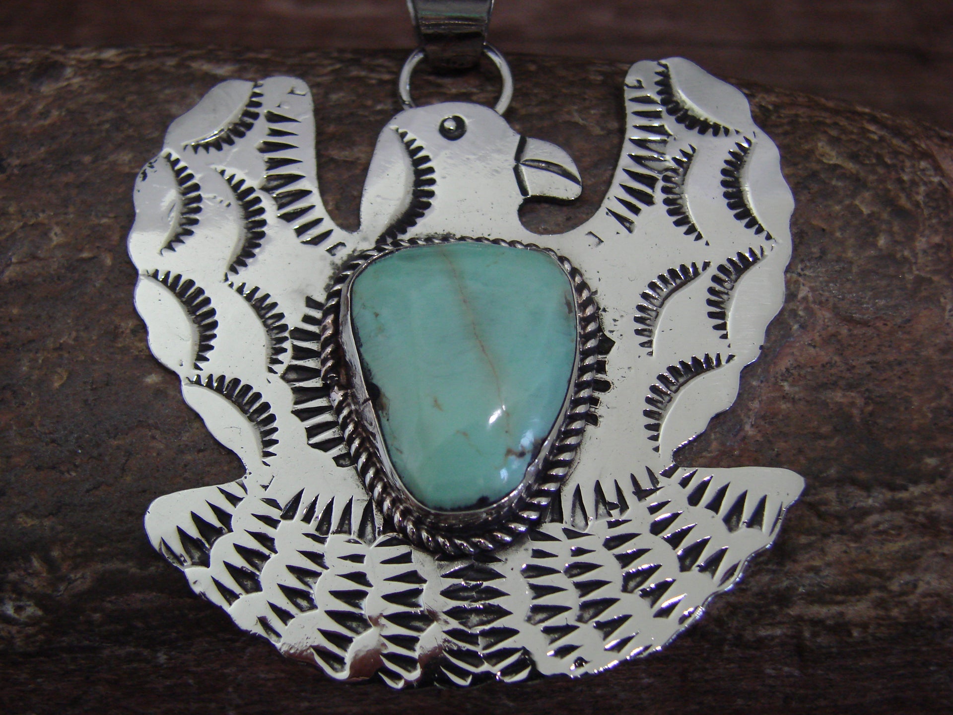 Native American Nickel Silver & Turquoise Eagle Pendant - Cleveland
