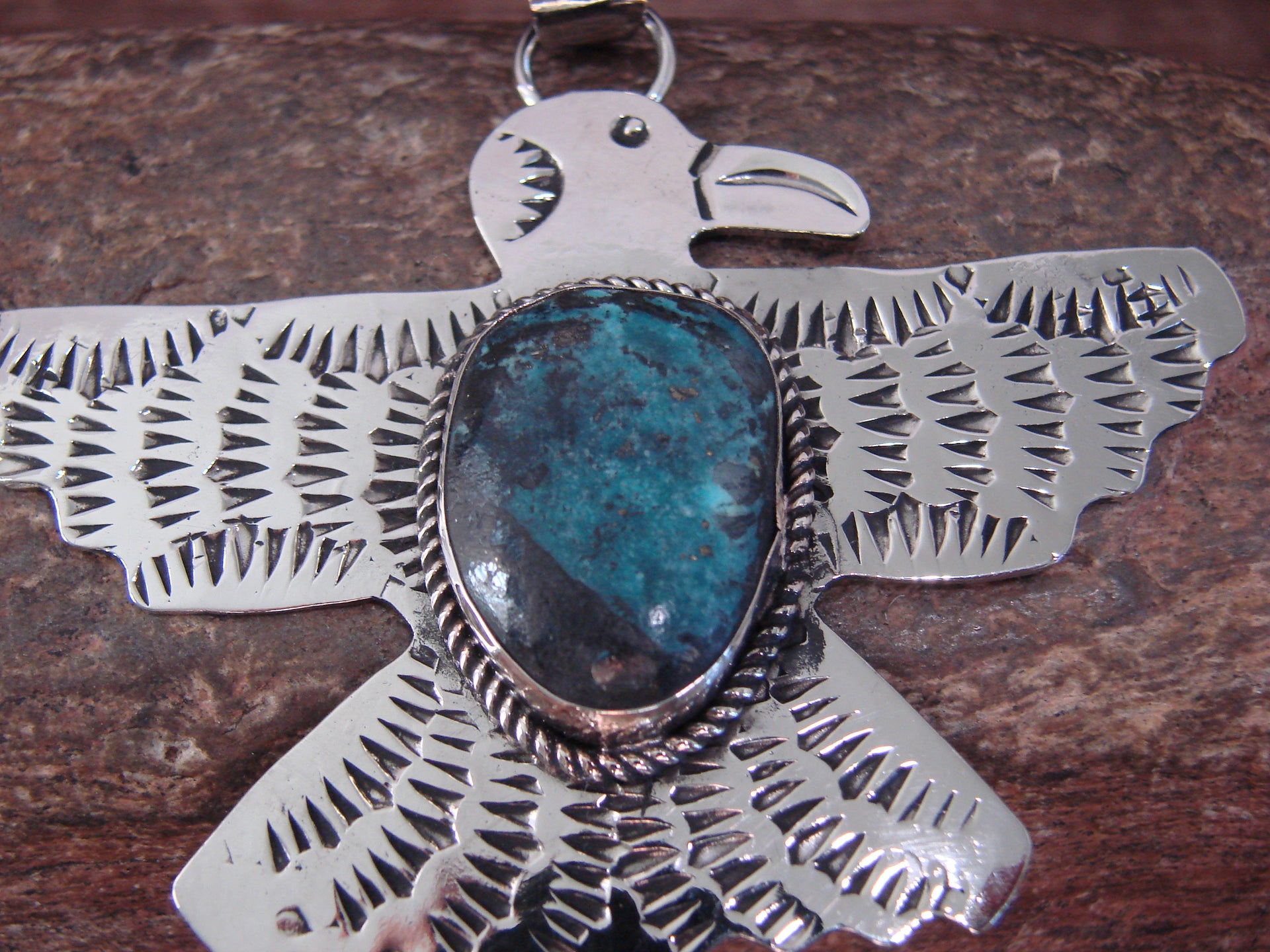 Native American Nickel Silver & Turquoise Eagle Pendant - Cleveland