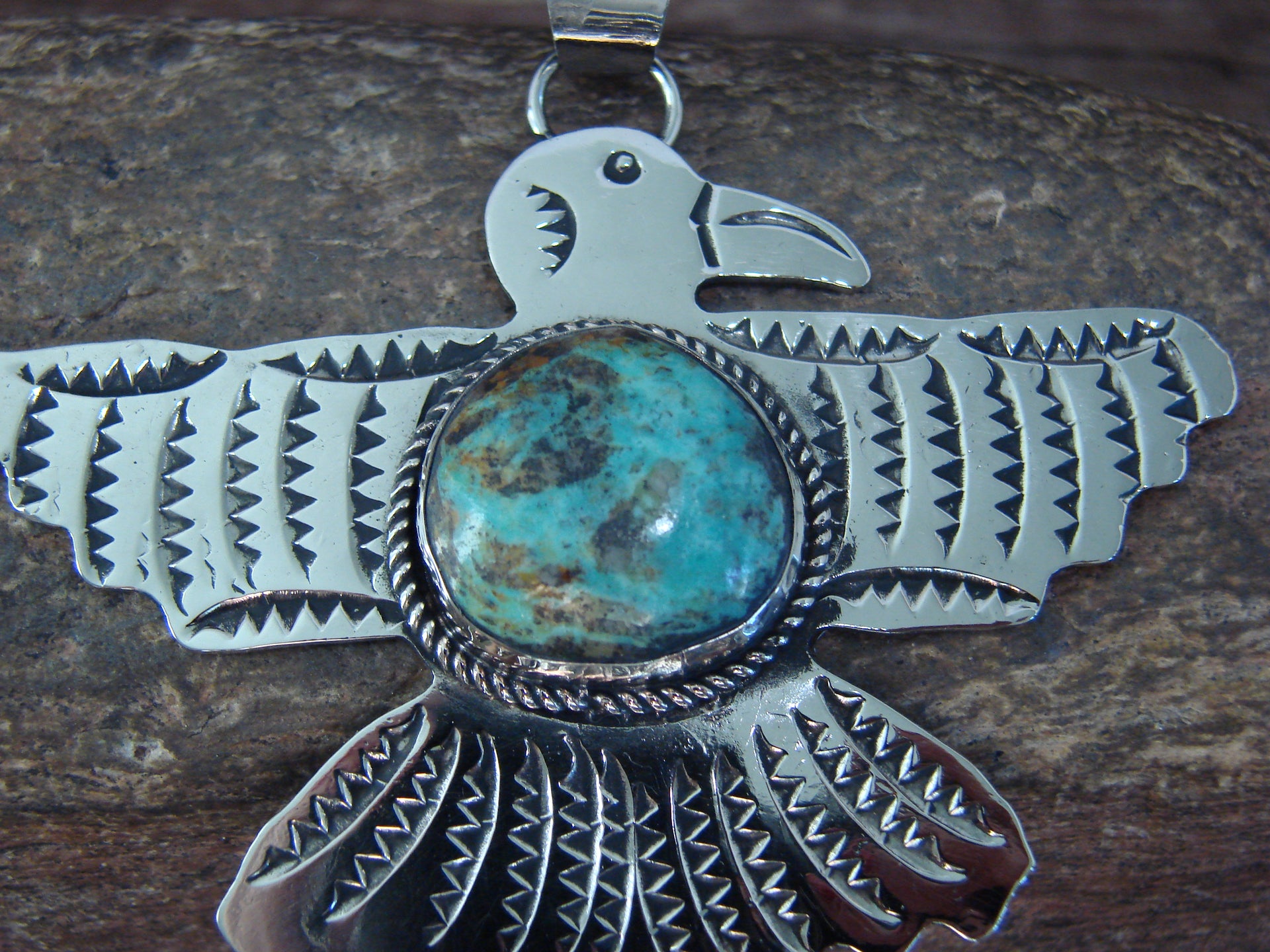 Native American Nickel Silver & Turquoise Eagle Pendant - Cleveland