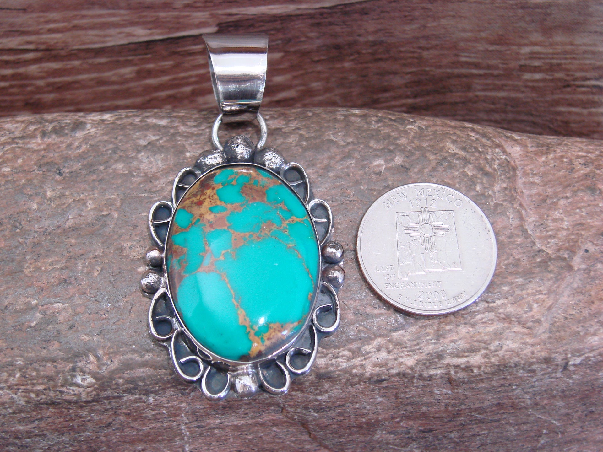 Native American Nickel Silver & Turquoise Howlite Pendant - Cleveland