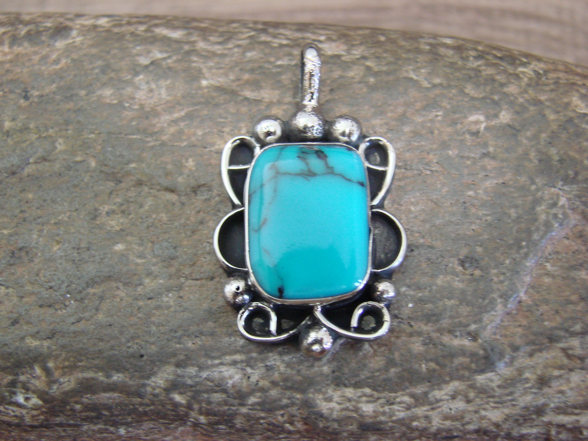 Native American Nickel Silver & Turquoise Howlite Pendant - Cleveland