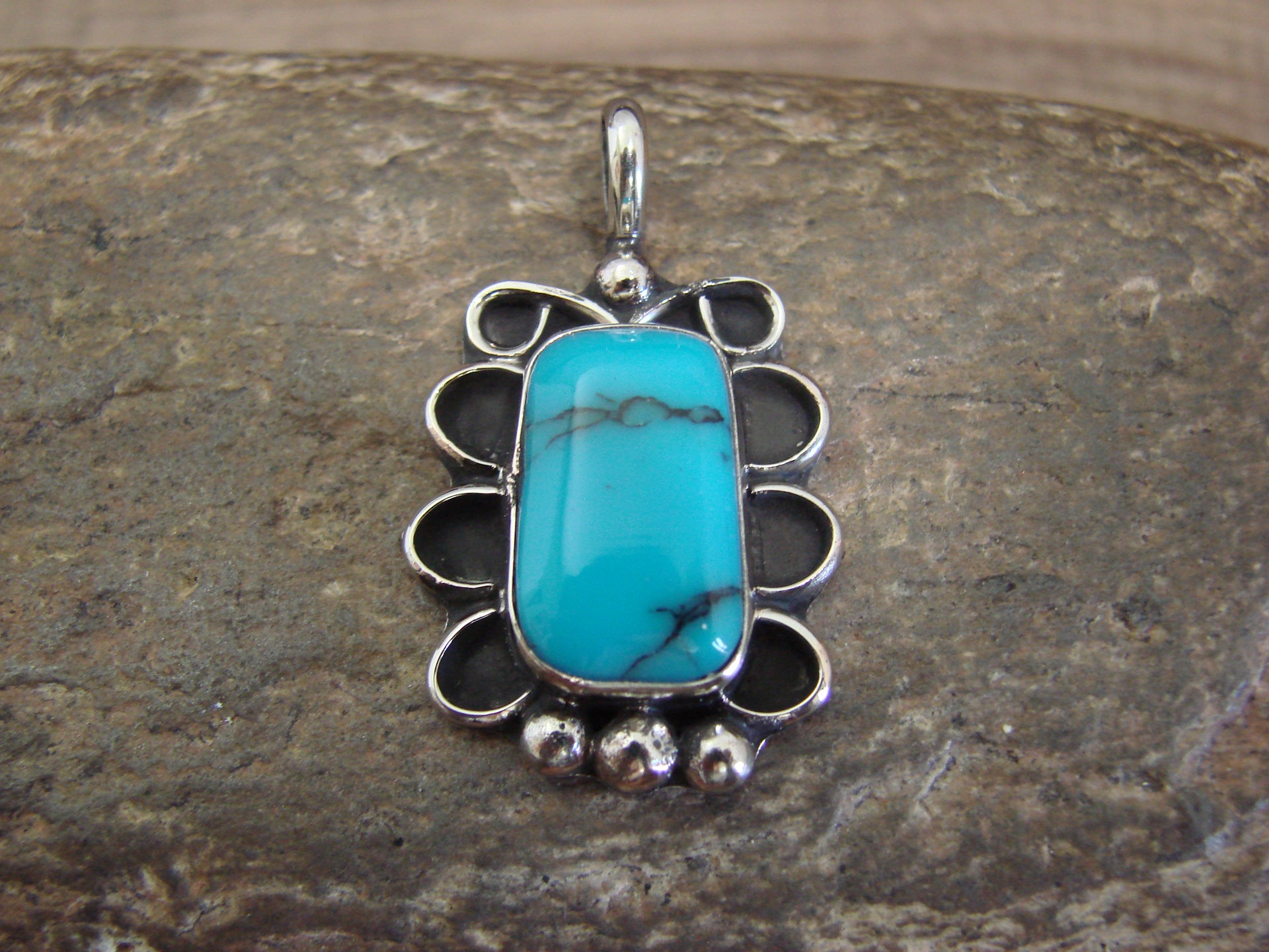 Native American Nickel Silver & Turquoise Howlite Pendant - Cleveland