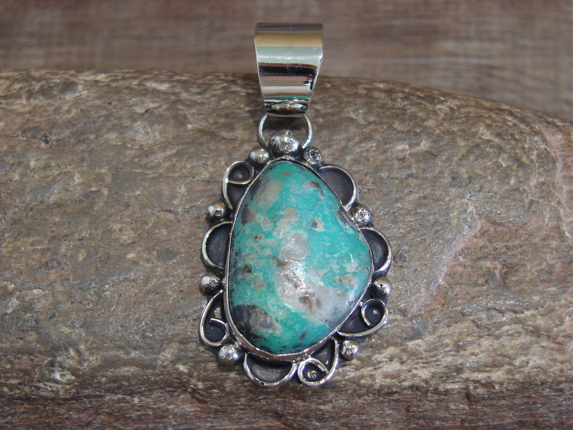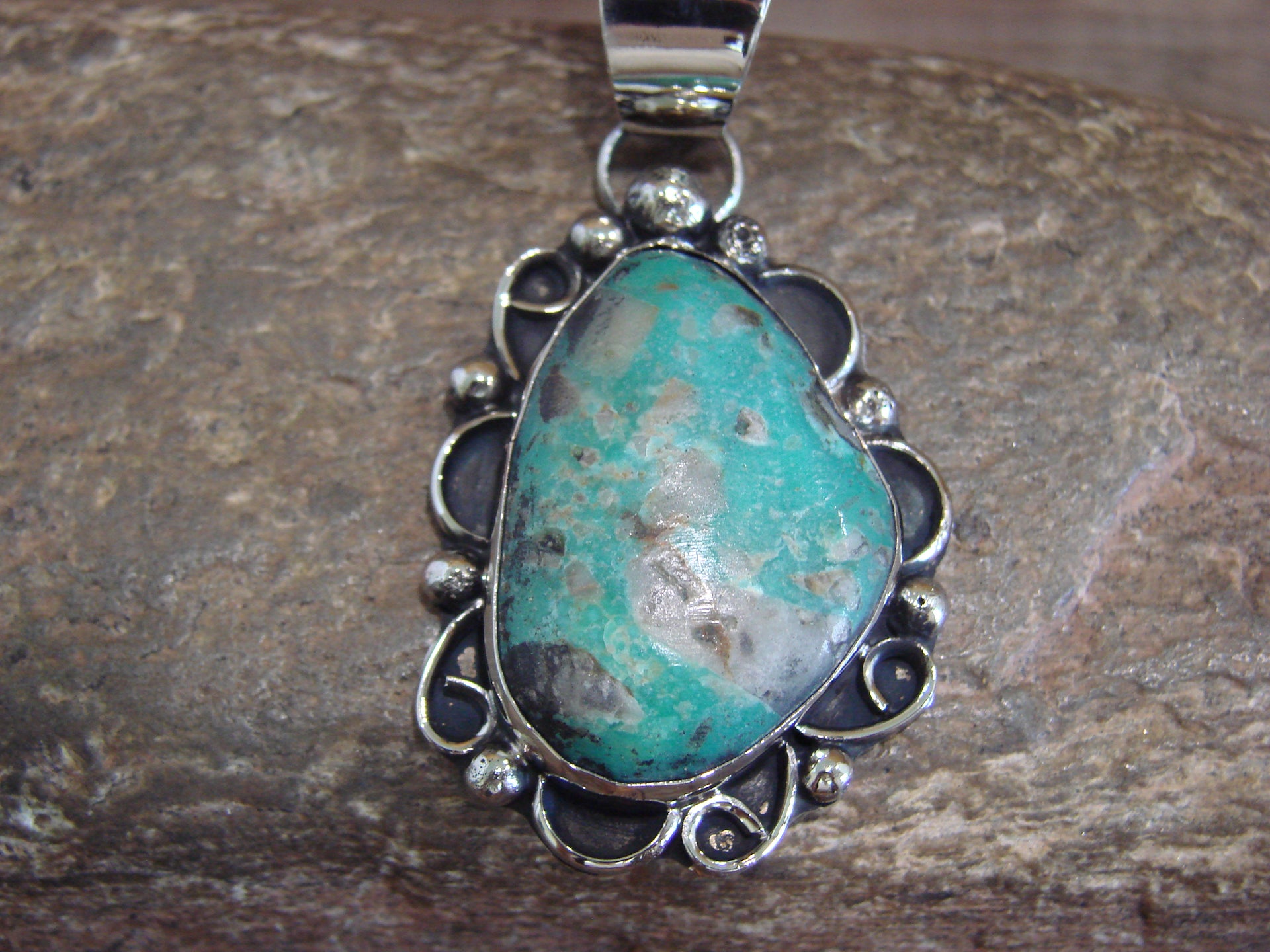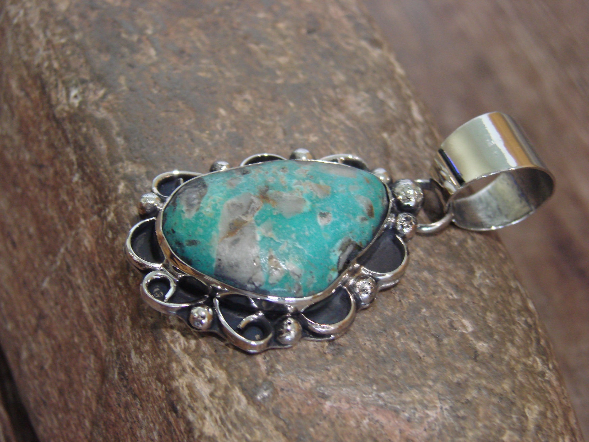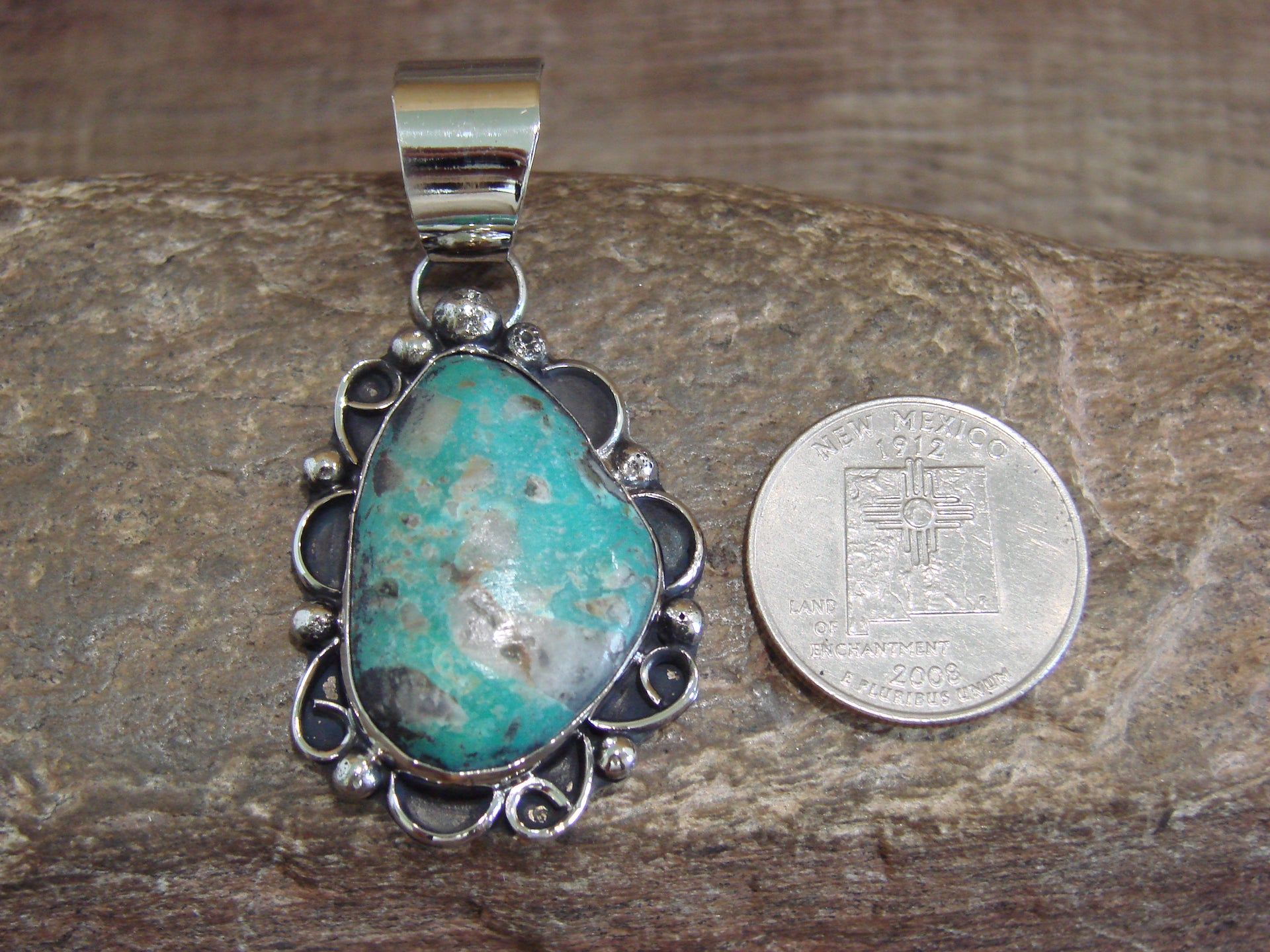 Native American Nickel Silver & Turquoise Pendant - Cleveland