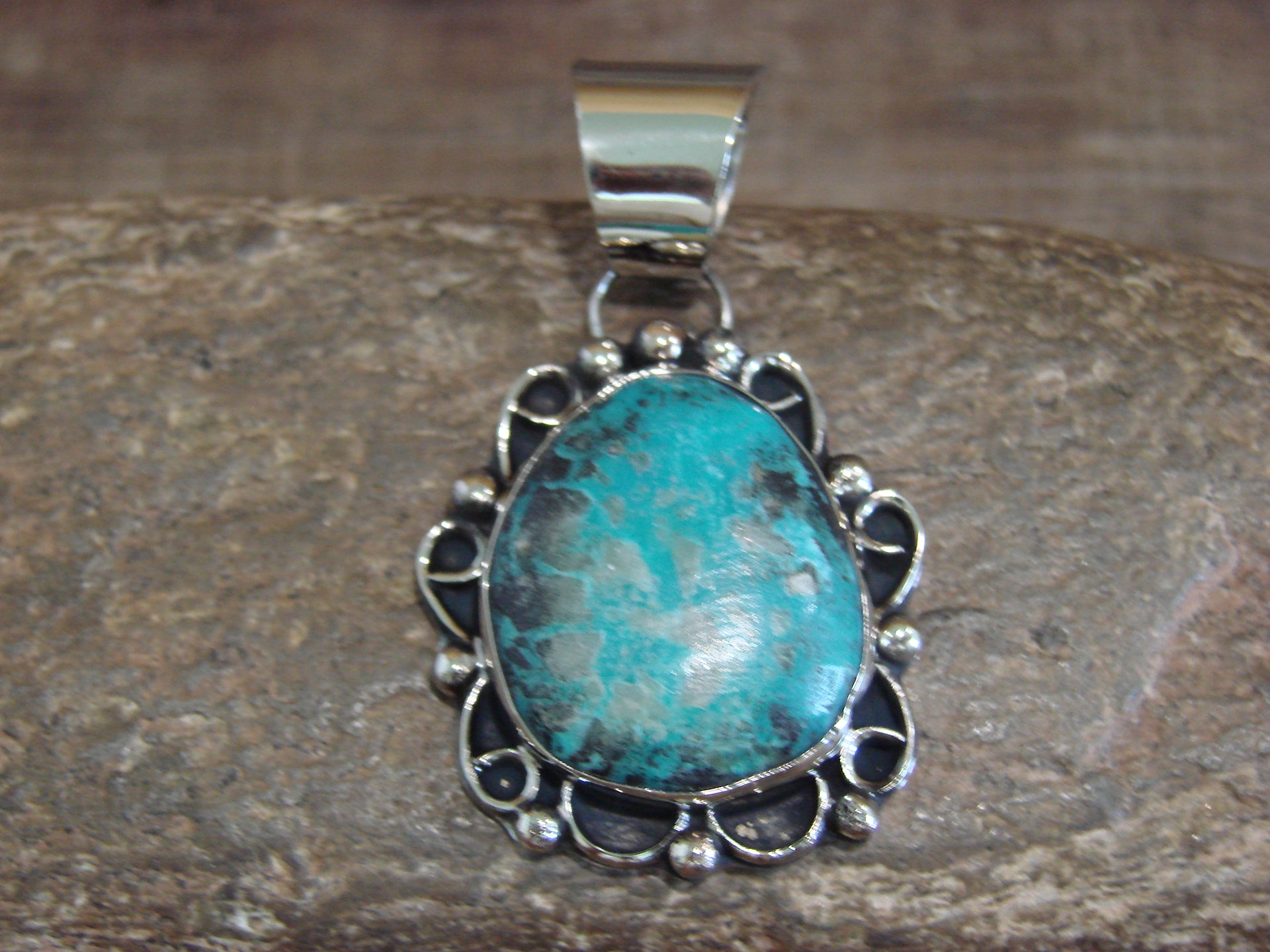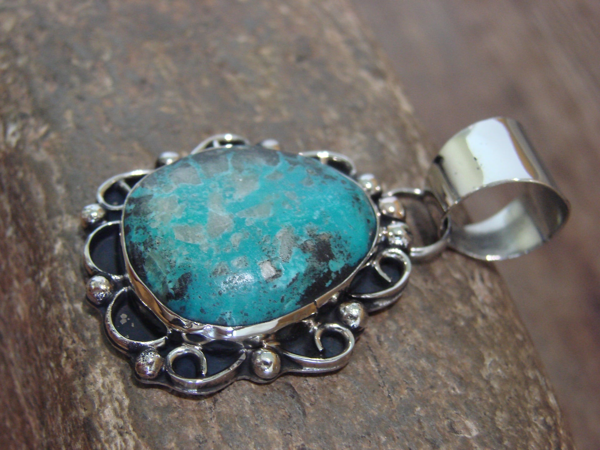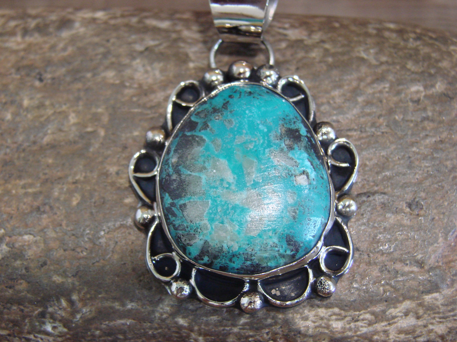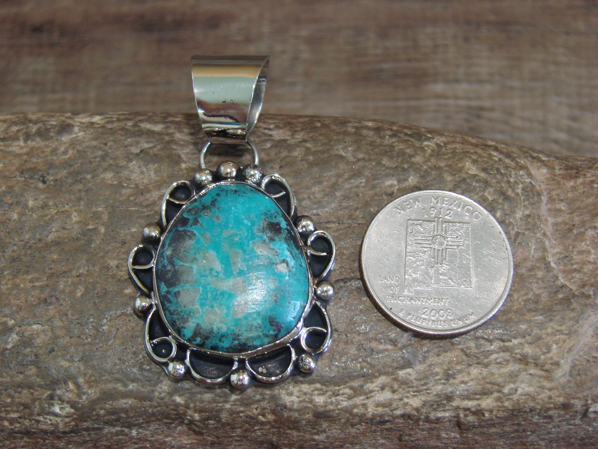 Native American Nickel Silver & Turquoise Pendant - Cleveland